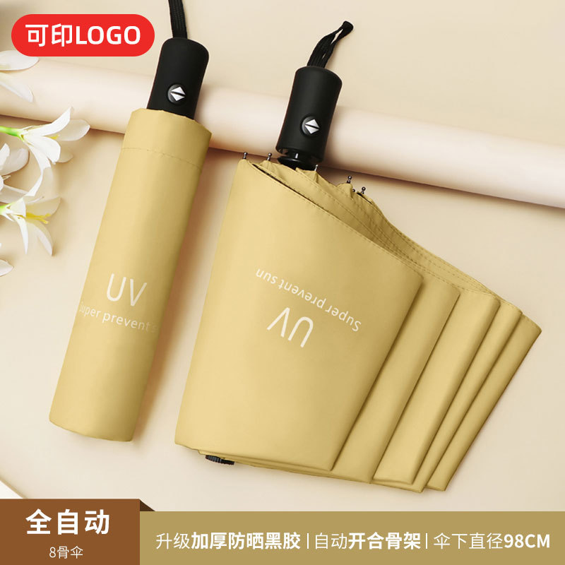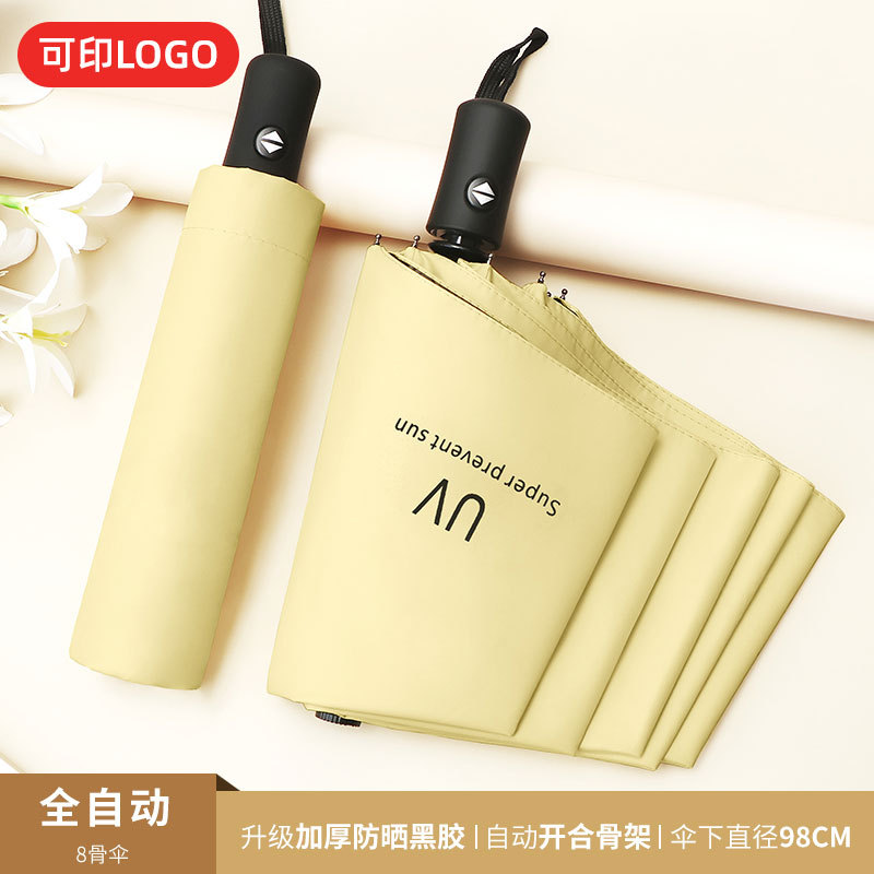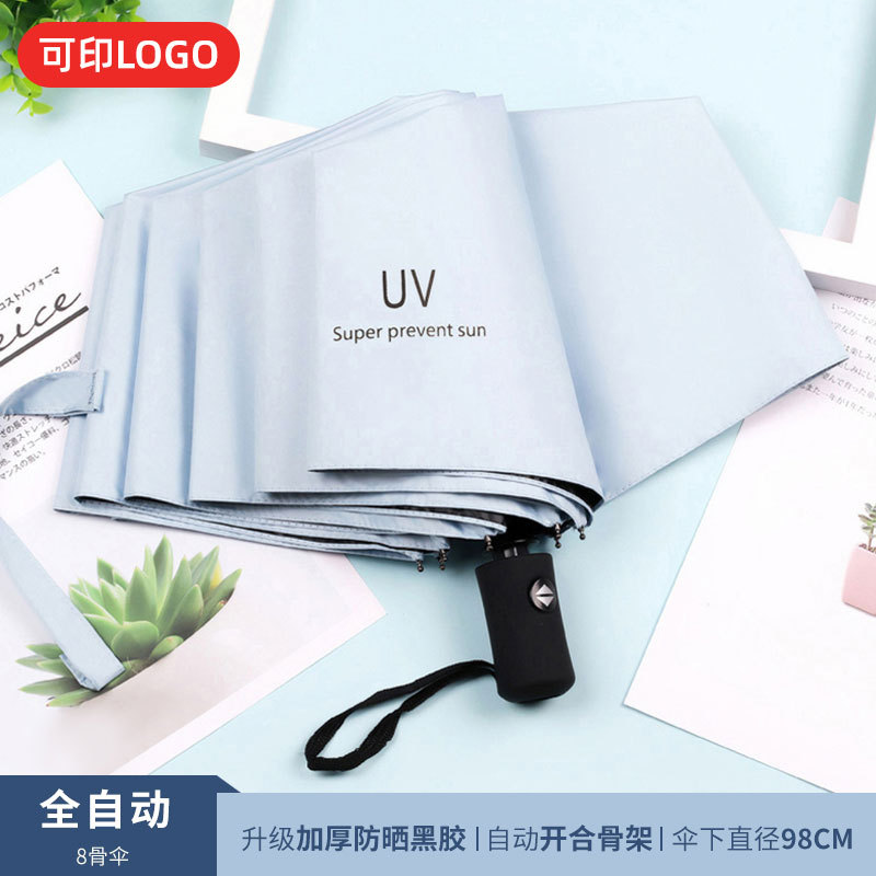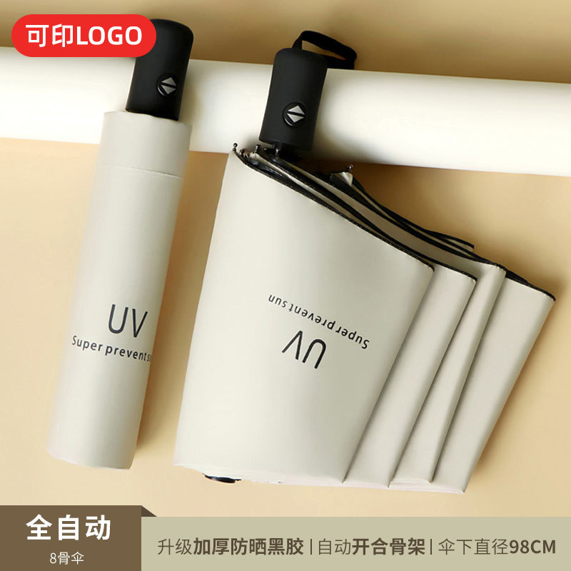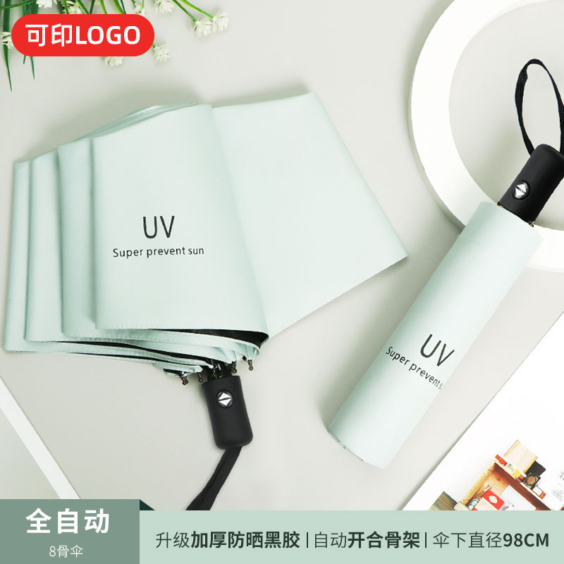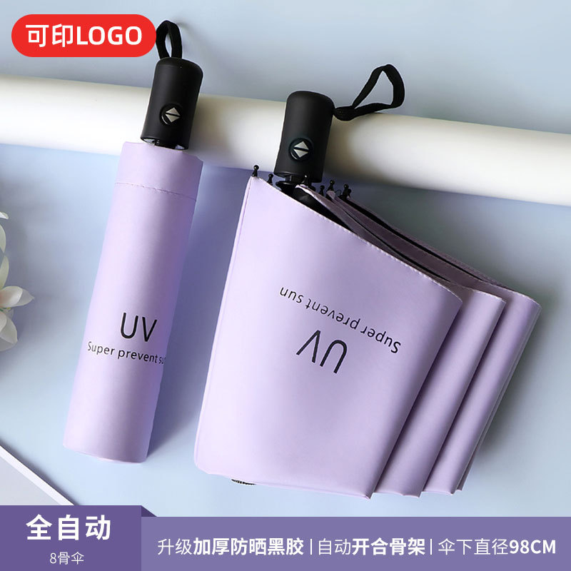 맑은 우산 자동 24 뼈 태양 우산 UV 태양 보호 햇살 우산 태양 우산 인쇄 로고 블랙 접착제 우산 남성과 여성을위한 우산