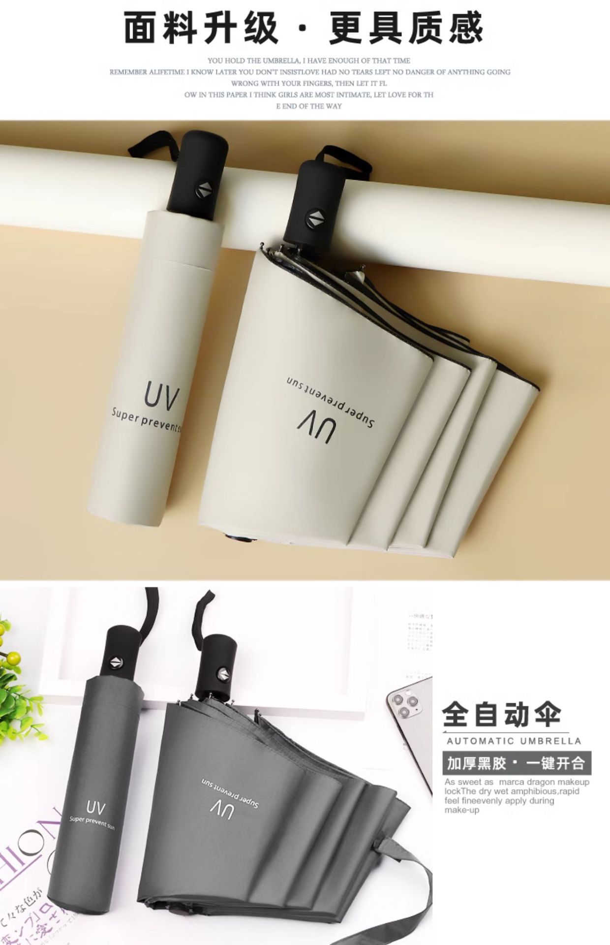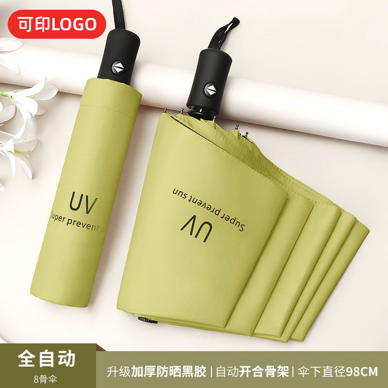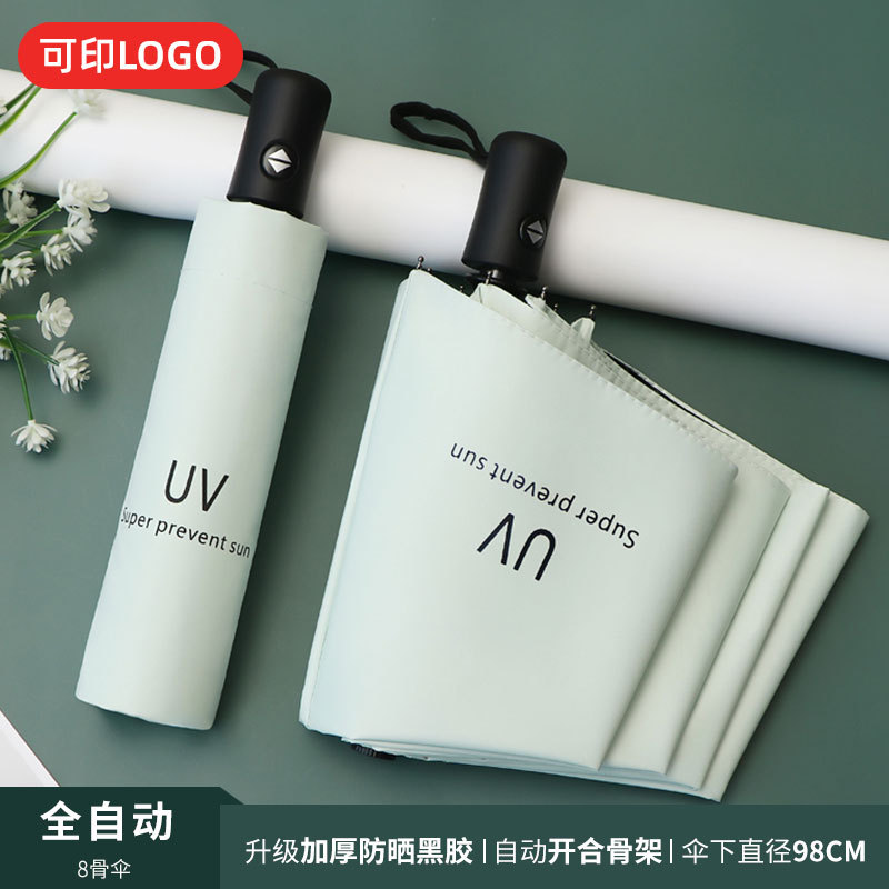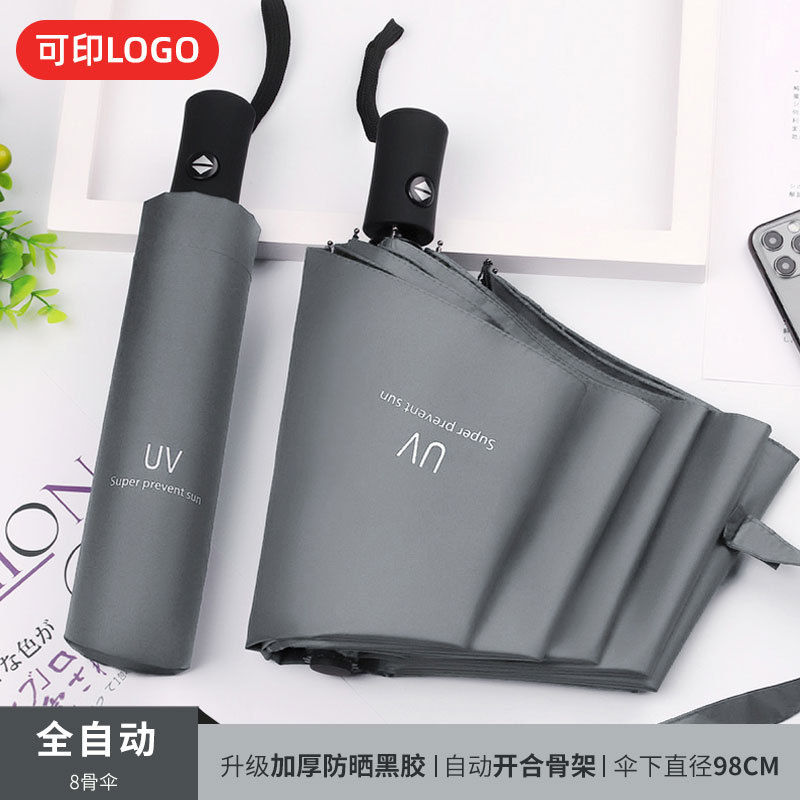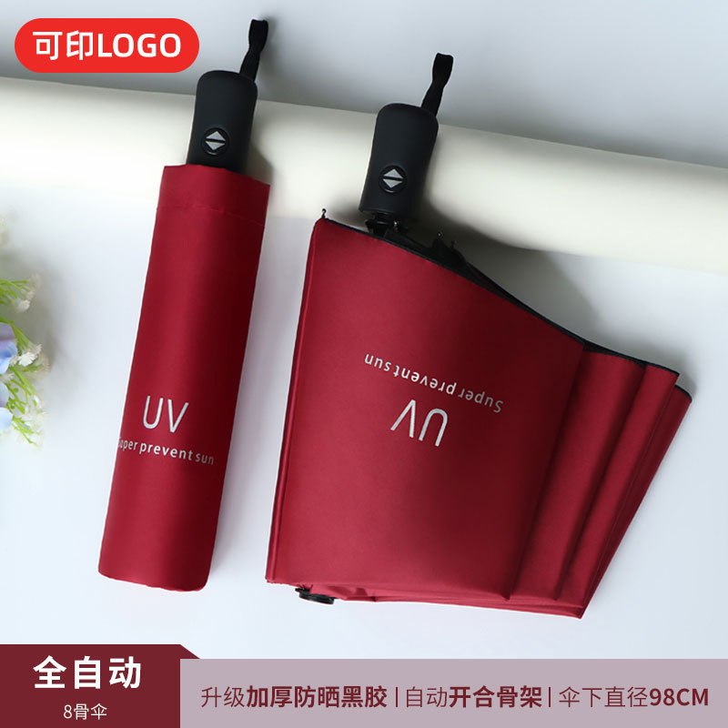 맑은 우산 자동 24 뼈 태양 우산 UV 태양 보호 햇살 우산 태양 우산 인쇄 로고 블랙 접착제 우산 남성과 여성을위한 우산