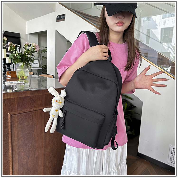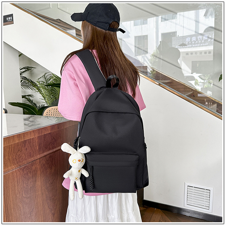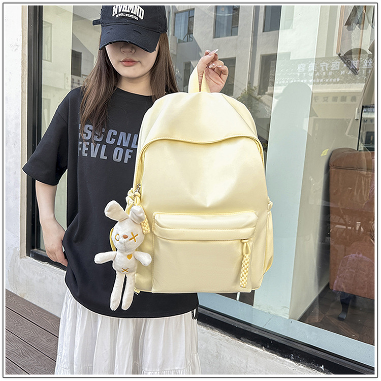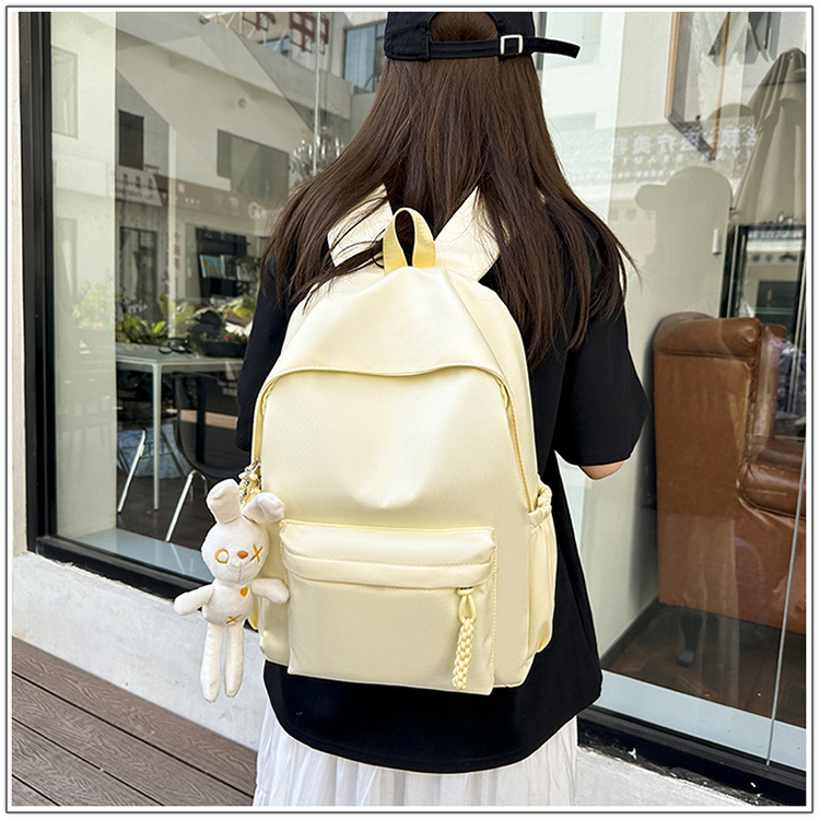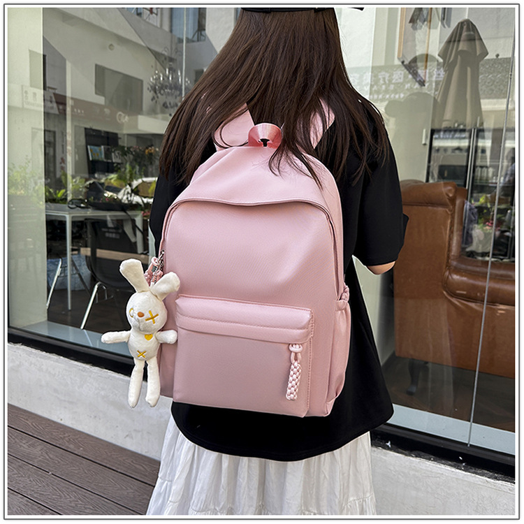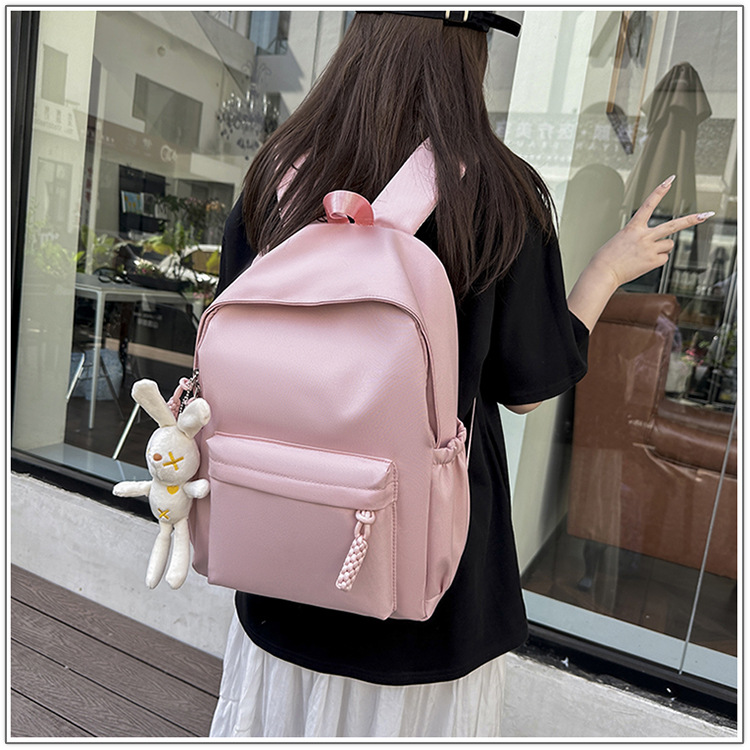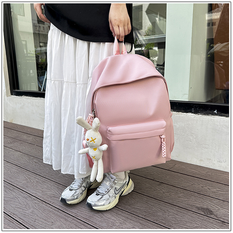 한국식 달콤한 배낭 솔리드 컬러 간단한 올 매치 소프트 왁스 스쿨백 학생 클래스 여행 대용량 통근 배낭스토어 가기