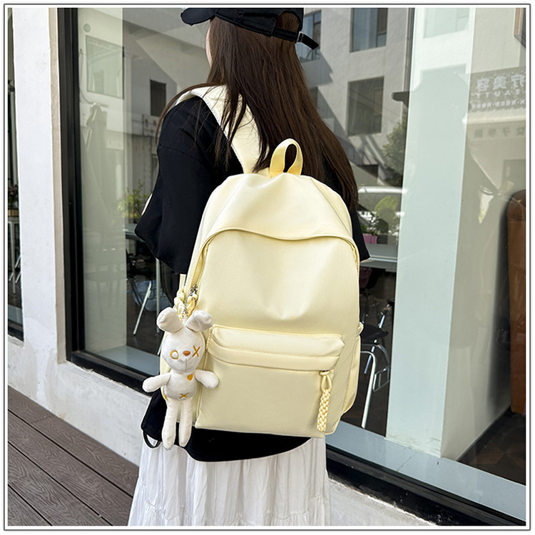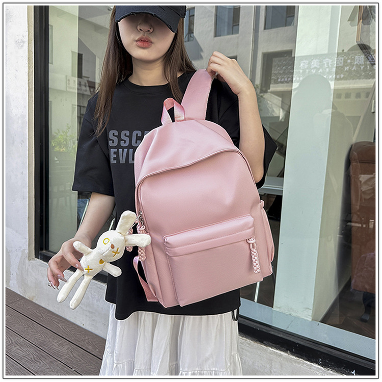 한국식 달콤한 배낭 솔리드 컬러 간단한 올 매치 소프트 왁스 스쿨백 학생 클래스 여행 대용량 통근 배낭