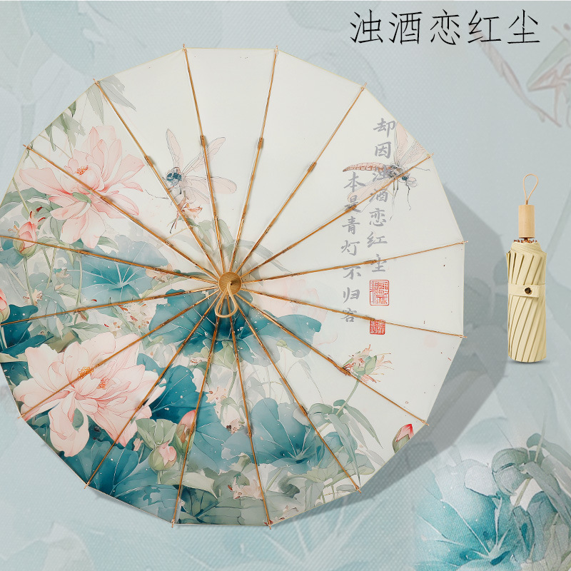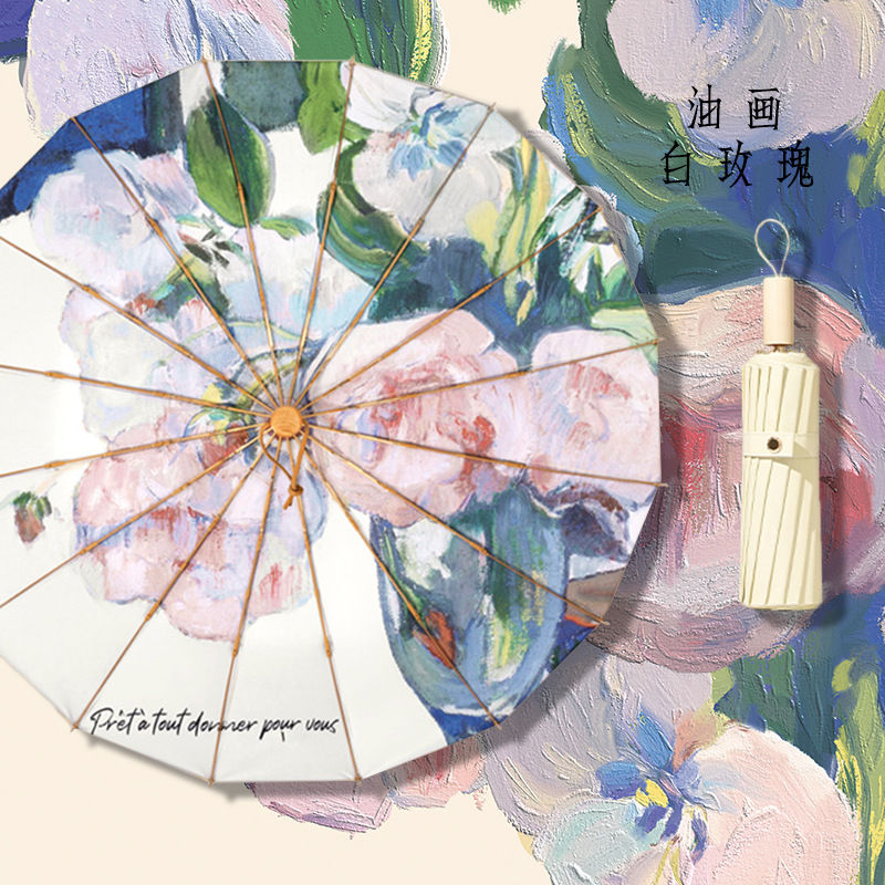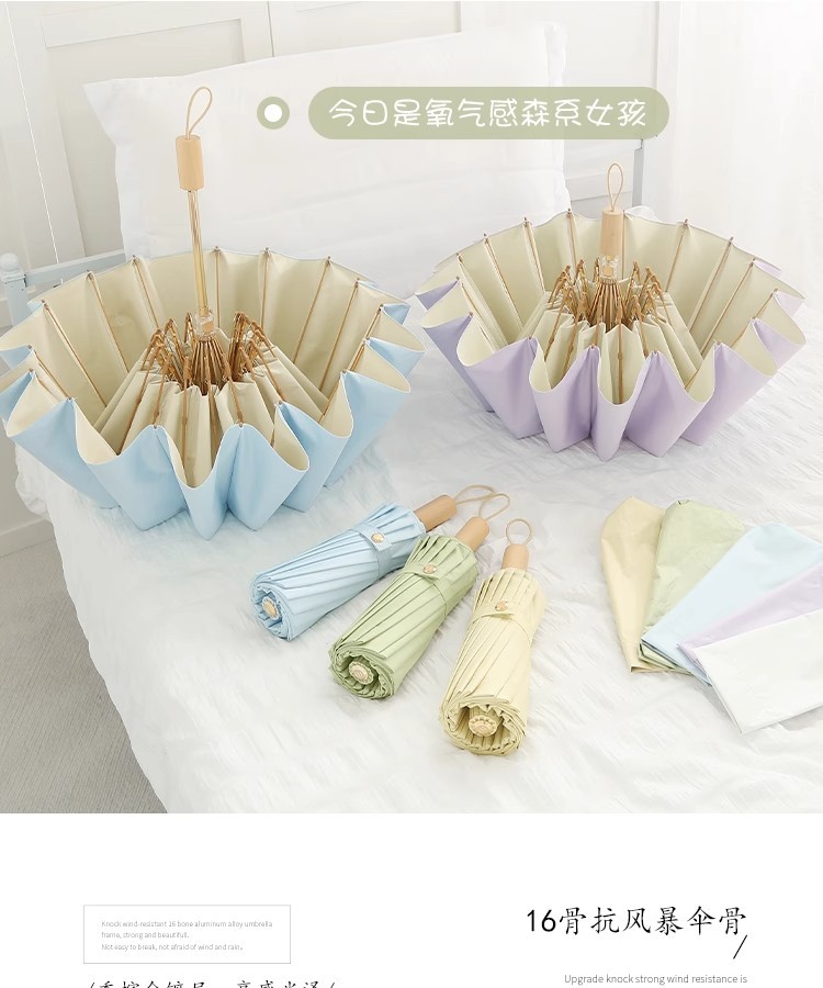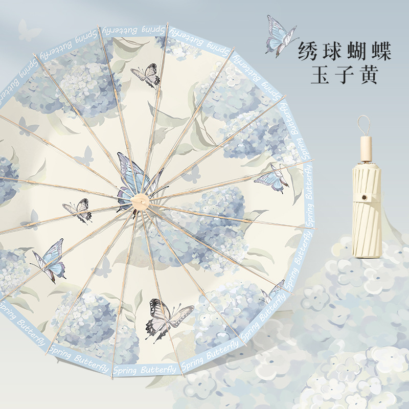 16-뼈 빈티지 컬러 접착제 태양 우산 써니 우산 이중 사용 여성 Ins 학생 바람 방지 태양 보호 자외선 보호 햇빛 우산스토어 가기