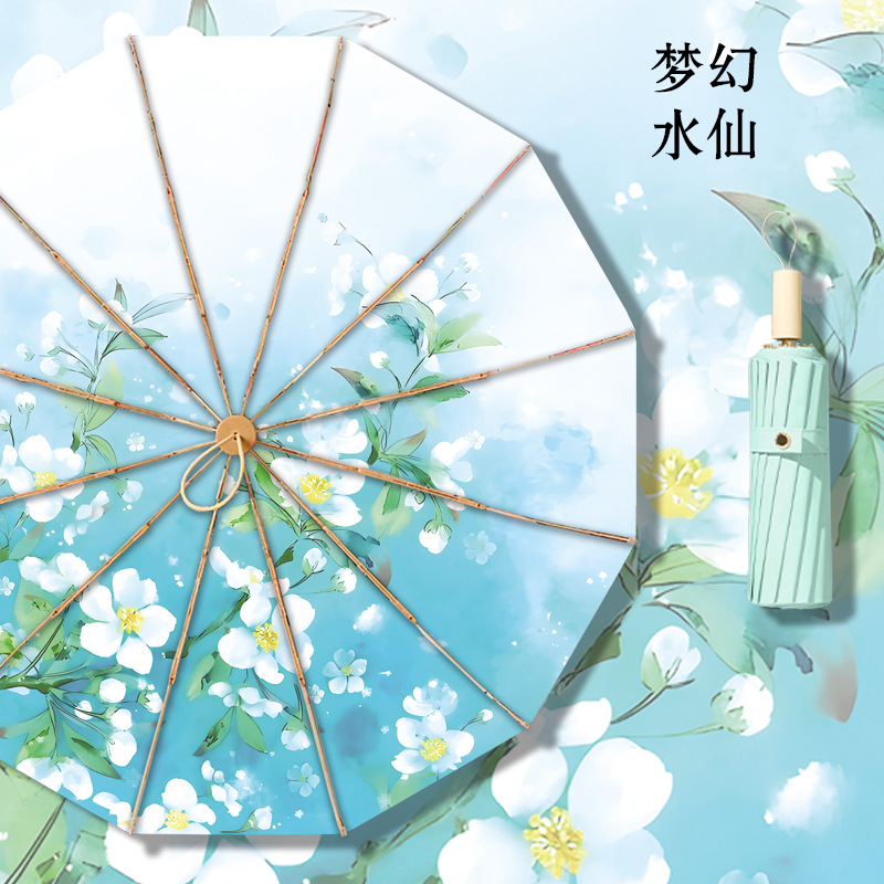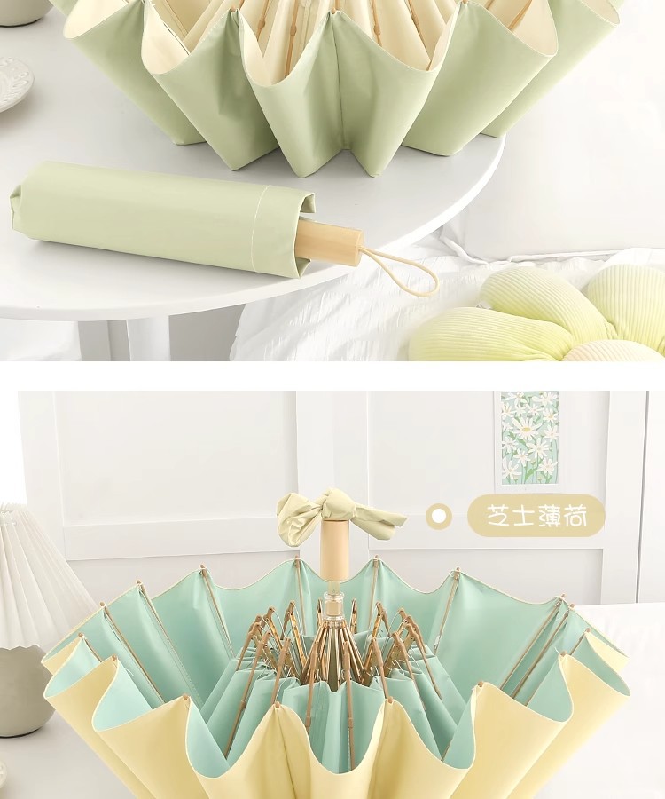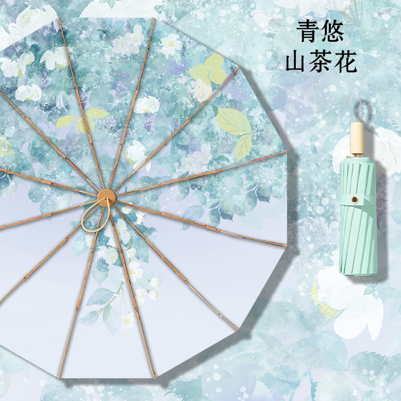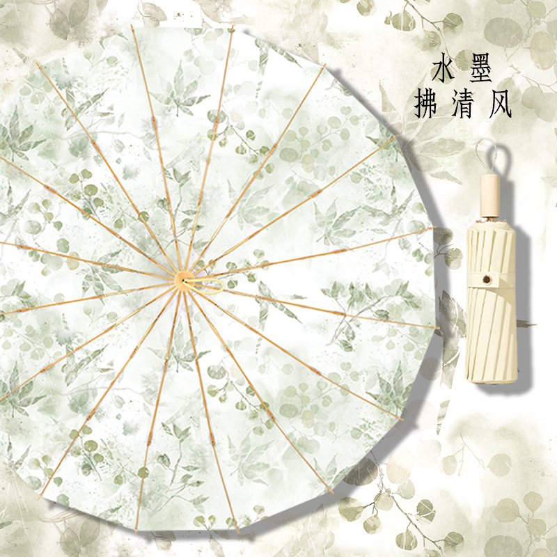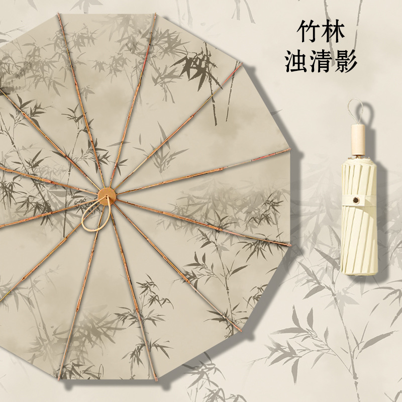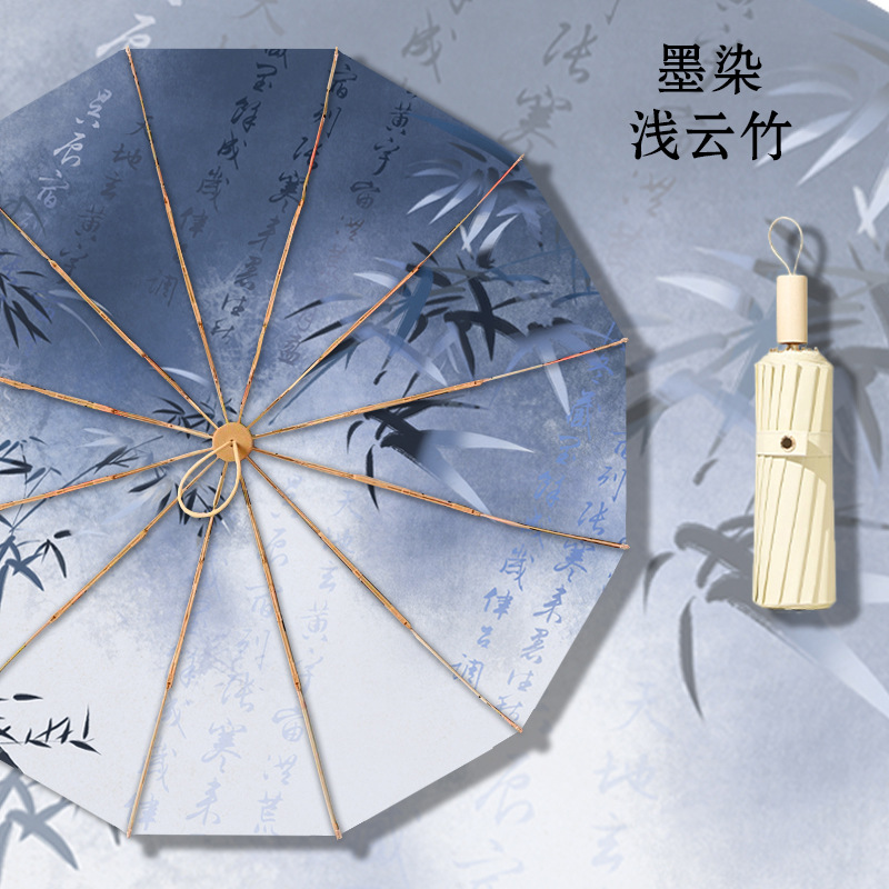 • 12본 라이트 럭셔리 잉크 염색 라이트 클라우드 대나무 컬러 플라스틱 우산