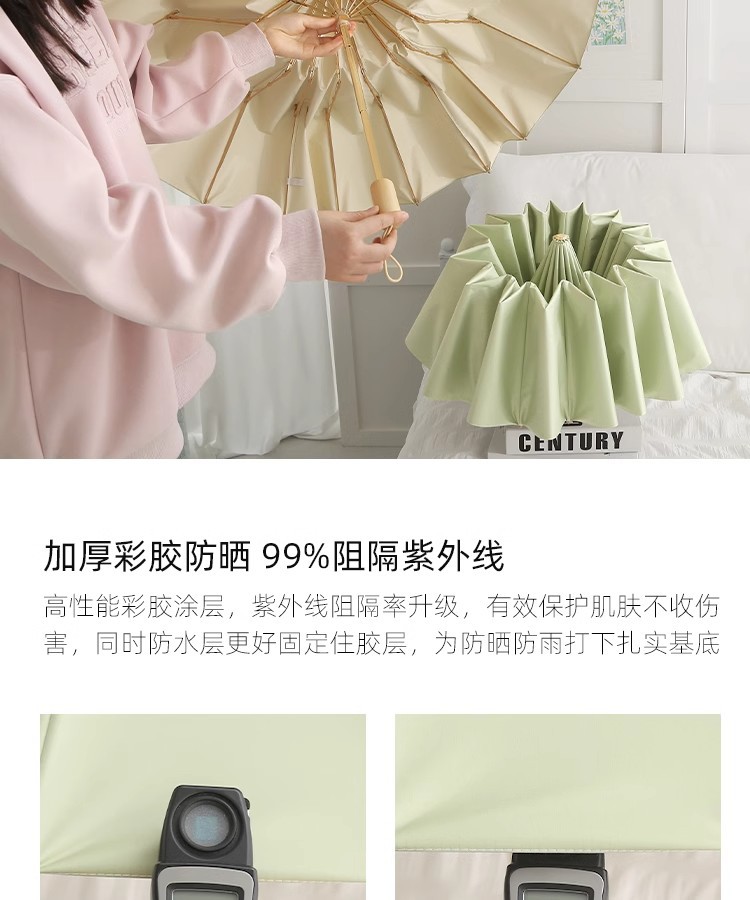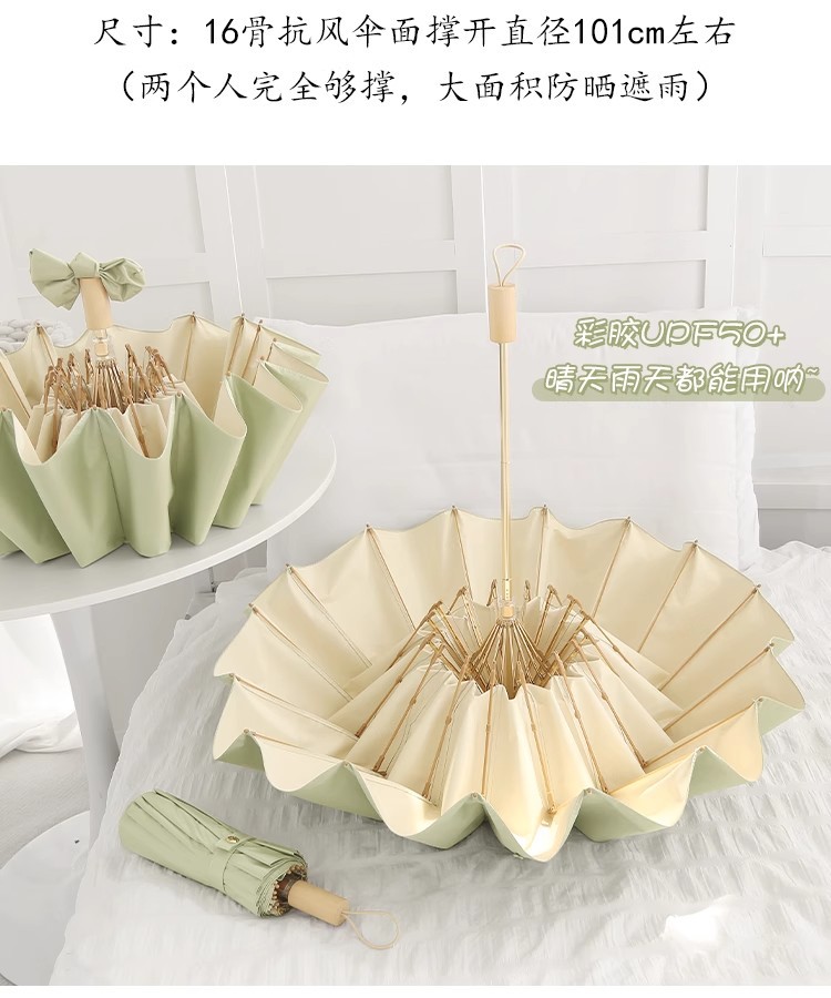 16-뼈 빈티지 컬러 접착제 태양 우산 써니 우산 이중 사용 여성 Ins 학생 바람 방지 태양 보호 자외선 보호 햇빛 우산
