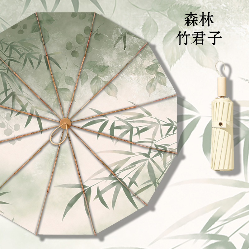 • 12본 라이트 럭셔리 포레스트 대나무 신사 컬러 플라스틱 우산