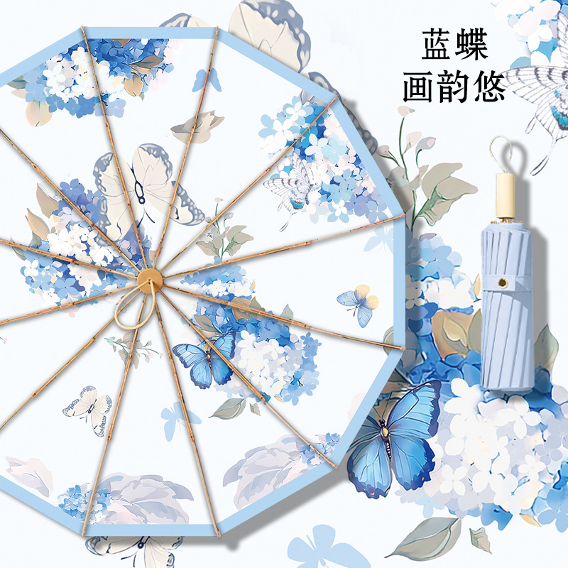 • 12본 라이트 럭셔리 블루 나비 꽃 운율 컬러 플라스틱 우산