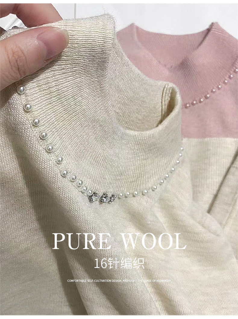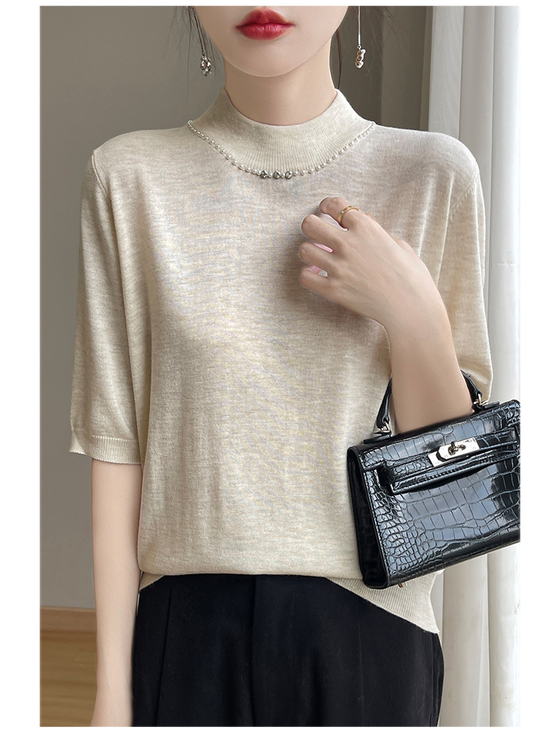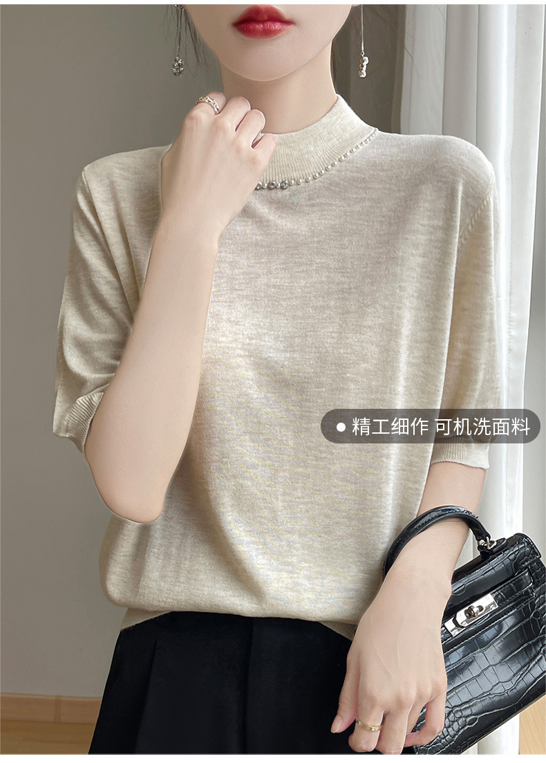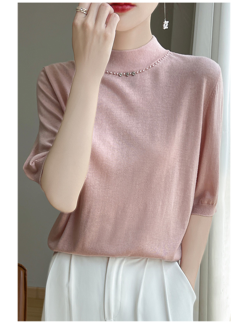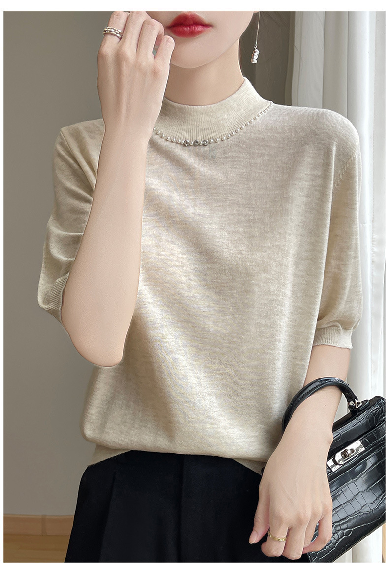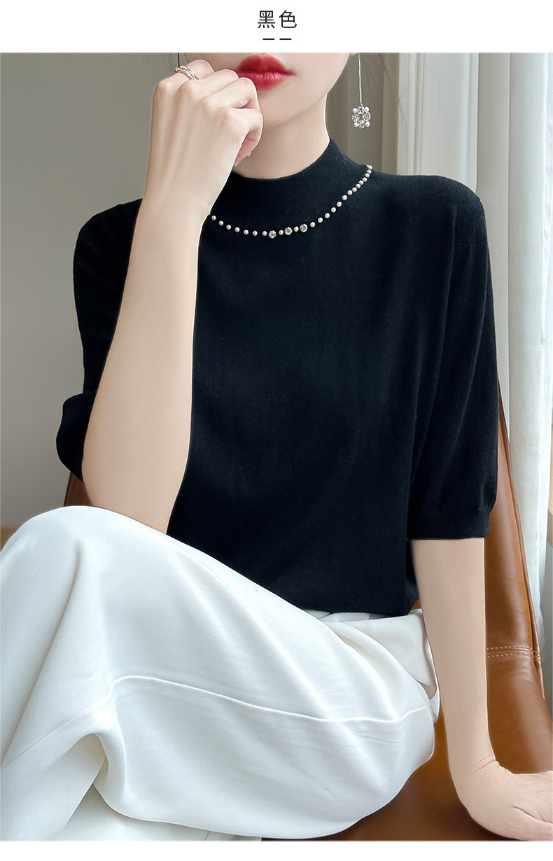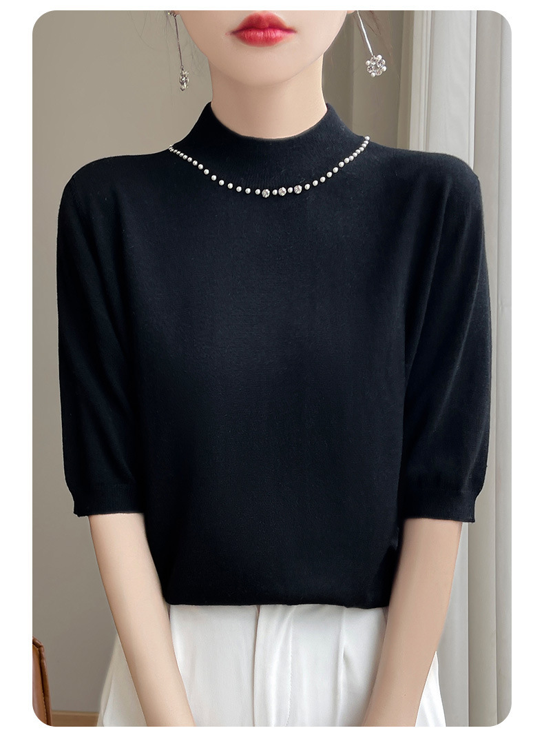 가벼운 럭셔리 니트 하프 하이 칼라 미드 슬리브 베이스 셔츠 여성의 가을 새로운 서양 스타일 내부 하프 슬리브 탑 니트 도매