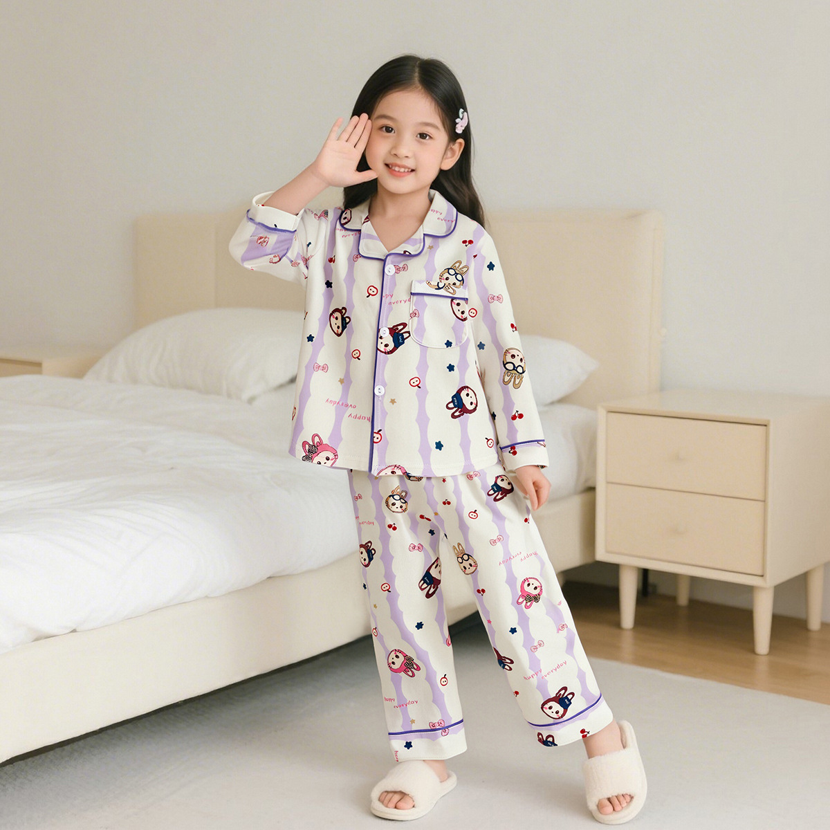 • 순면 프린트 홈웨어 – 보라색 토끼 머리