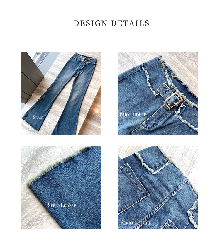빈티지 모직 청바지 여성의 봄과 가을 새로운 스타일 세련된 허리 버튼 슬림 슬리밍 스트레치 말굽 바지스토어 가기