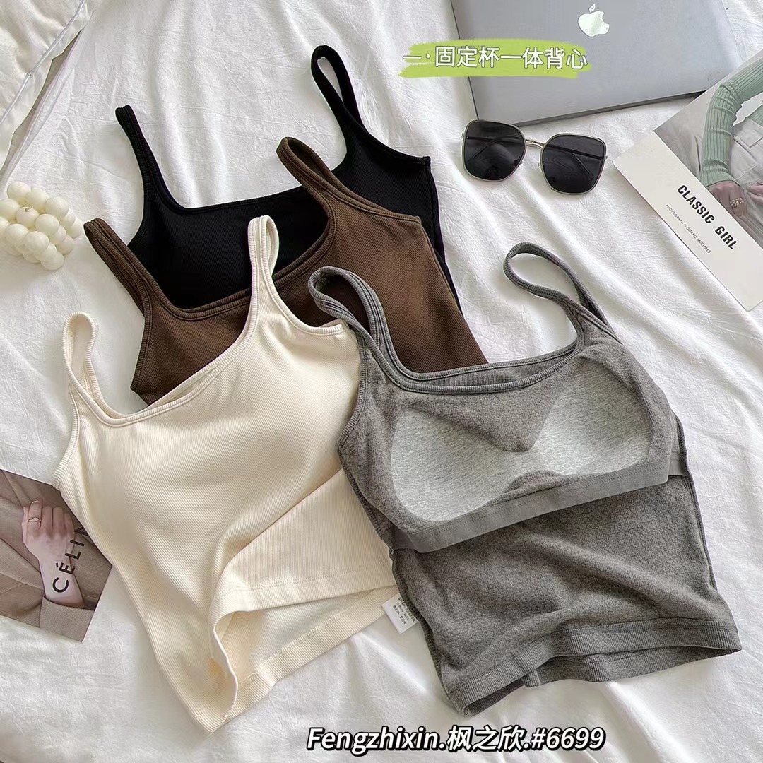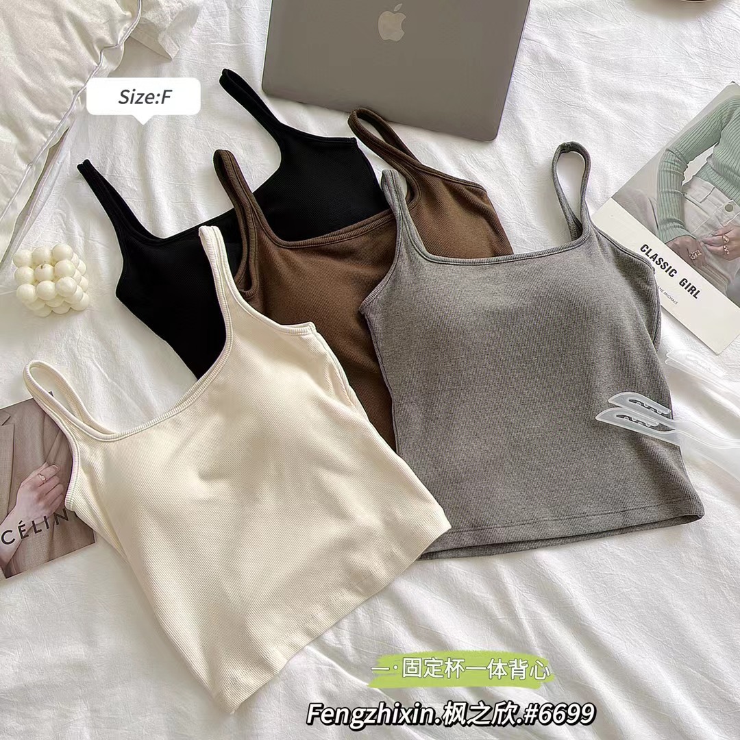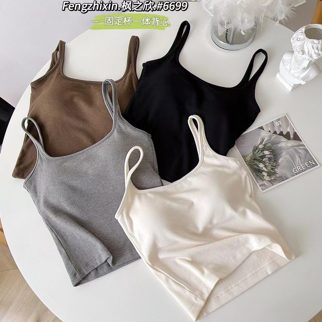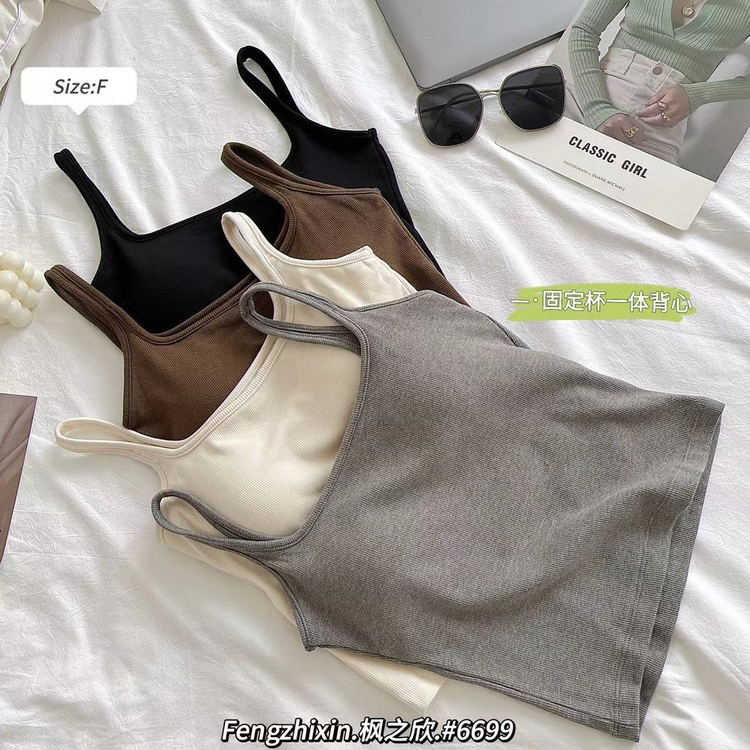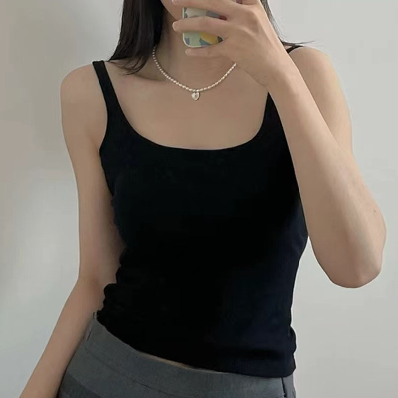 새로운 한국 스타일 6699 스퀘어 칼라 여자 조끼 유행 올매치 원피스 컵 편안한 슬리밍 민소매 탑스토어 가기