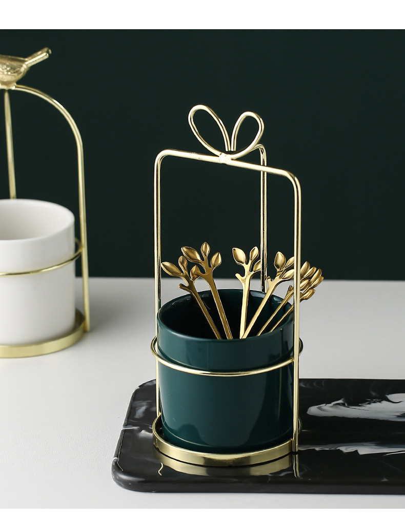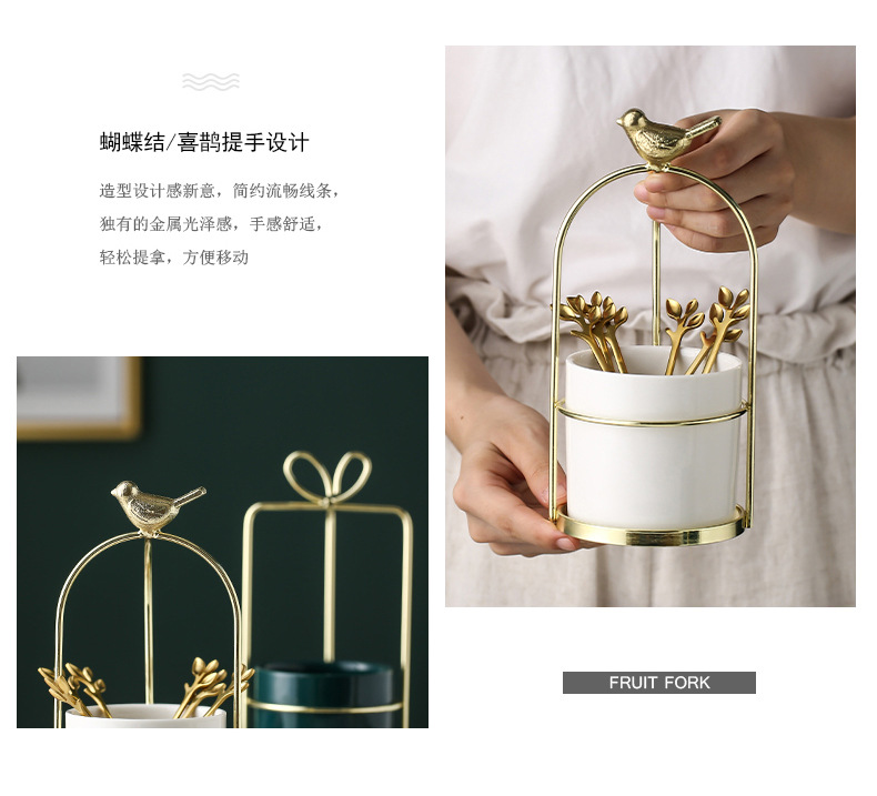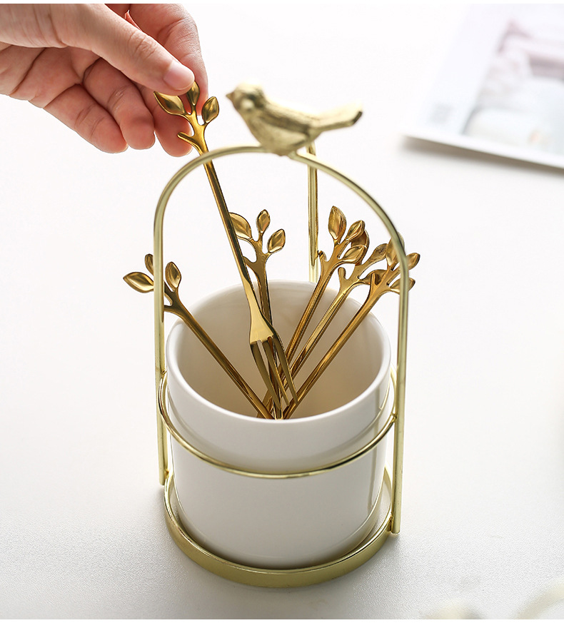스테인레스 스틸 과일 포크 스푼 스토리지 데스크탑 창조적 인 화장품 브러시 립스틱 스토리지 카트리지 북유럽 스타일 홈 오피스 펜 카트리지