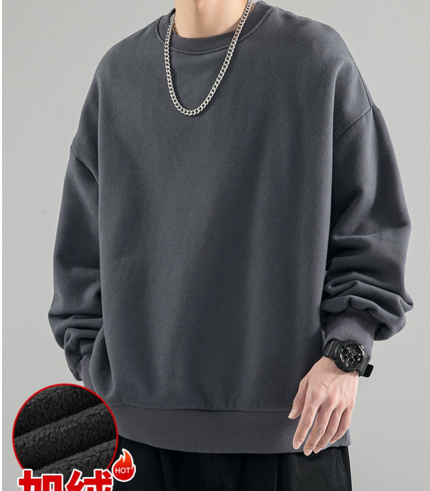 480g 무거운 봄과 가을 Wei Yi 남자의 새로운 가을 검은 크루 넥 미국 조수 브랜드 기모 베이스 셔츠 탑