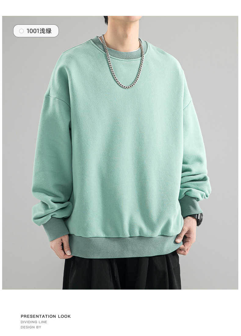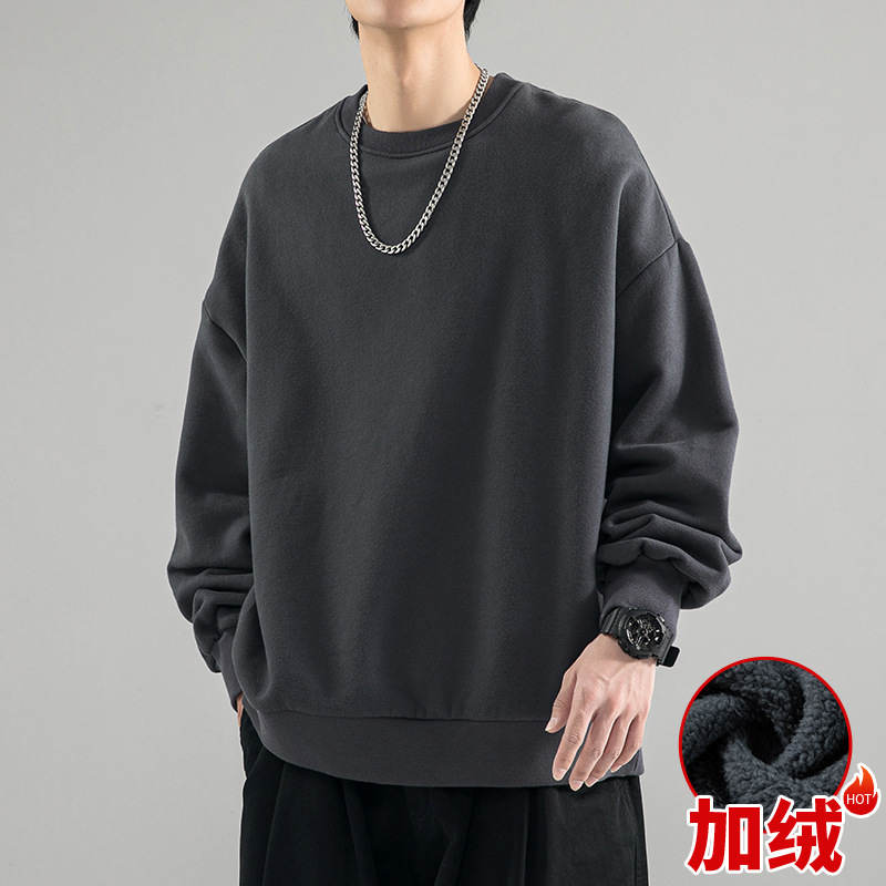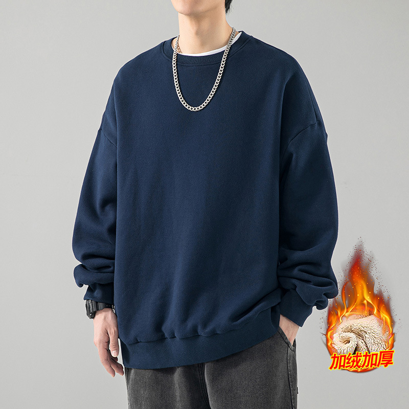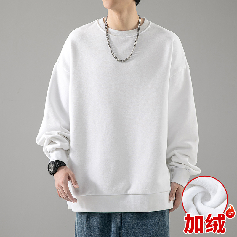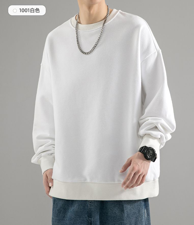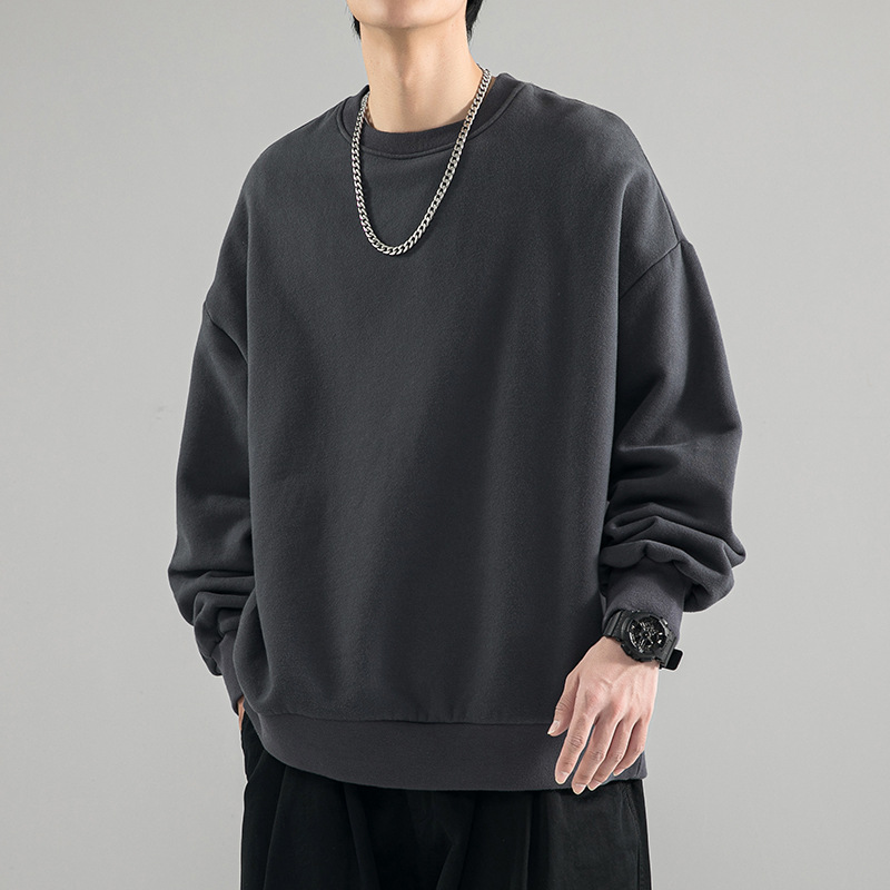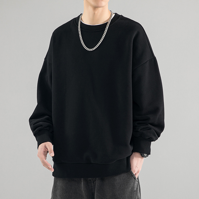 480g 무거운 봄과 가을 Wei Yi 남자의 새로운 가을 검은 크루 넥 미국 조수 브랜드 기모 베이스 셔츠 탑스토어 가기