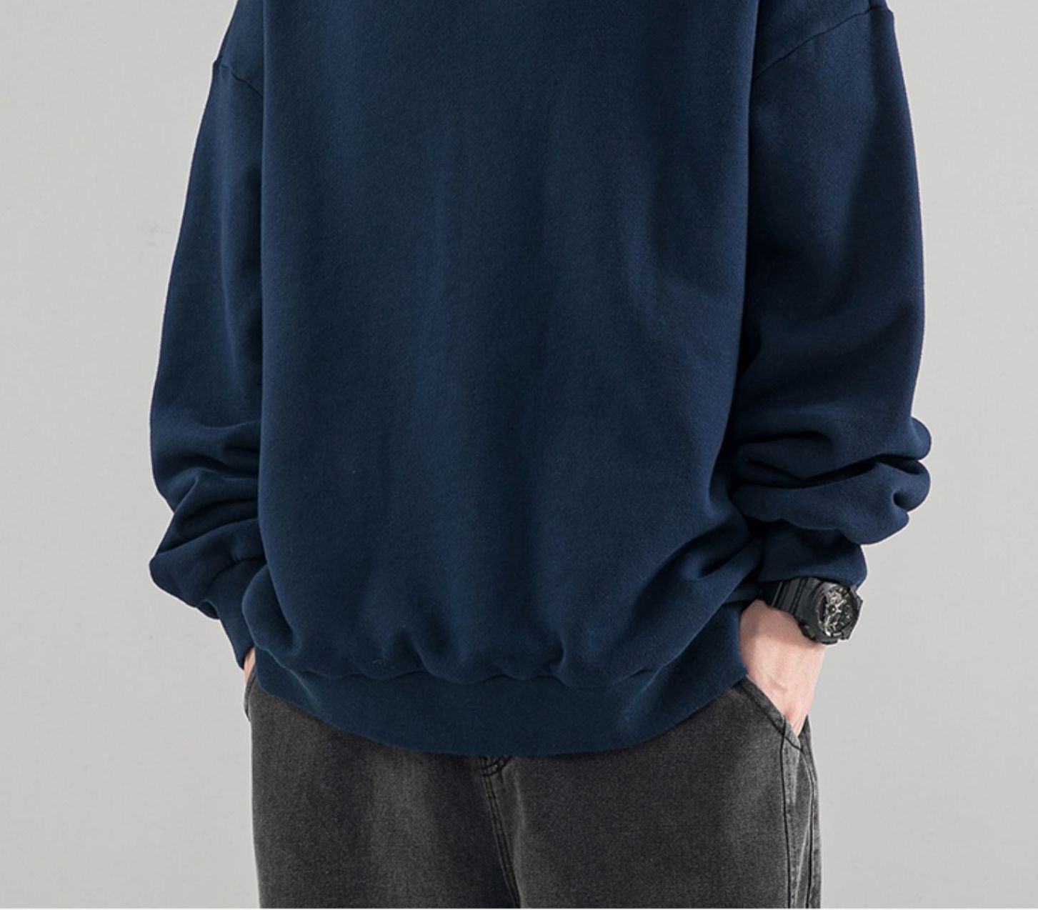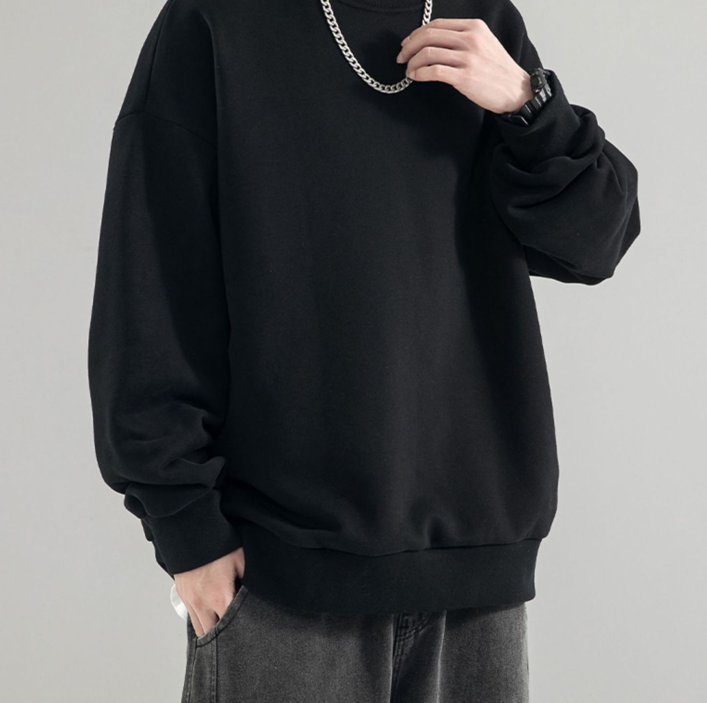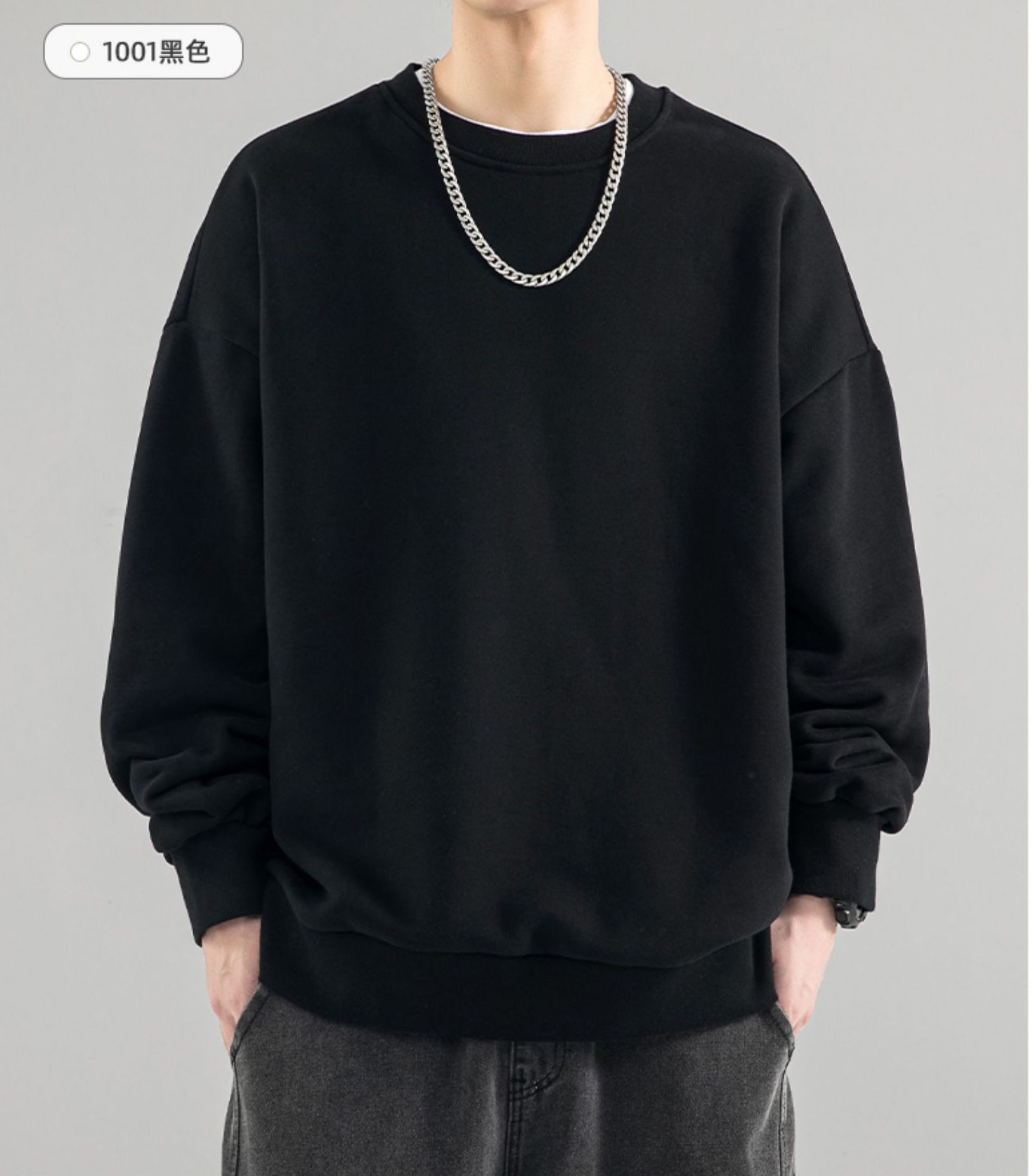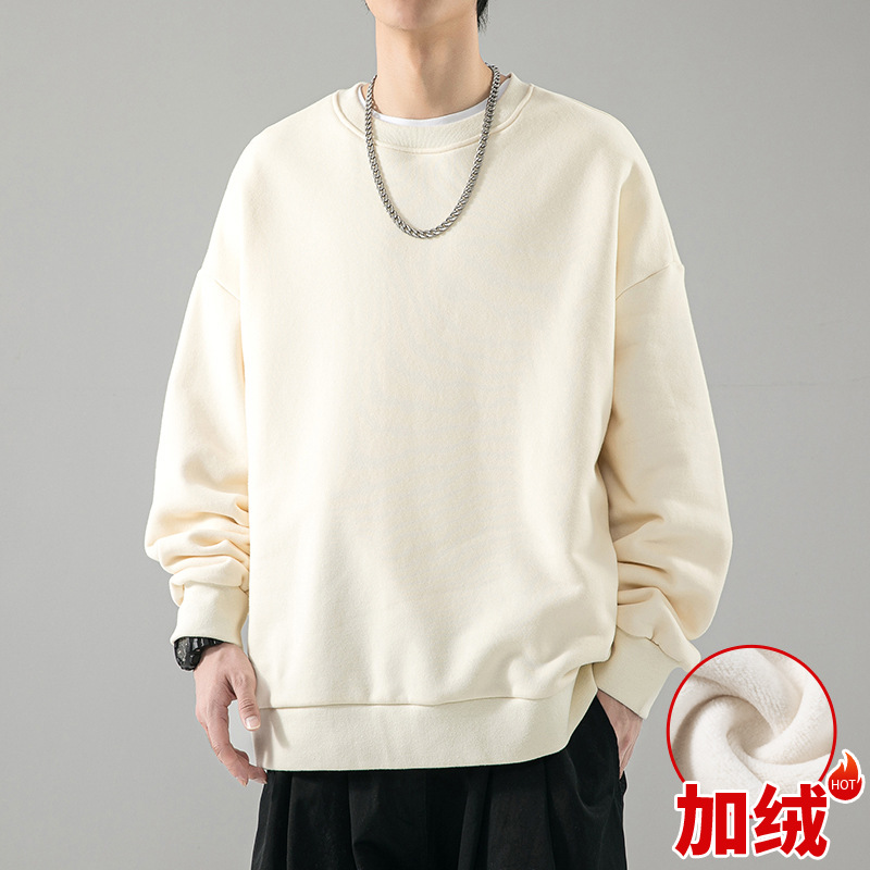 480g 무거운 봄과 가을 Wei Yi 남자의 새로운 가을 검은 크루 넥 미국 조수 브랜드 기모 베이스 셔츠 탑스토어 가기