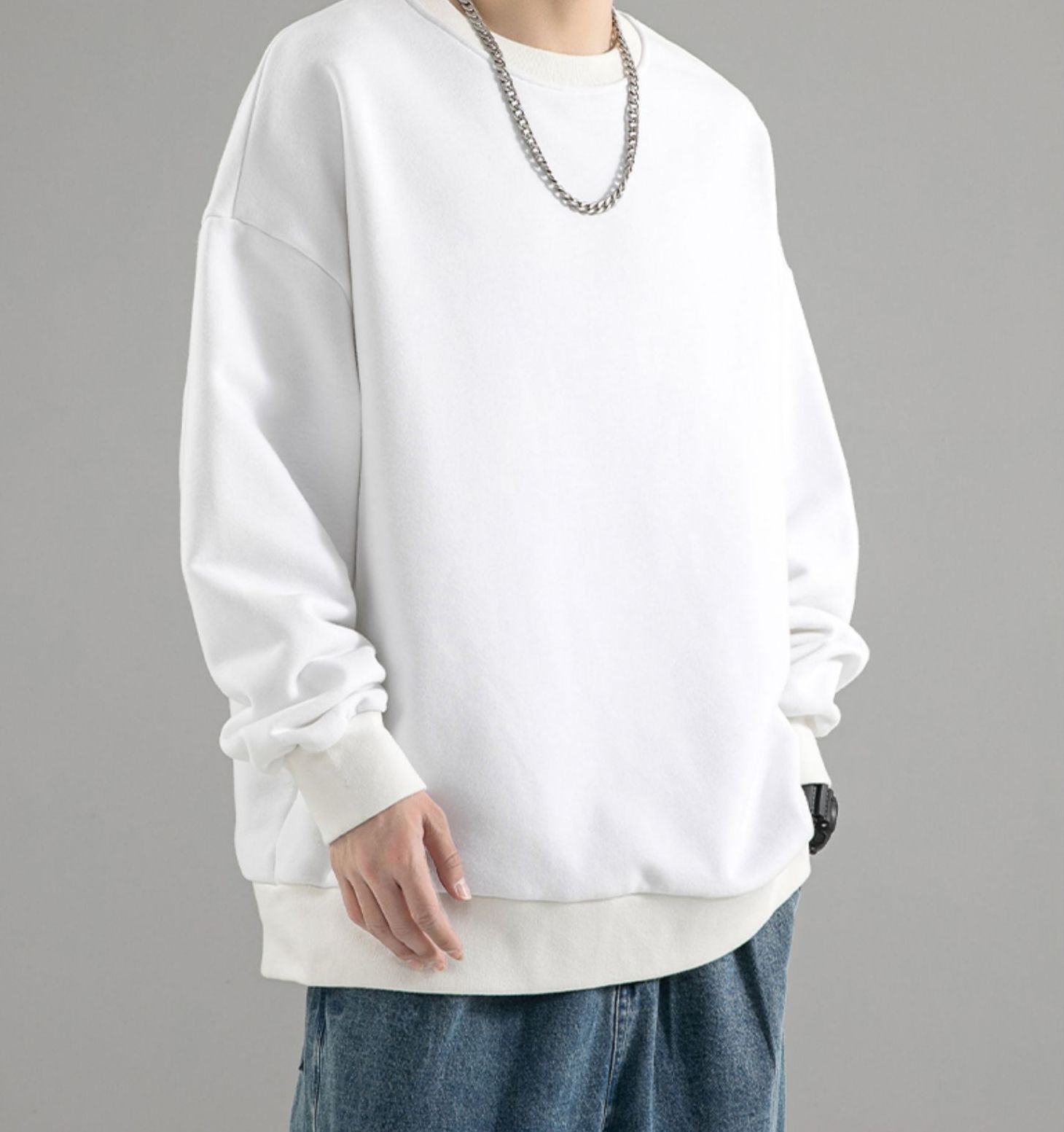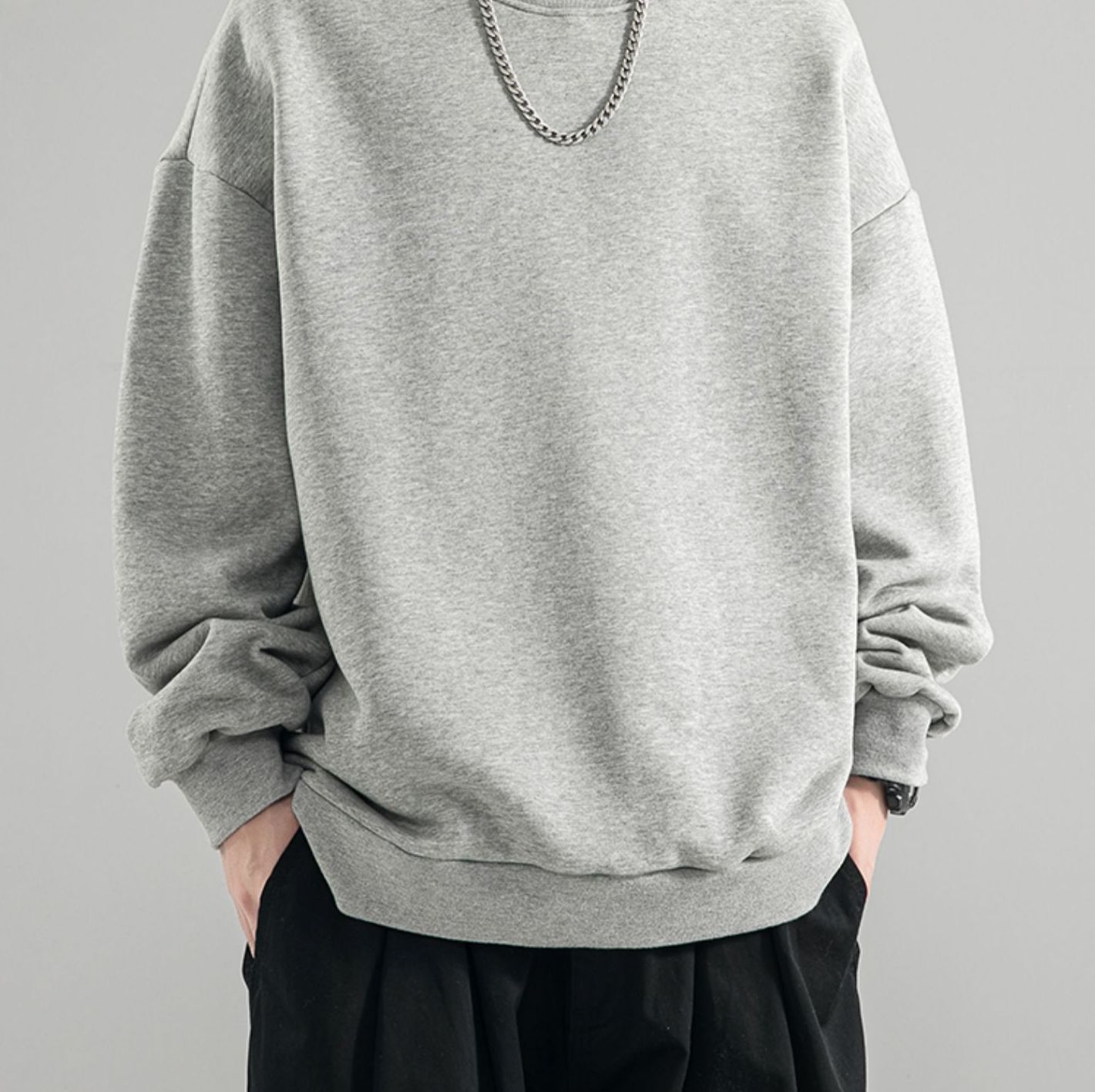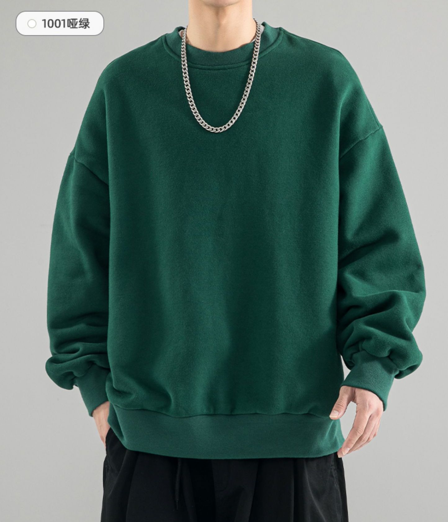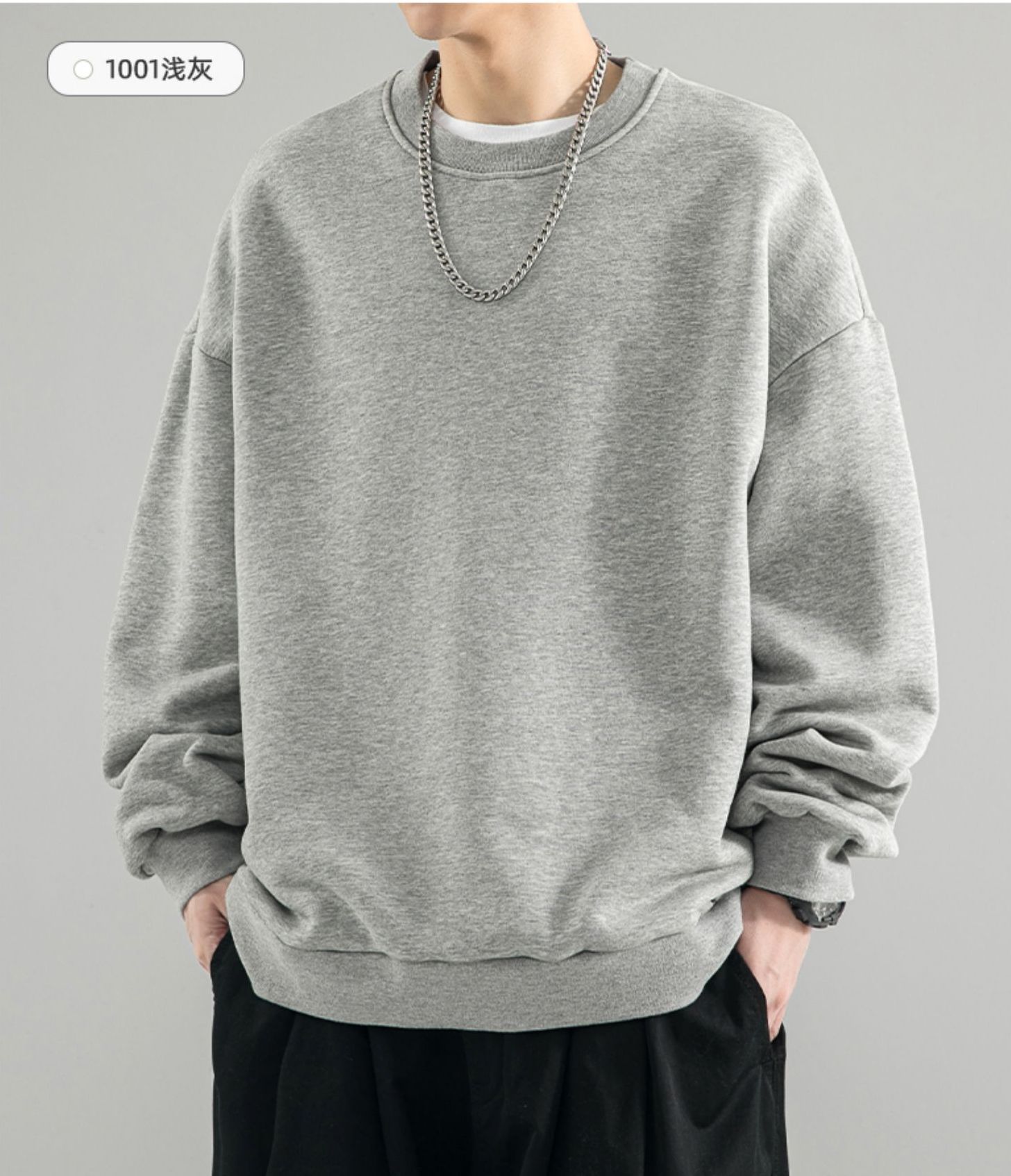 480g 무거운 봄과 가을 Wei Yi 남자의 새로운 가을 검은 크루 넥 미국 조수 브랜드 기모 베이스 셔츠 탑스토어 가기