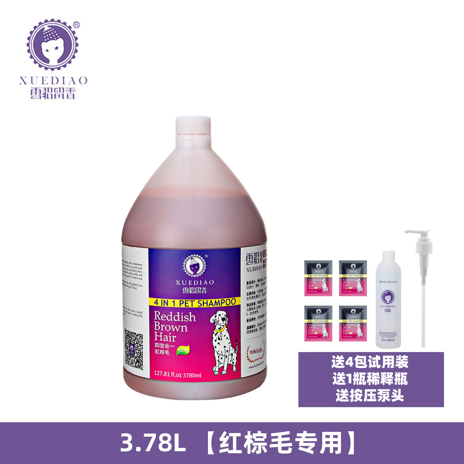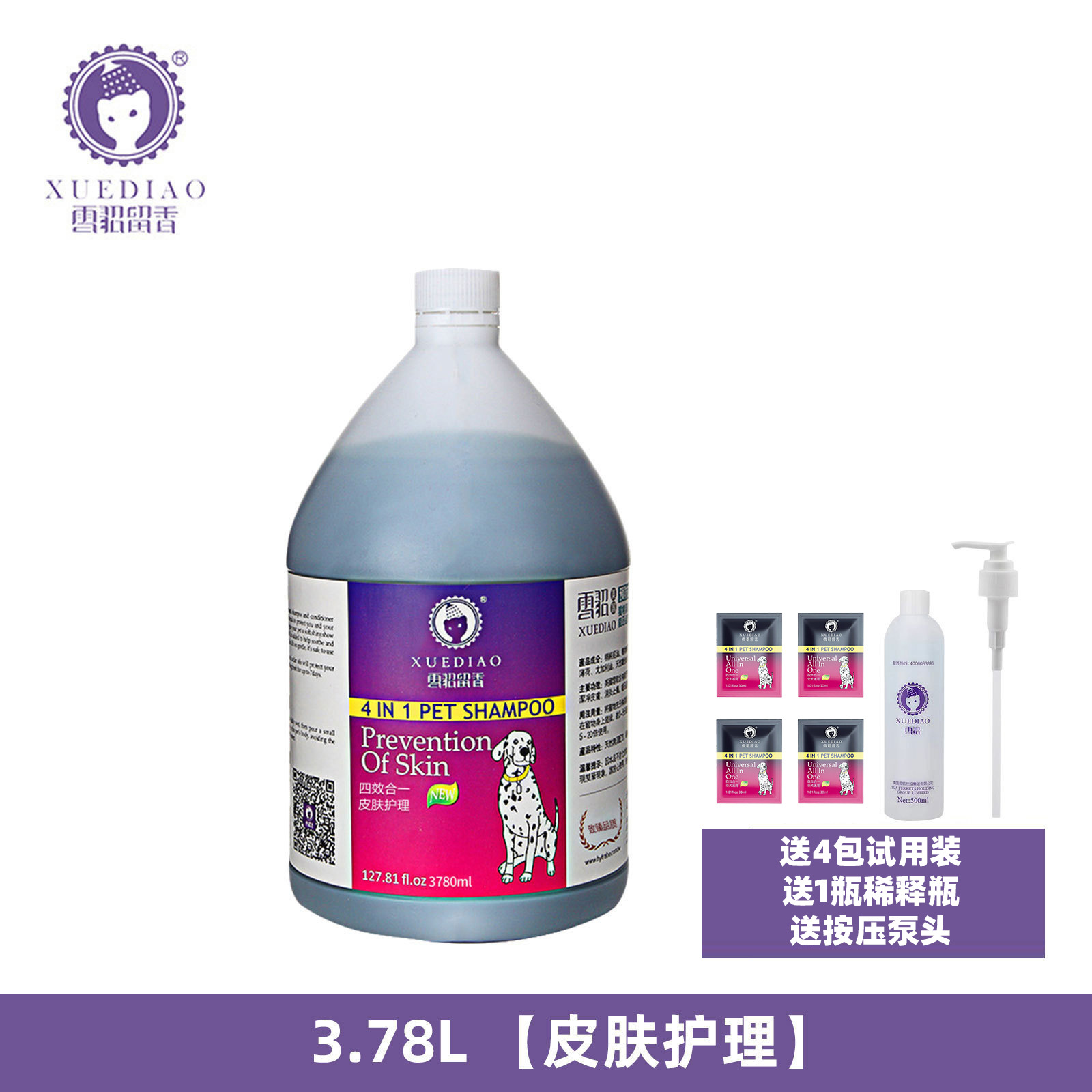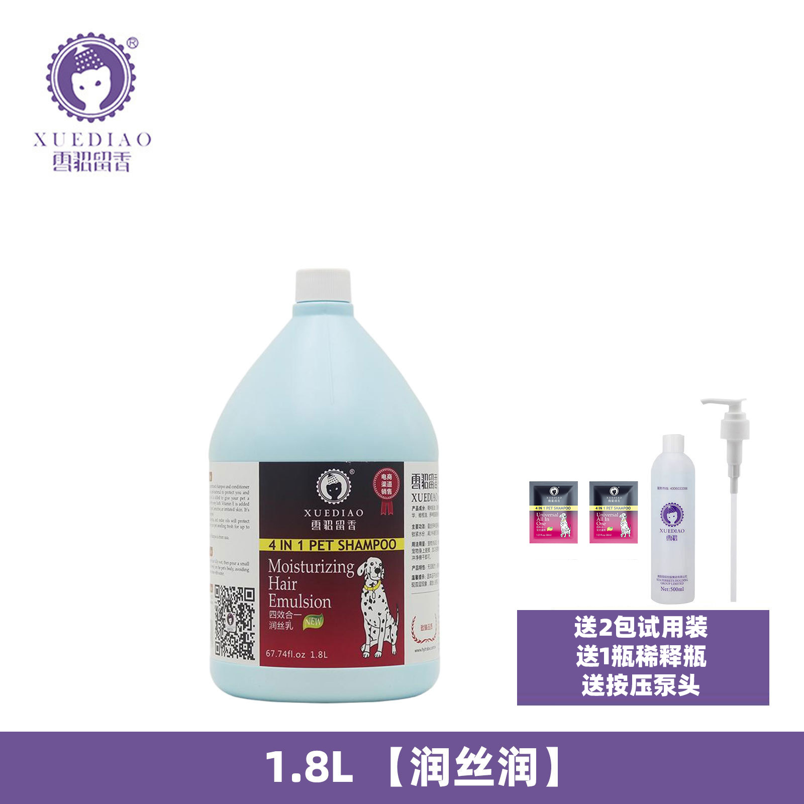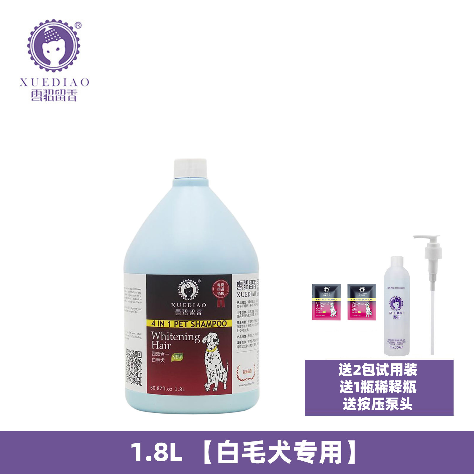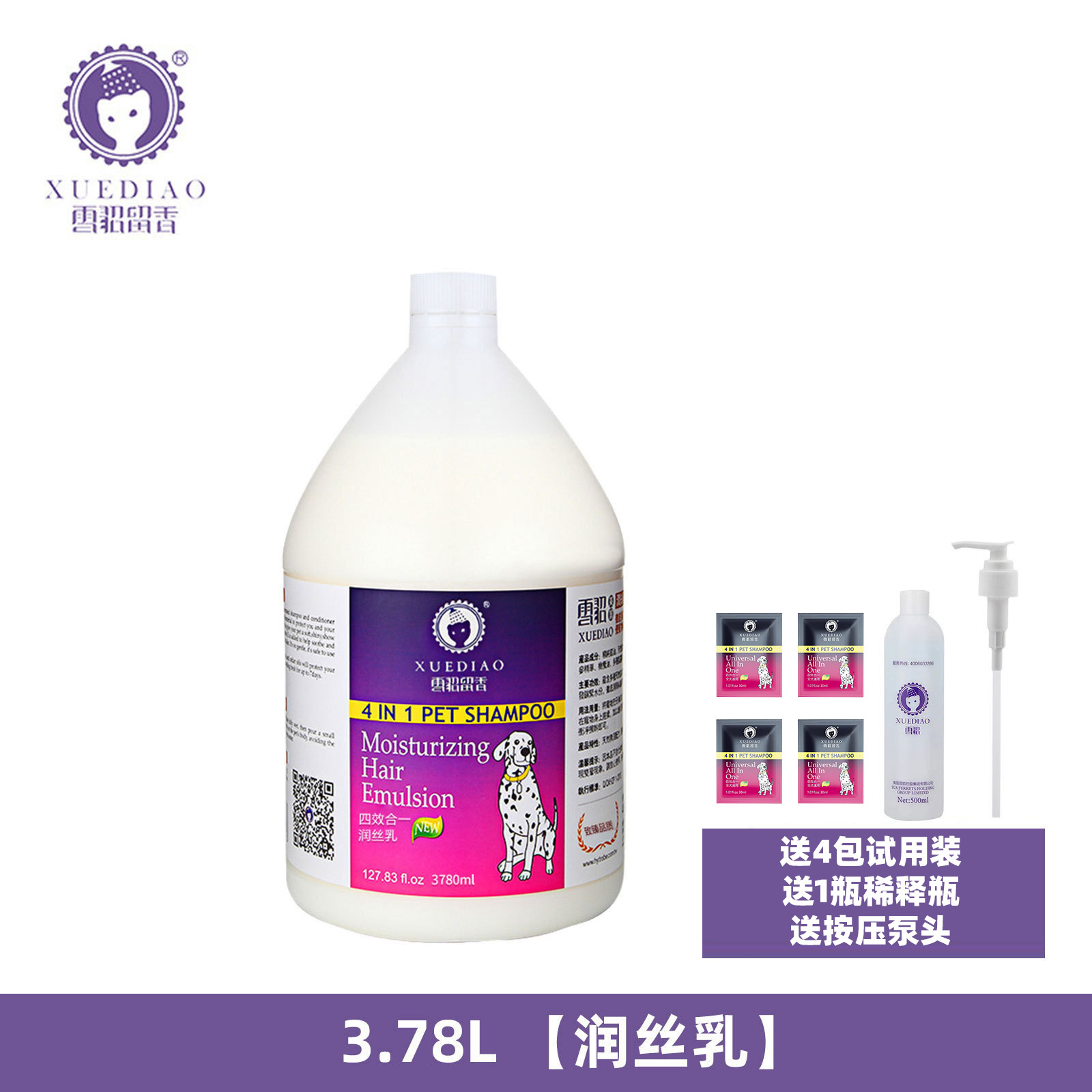 此活动只针对3.78L容量的雪貂香波,配送4包30ML试用装、1个按压泵头和1瓶稀释瓶