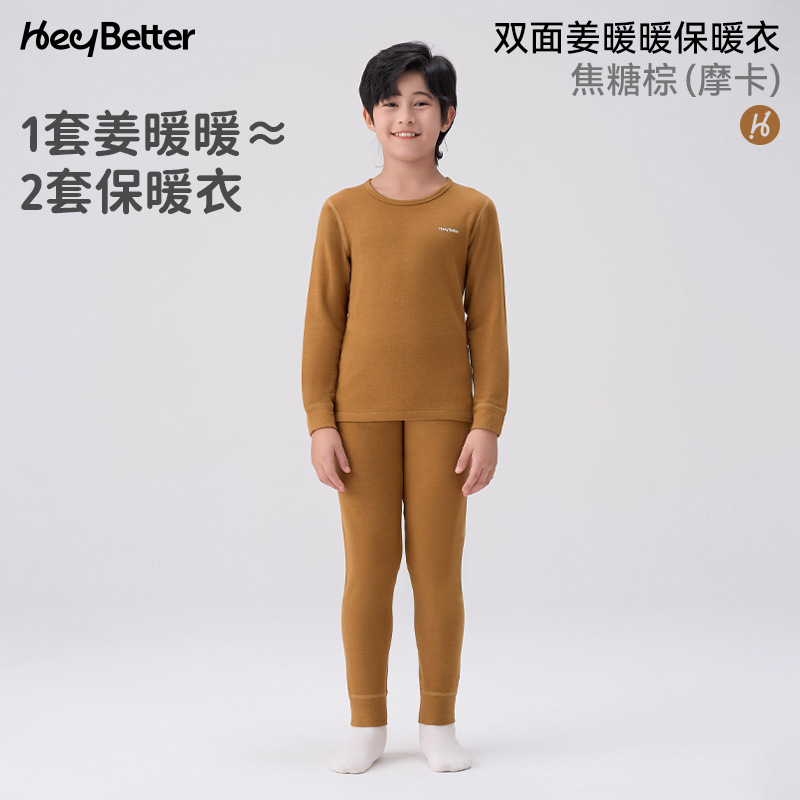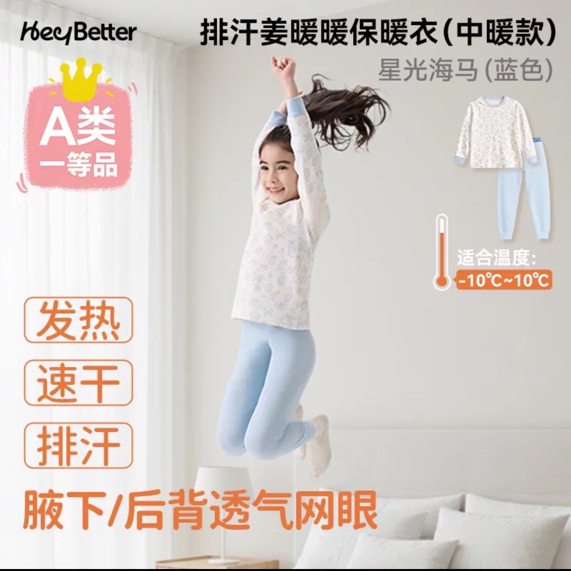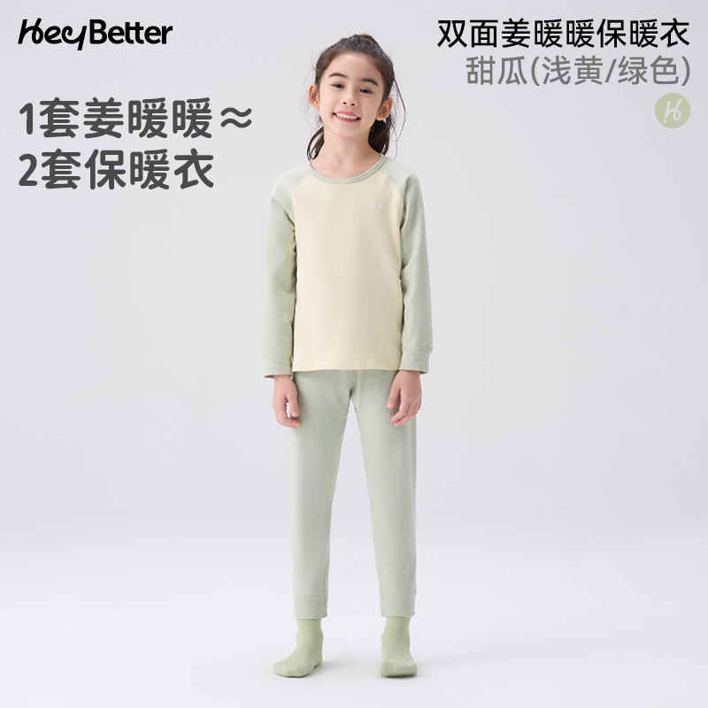 헤이베터 진난난 중간 두께 양면 착용 가능 아동 보온복 세트 남아 여아 속옷 가을옷