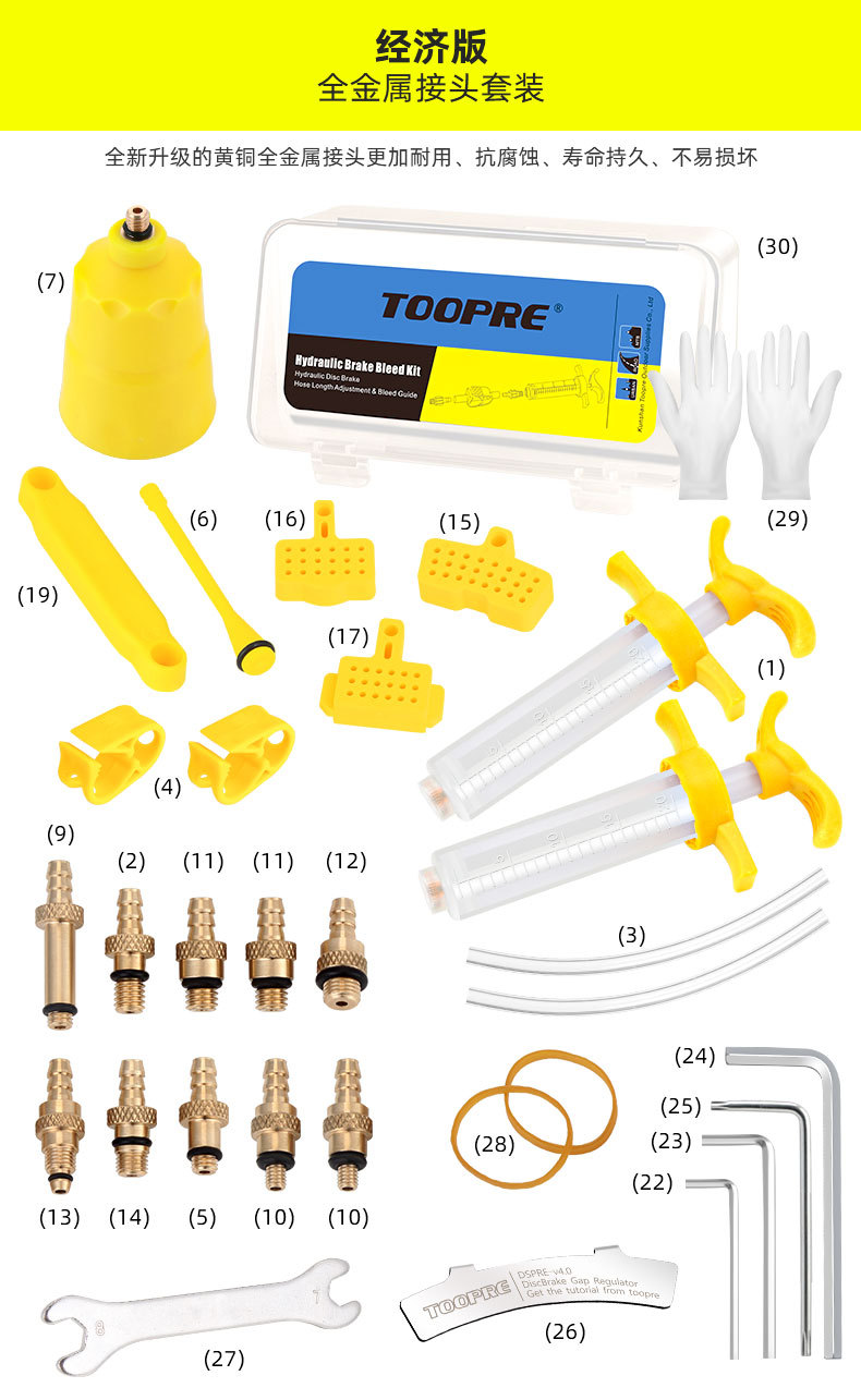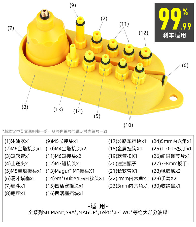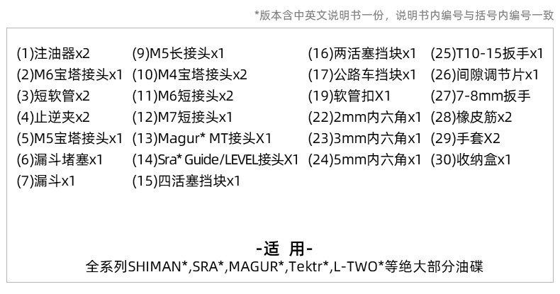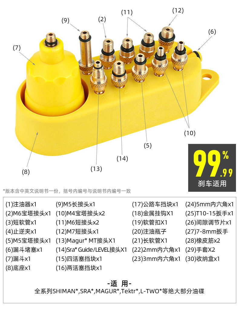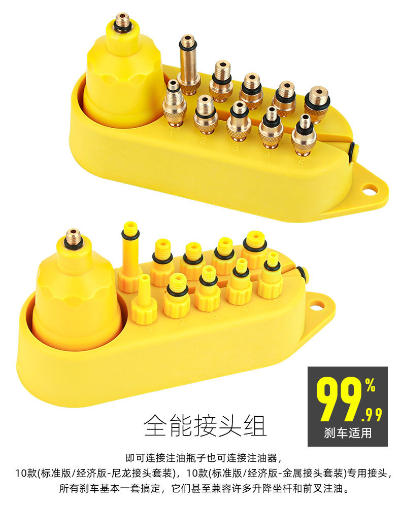 适用:全系列SHIMAN*,SRA*,MAGUR*,Tektr*,L-TWO*等绝大部分油碟。 金属接头套装接头采用黄铜全金属材质,更加耐用、寿命持久、不易损坏。