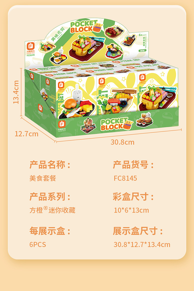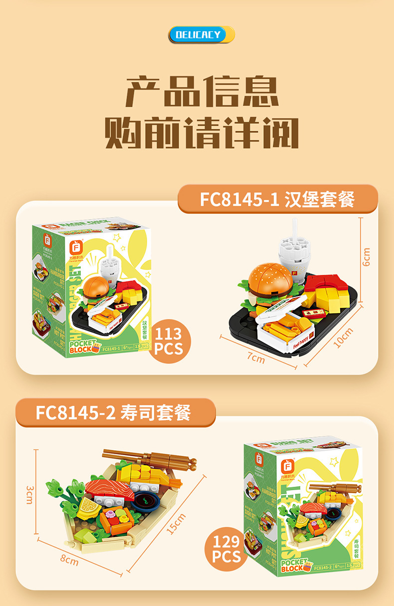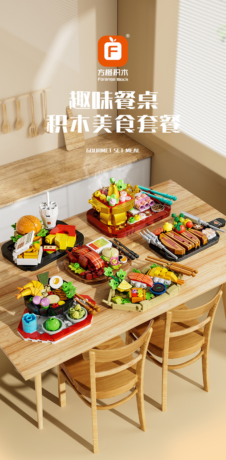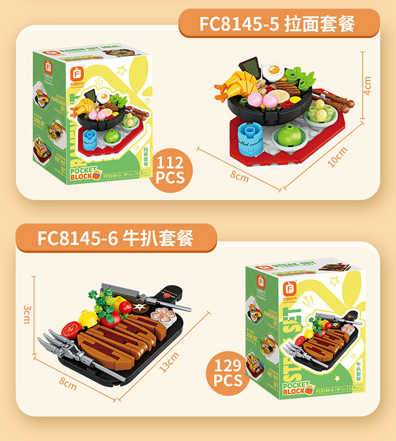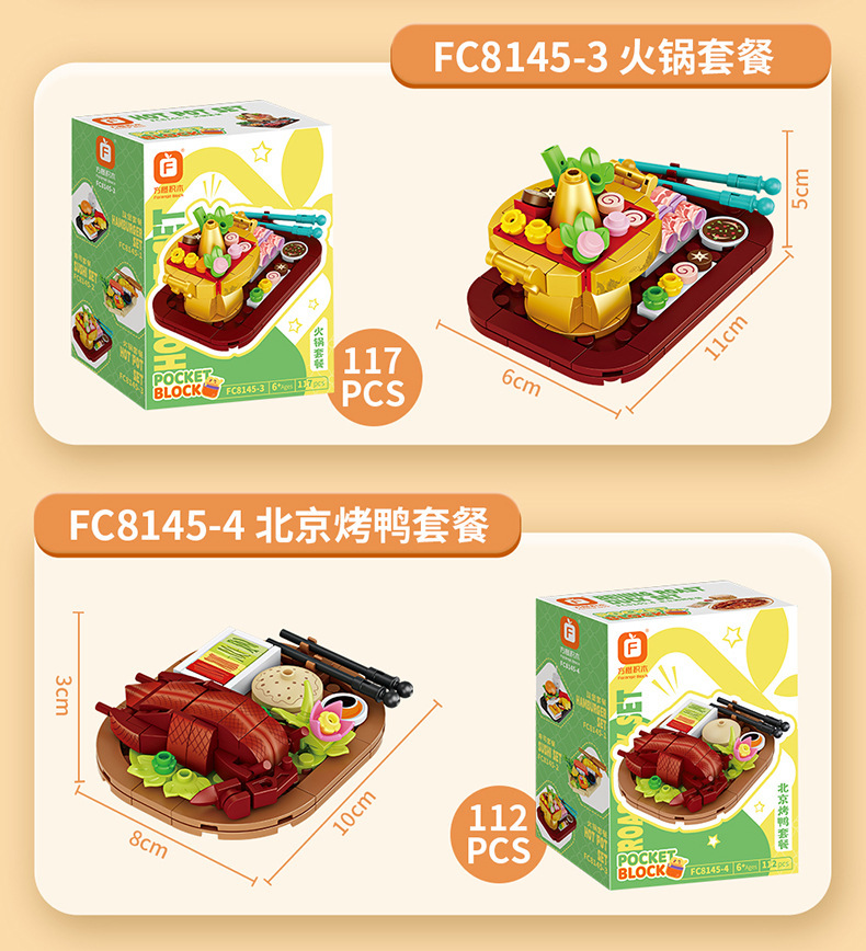 Fang Orange 8145 식품 패키지 함부르크 스시 핫 팟 로스트 오리라면 어린이 조립 건물 블록 시뮬레이션 음식 놀이 모델