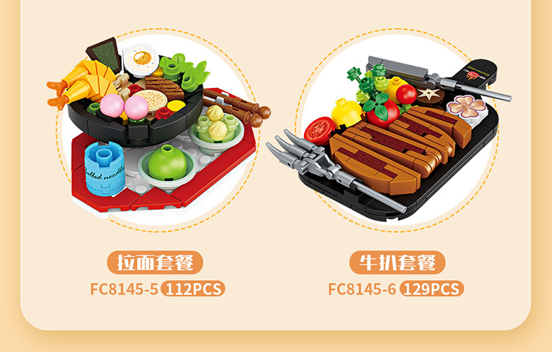 Fang Orange 8145 식품 패키지 함부르크 스시 핫 팟 로스트 오리라면 어린이 조립 건물 블록 시뮬레이션 음식 놀이 모델스토어 가기