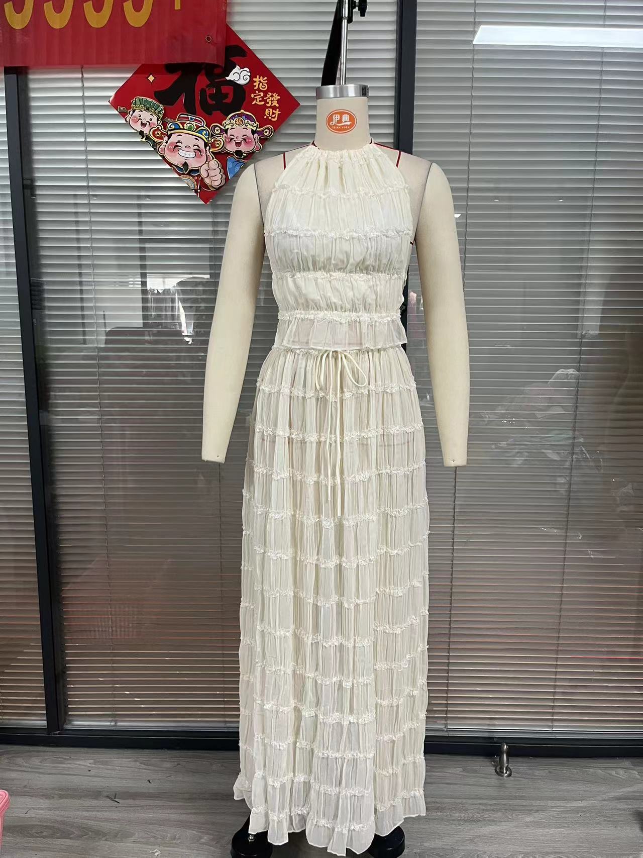 유럽과 미국의 섹시한 여성 국경 아마존 새로운 민소매 목 탑 스커트 투피스 세트