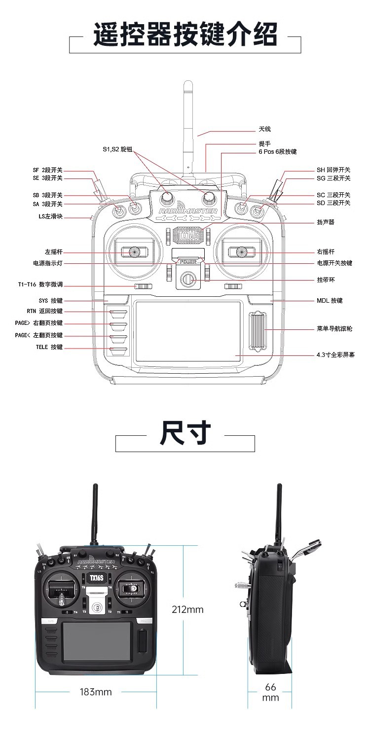 Radiomaster TX16S MKII ELRS 모델 항공기 원격 제어 드론 fpv 횡단 기계 원격 제어
