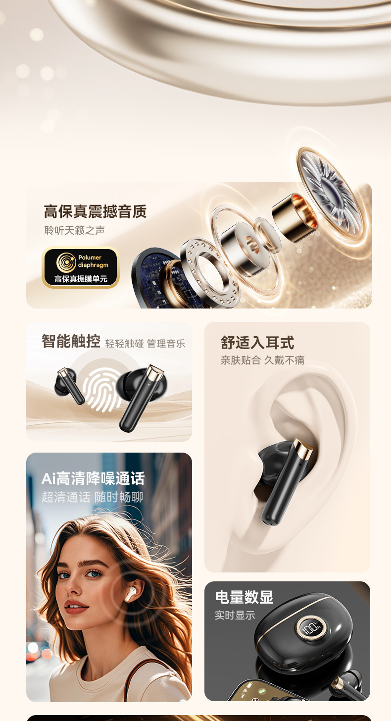 새로운 2024 베를린 음성 무선 블루투스 헤드셋 인 이어 스포츠 높은 음질 방수 소음 감소 전자 상거래 폭발