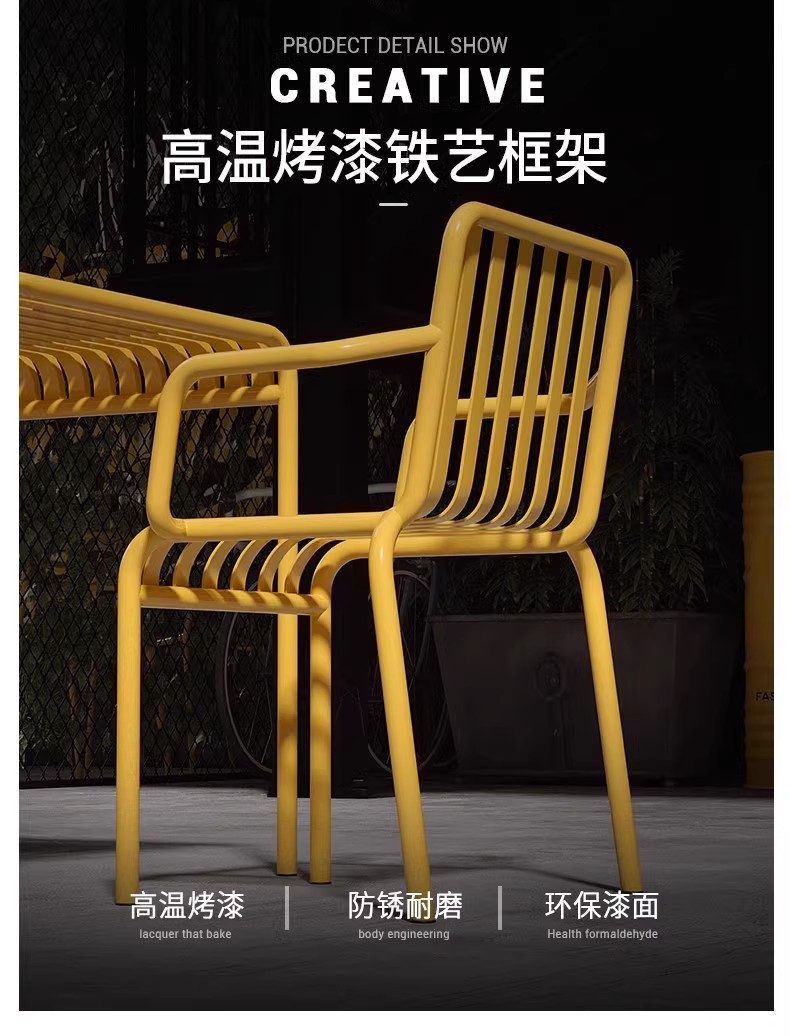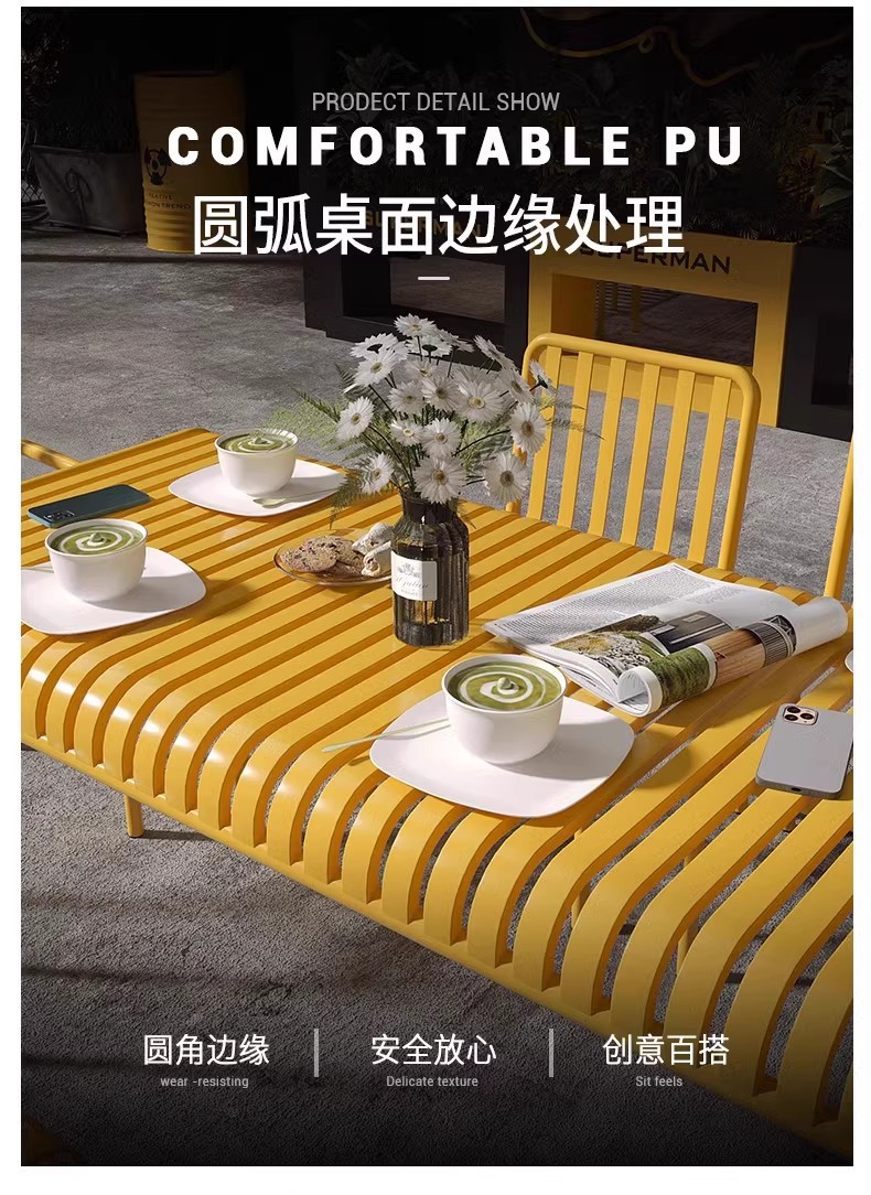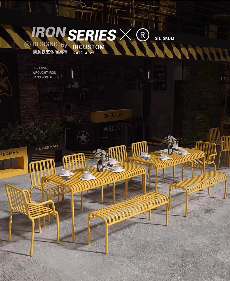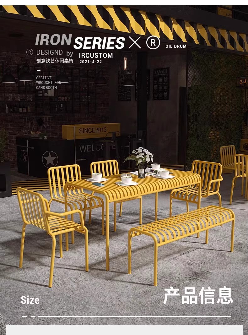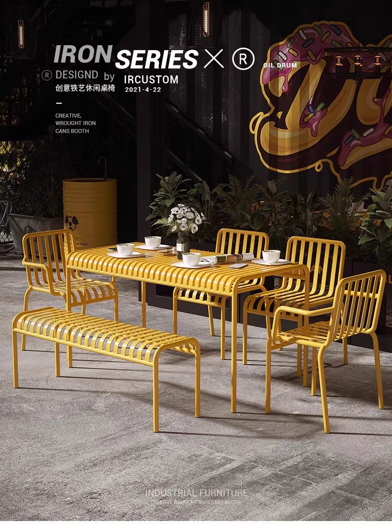 산업 스타일 레저 안뜰 테이블과 의자 야외 테이블과 의자 조합 철공 우유 차 가게 카페 야외 식탁 및 의자 조합스토어 가기