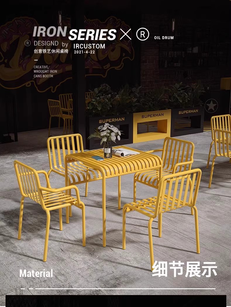 산업 스타일 레저 안뜰 테이블과 의자 야외 테이블과 의자 조합 철공 우유 차 가게 카페 야외 식탁 및 의자 조합