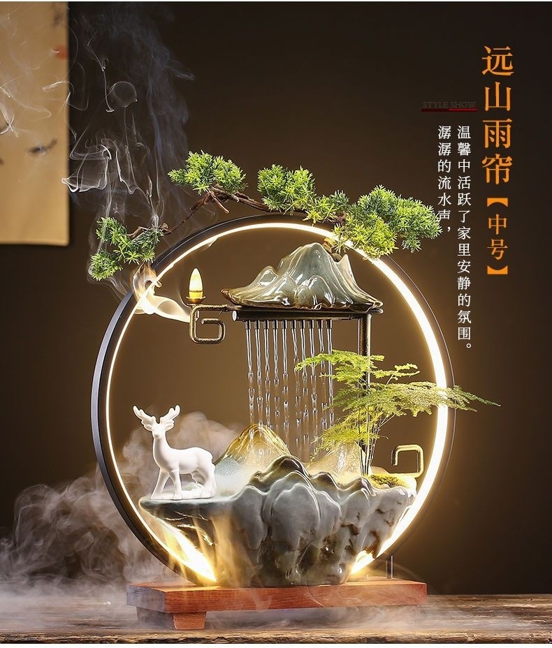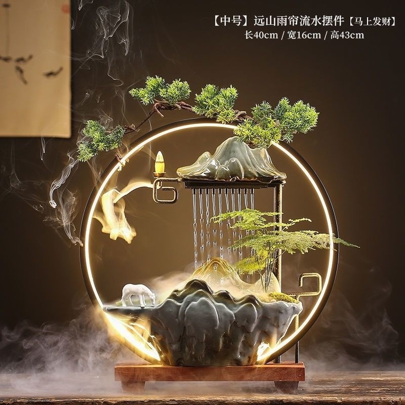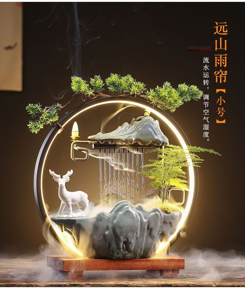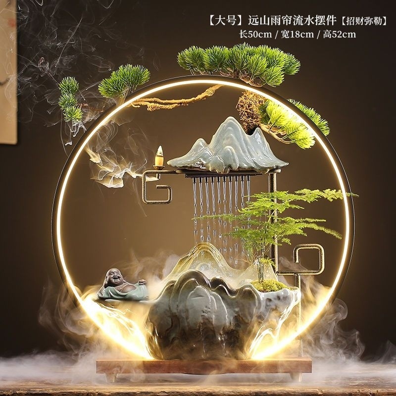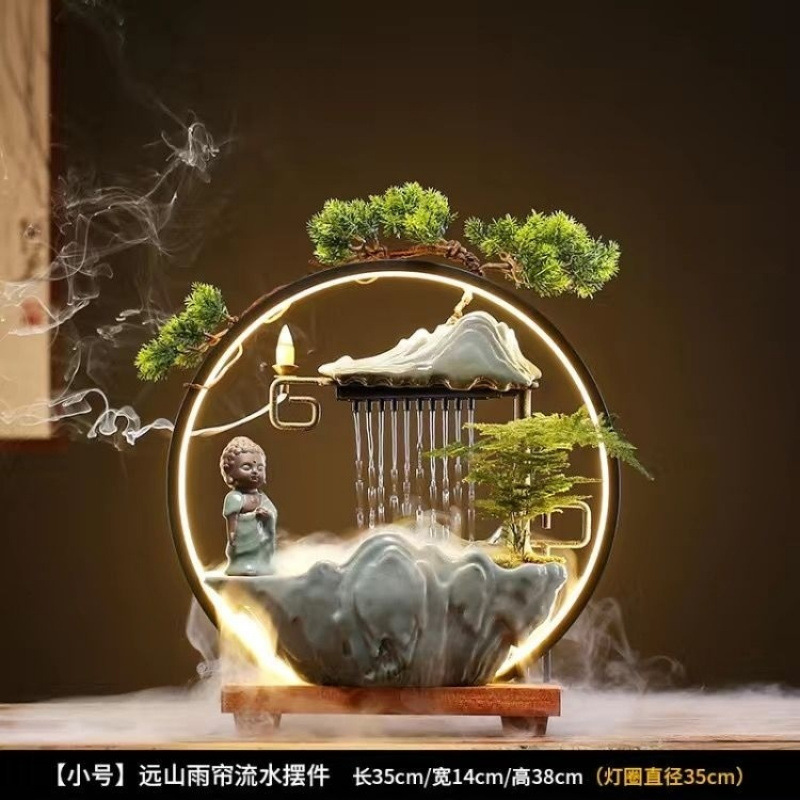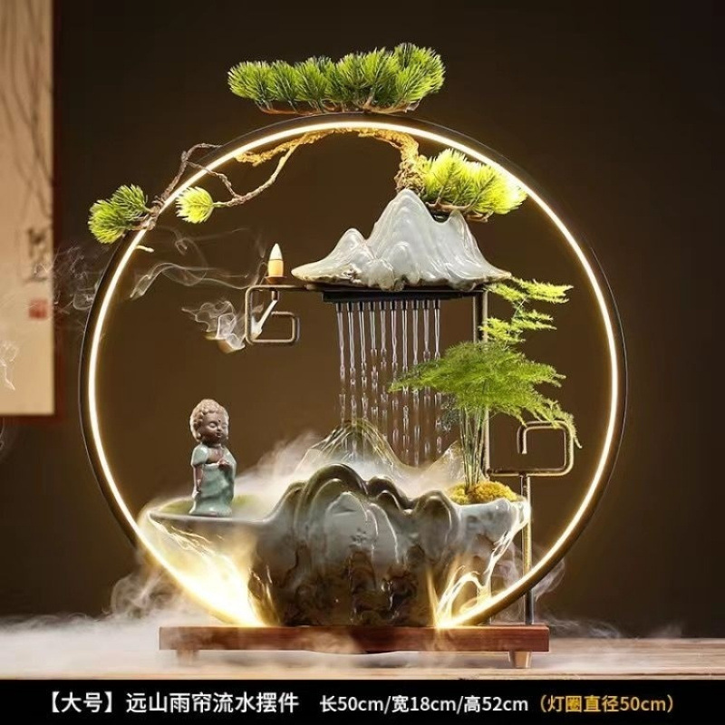 새로운 중국 스타일의 운세 흐르는 물 장식품 창조적 인 순환 물 거실 바위 가습 분수 집들이 새로운 집 오프닝 선물