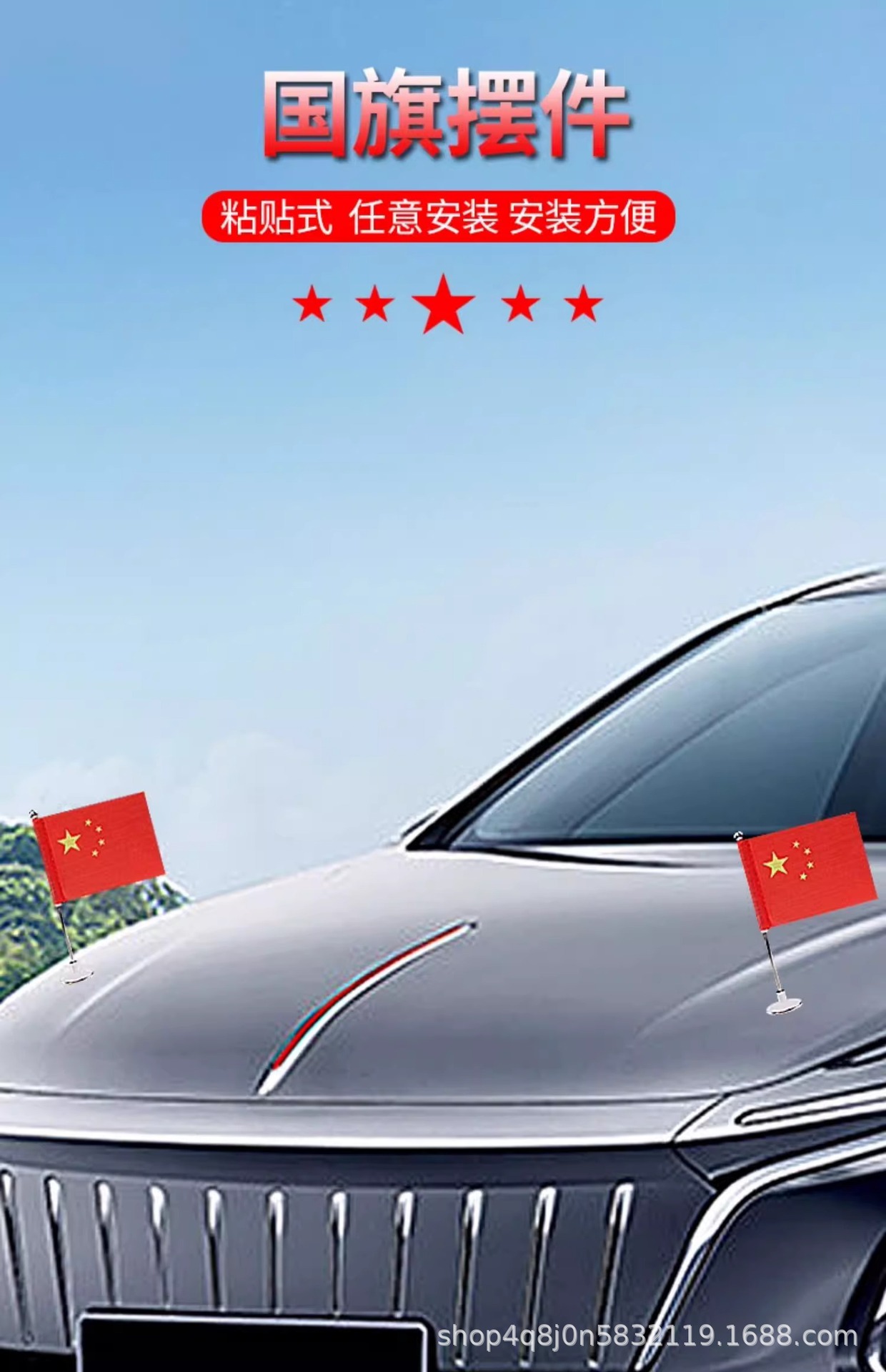 국기 5 성급 붉은 깃발 장식품 붙여 넣기 형 자동차 앞 지붕 뒷차 고급 장식 자동차 외관스토어 가기