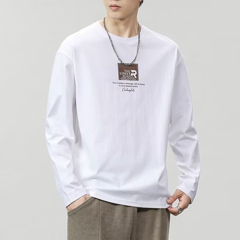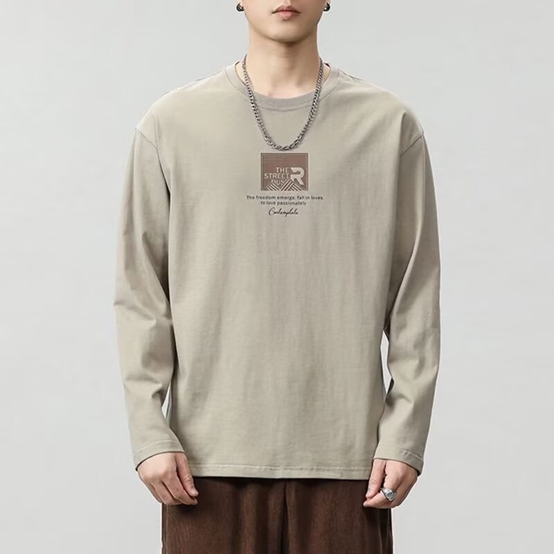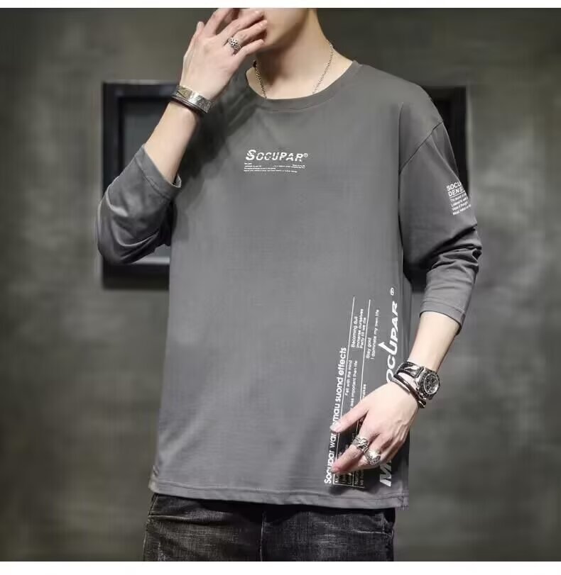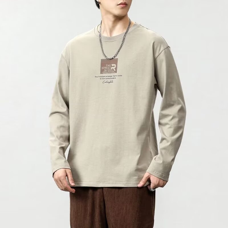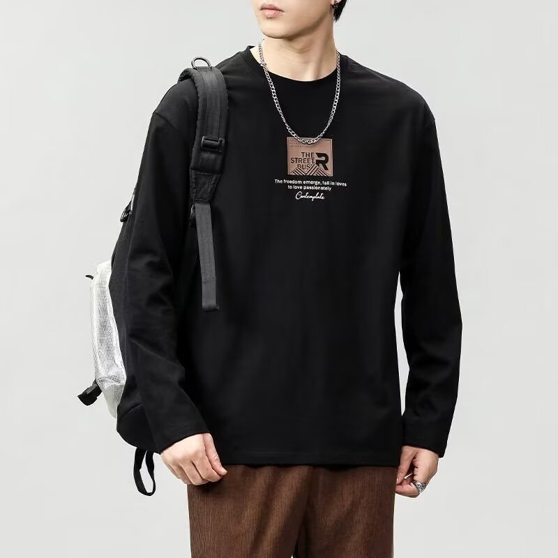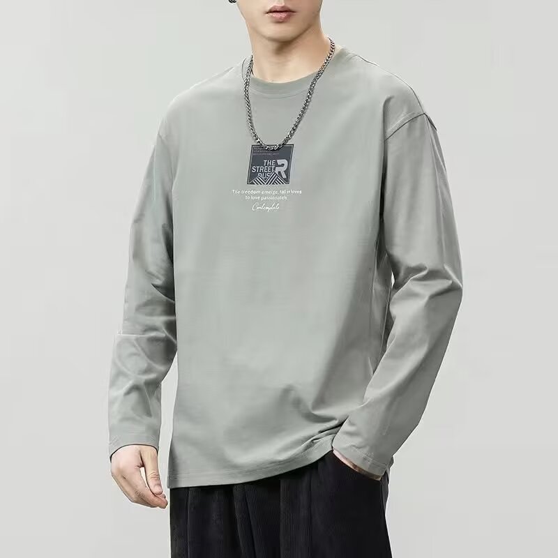 긴 소매 티셔츠 남성용 봄과 가을 탑 코튼 내베이스 셔츠 스웨터 유행 느슨한 플러스 사이즈 남성 의류스토어 가기