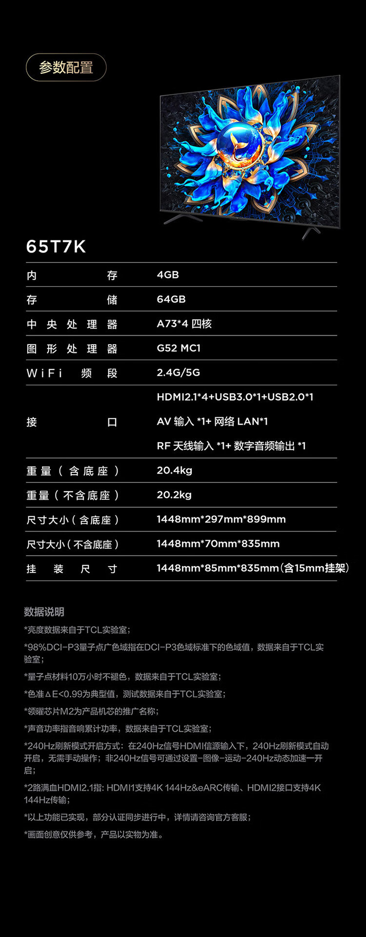 • 65inch 【4GB+64GB 144Hz】65T7K