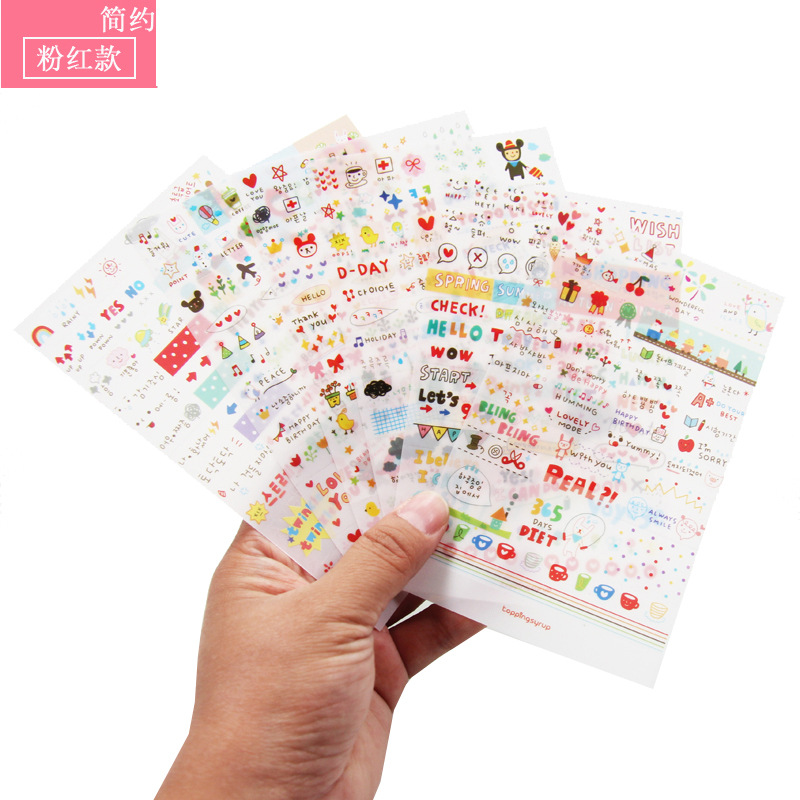 DIY日记贴纸【6张装】简约生活粉红版简单小物PVC贴纸