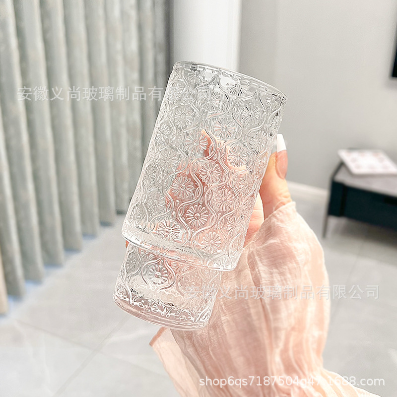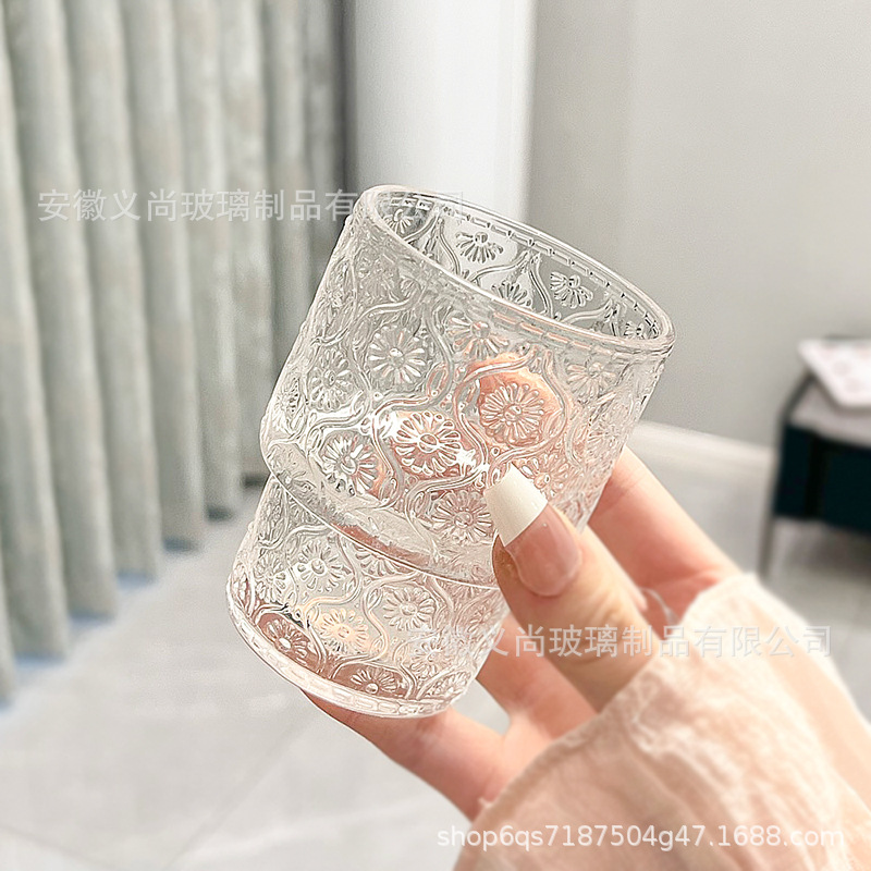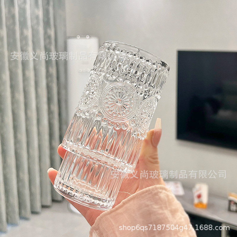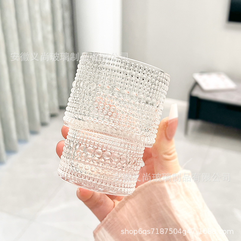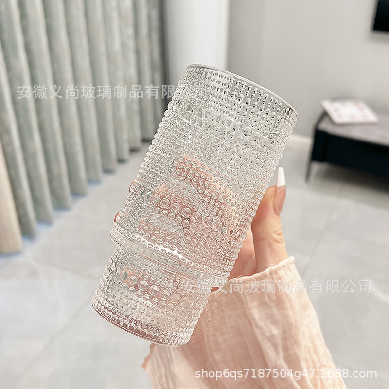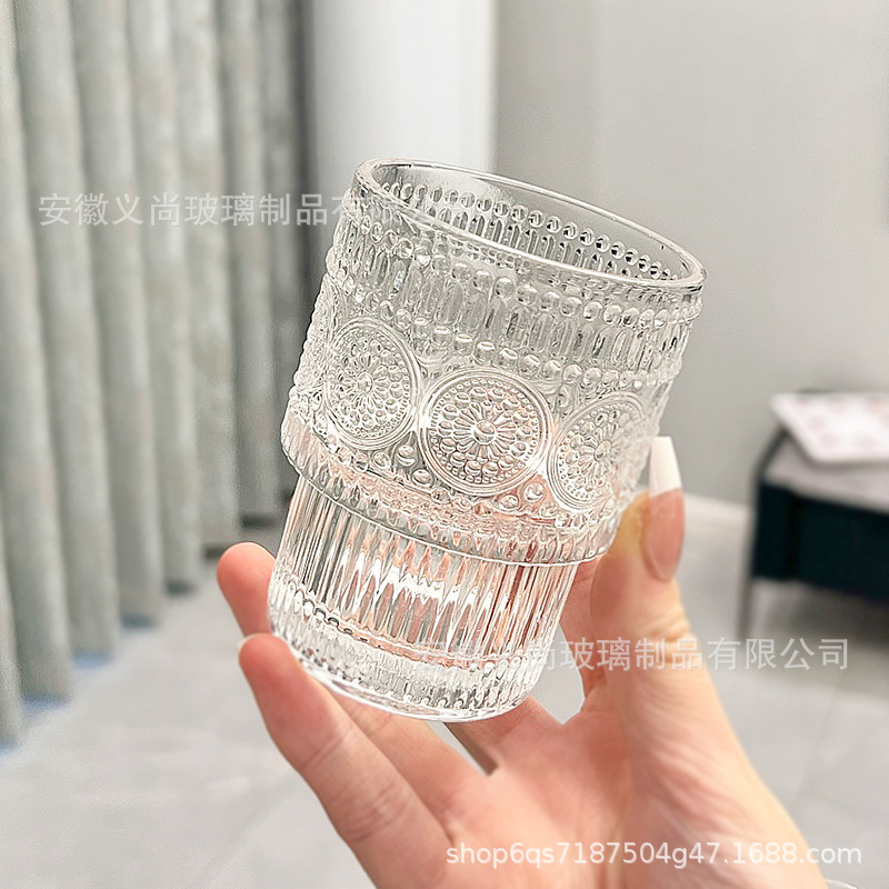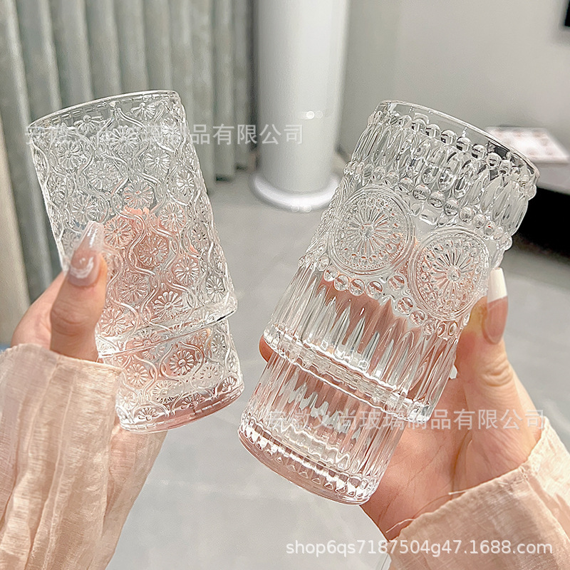 쌓을 수있는 유리 시리즈 대용량 빈티지 릴리프 컵 아메리칸 커피 컵 유리 흡입 컵 쌓을 수있는 컵