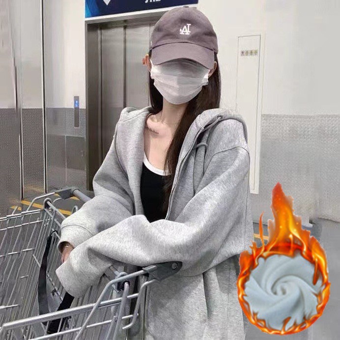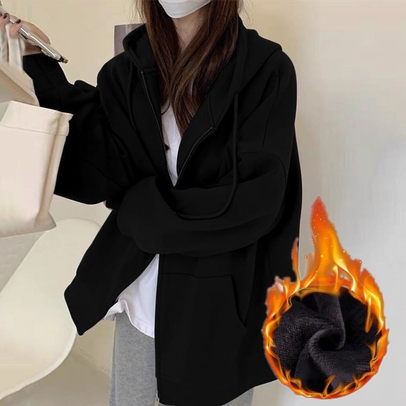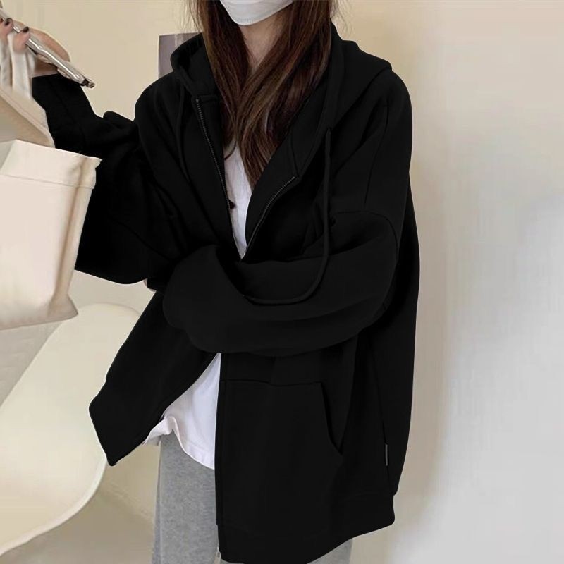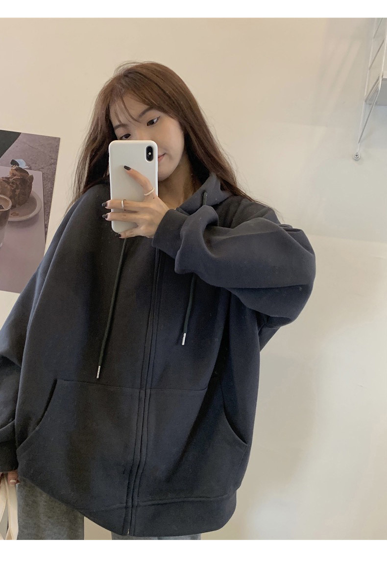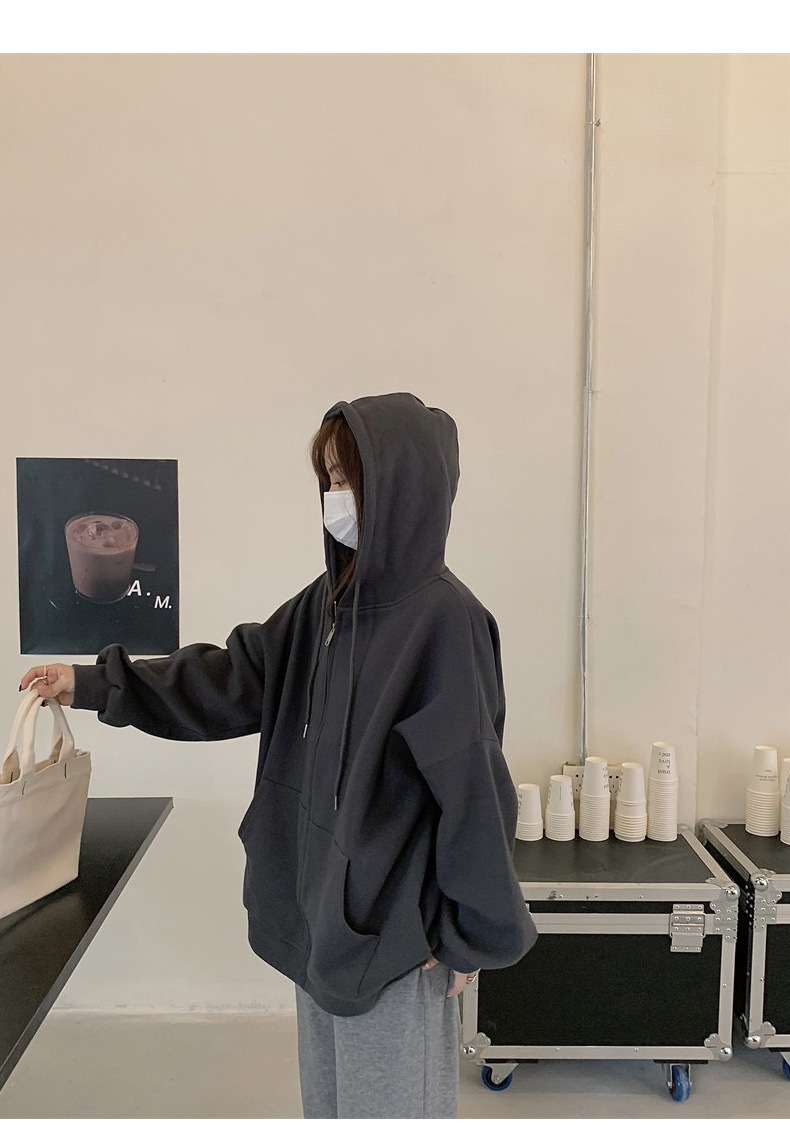 무거운 260G 생선 스케일 새로운 느슨한 오버 사이즈 여성용 스웨터 카디건 지퍼 커플 여자 친구 후드 코트스토어 가기