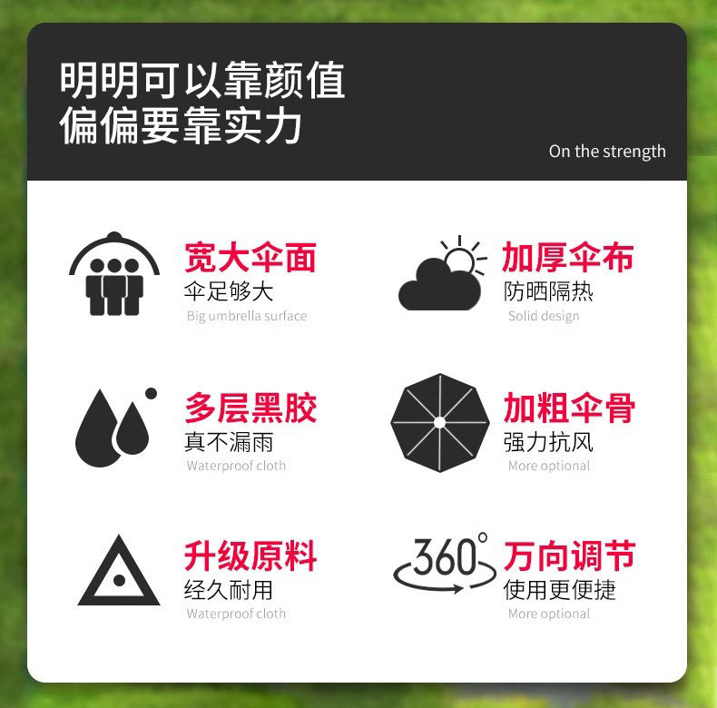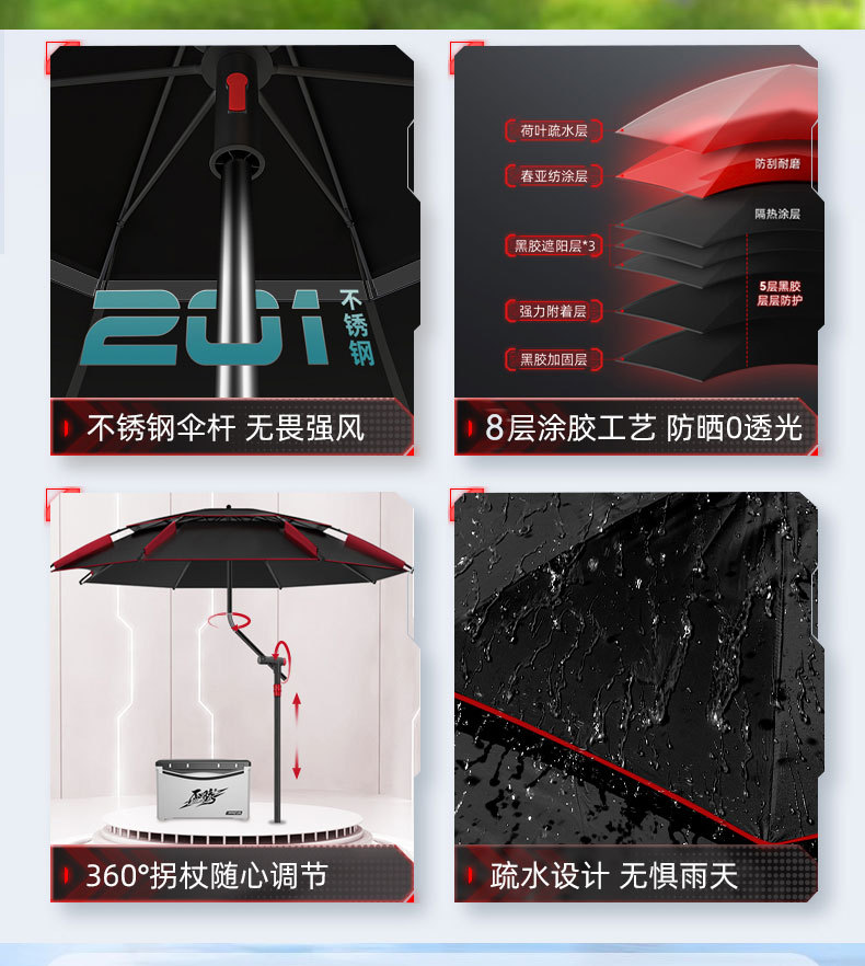 • 전체 스테인리스 우산 [12링항력 6급 바람 + 폭우 방지 + 자외선 차단] 검정, 빨강 2.0m