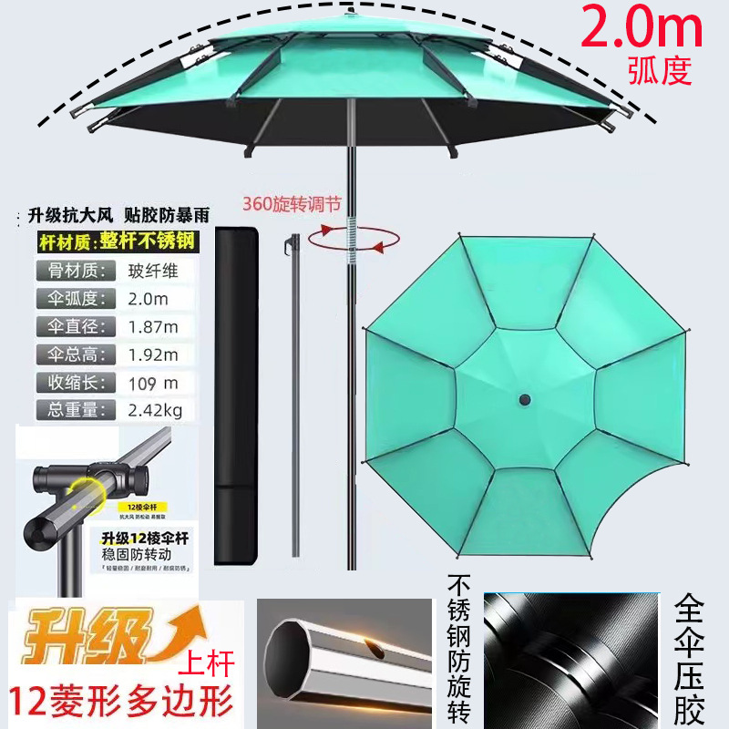 • 전체 스테인리스 우산 [12링항력 6급 바람 + 폭우 방지 + 자외선 차단] 시안 2.0m