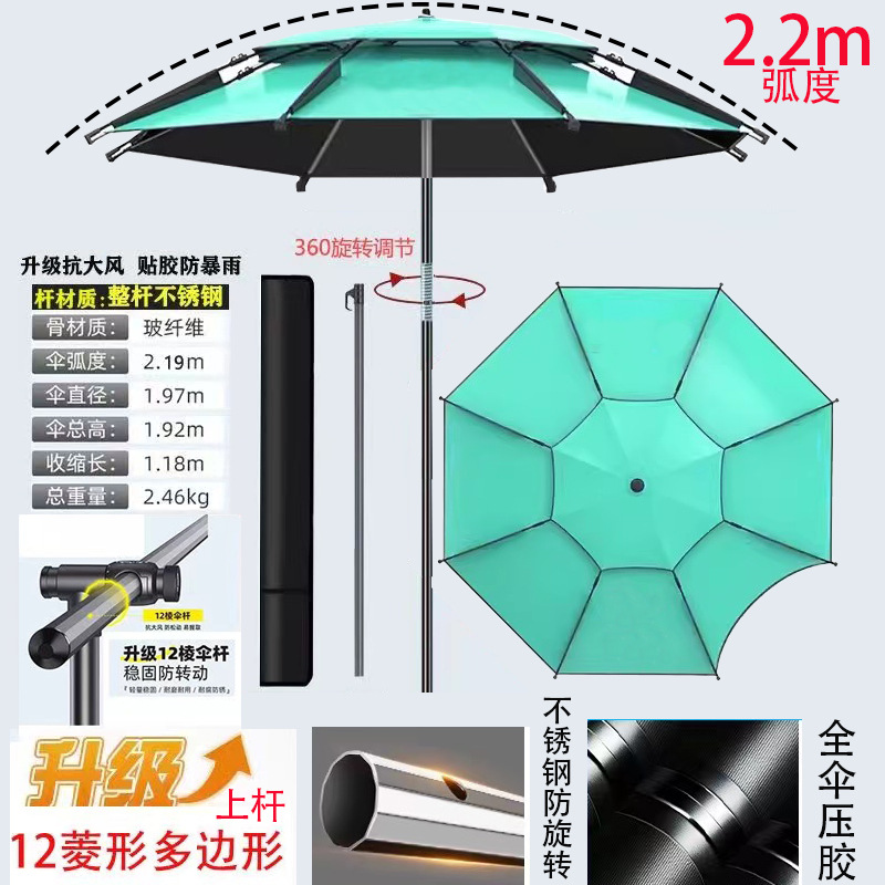 • 전체 스테인리스 우산 [12링항력 6급 바람 + 폭우 방지 + 자외선 차단] 시안 2.2m