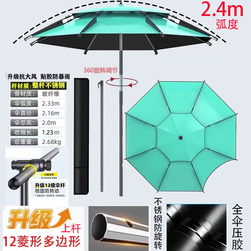 • 전체 스테인리스 우산 [12링항력 6급 바람 + 폭우 방지 + 자외선 차단] 시안 2.4m
