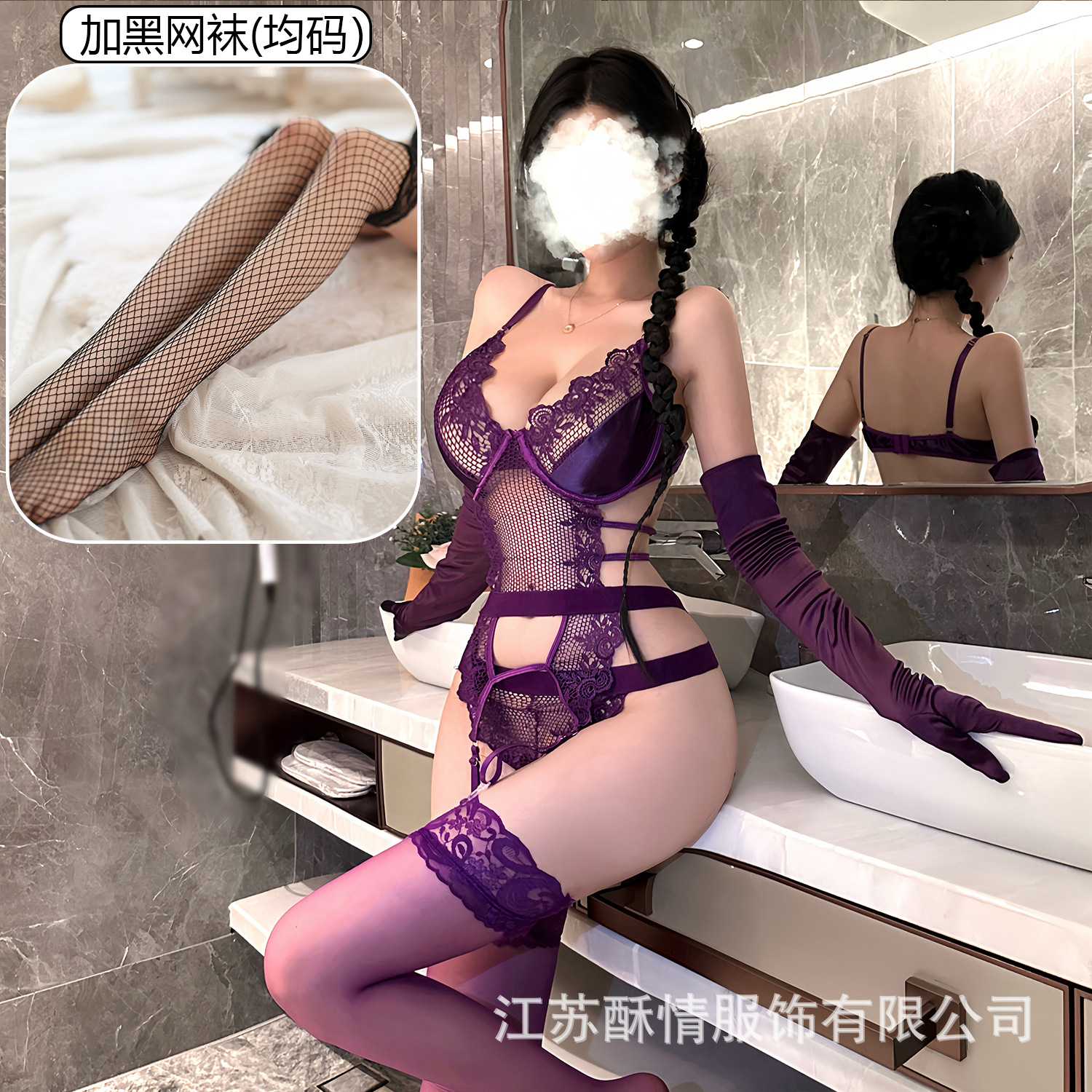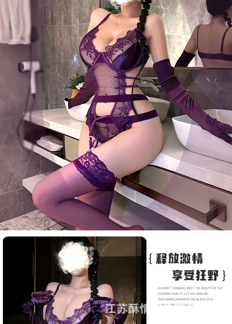• 보라색 + 장갑 + 검은 나비 망사 스타킹