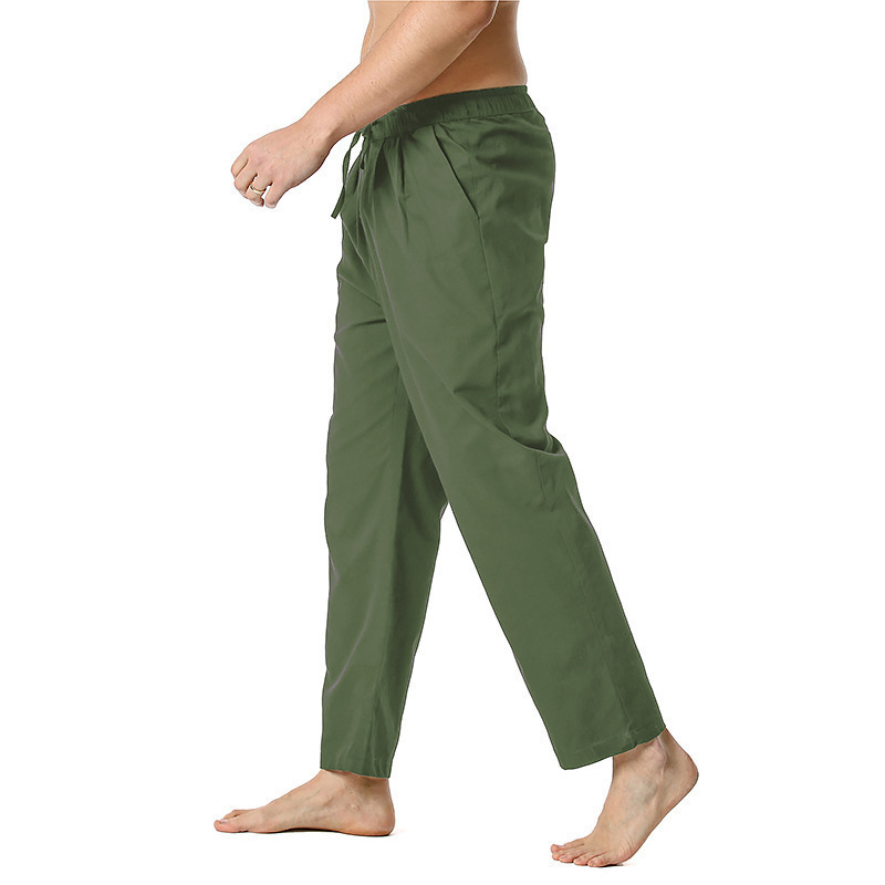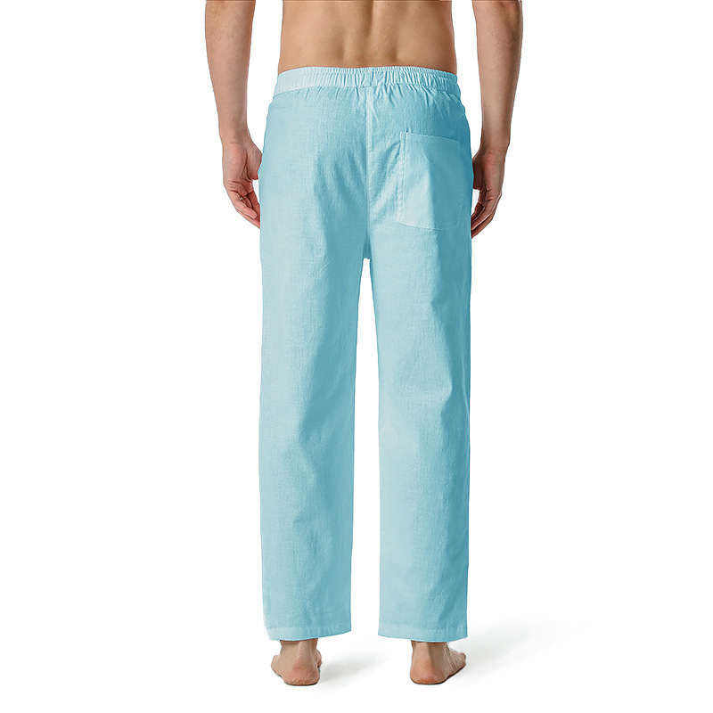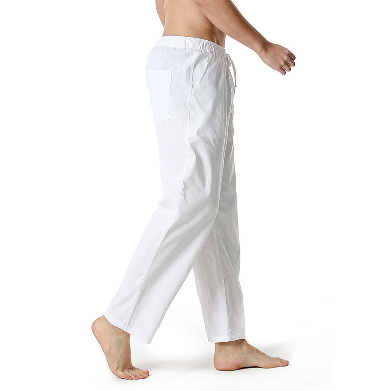 2023 대외 무역 국경 면화 및 리넨 바지 여름 새로운 남성 린넨 바지 캐주얼 바지 요가 바지 홈 스포츠 바지스토어 가기
