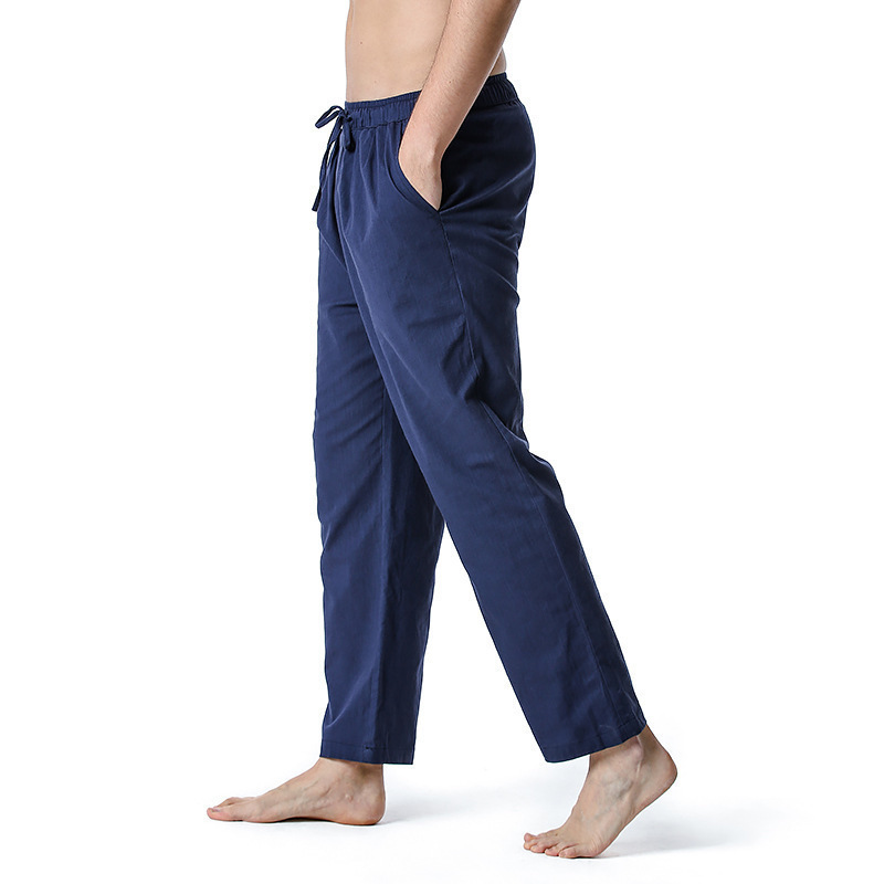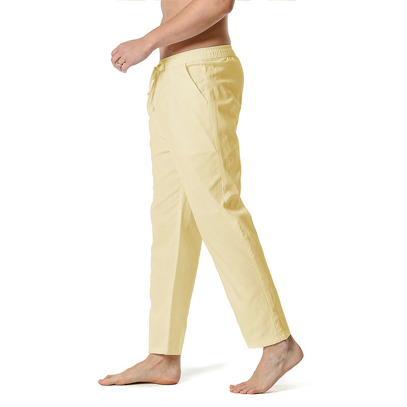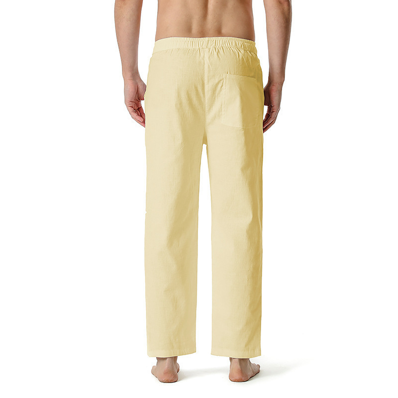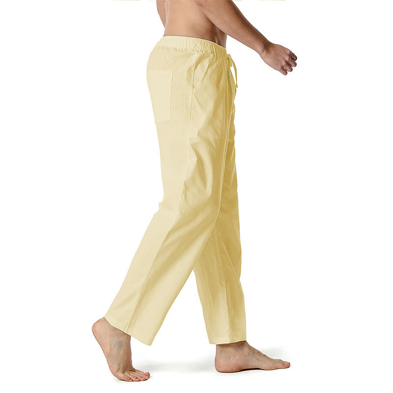 2023 대외 무역 국경 면화 및 리넨 바지 여름 새로운 남성 린넨 바지 캐주얼 바지 요가 바지 홈 스포츠 바지
