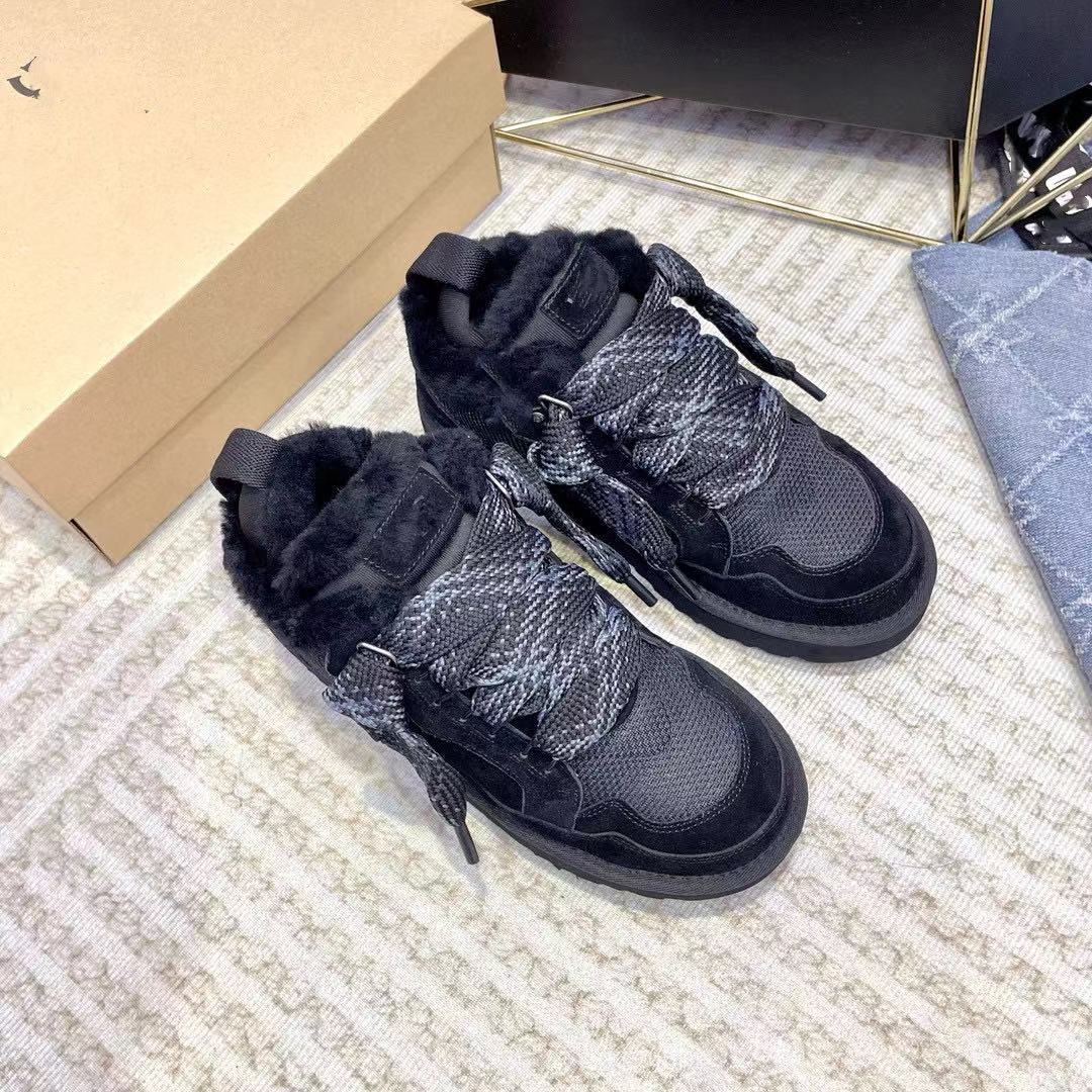 欧美秋冬新款真皮舒适真毛保暧雪地鞋百搭宽鞋带梅尔休闲鞋女