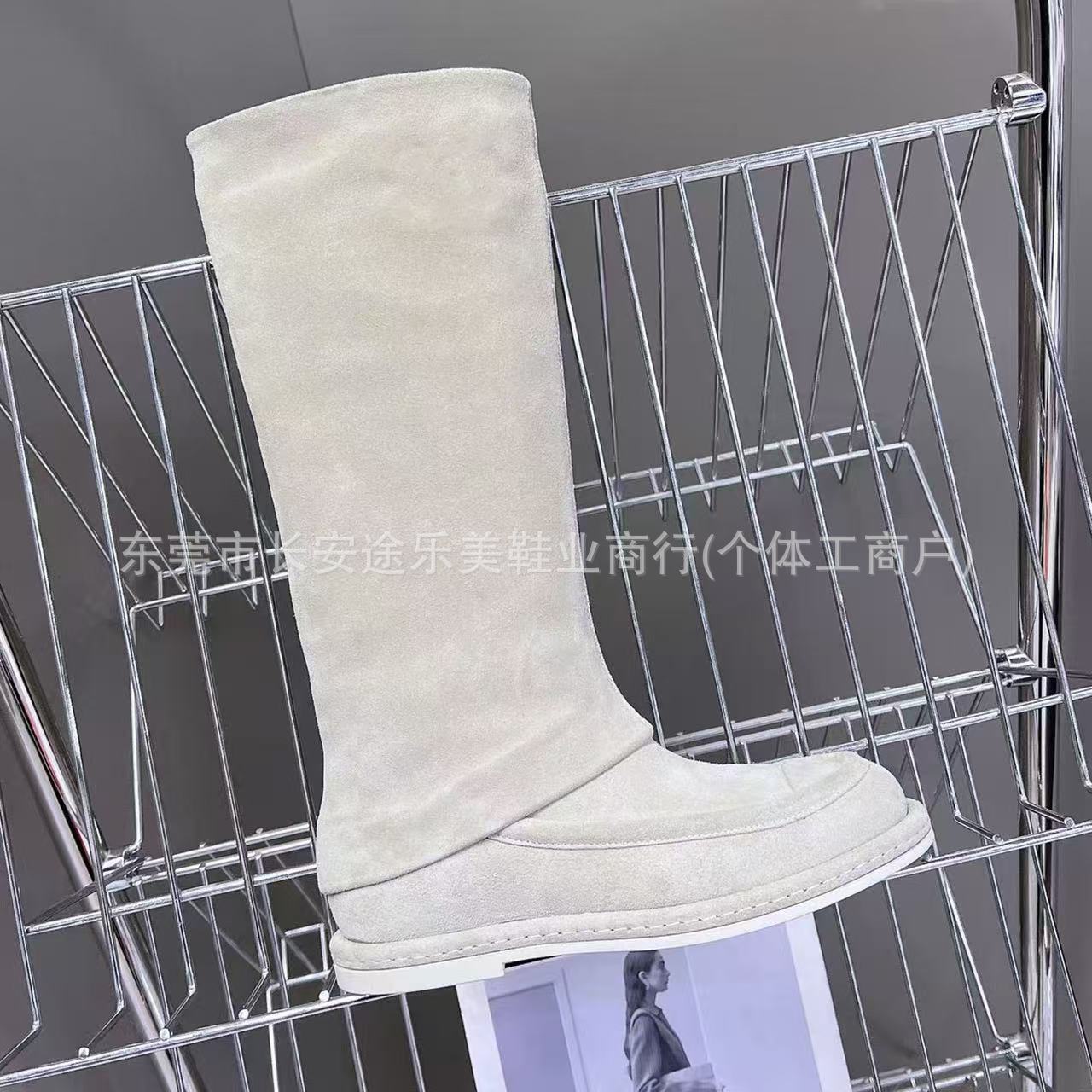 2025秋冬新款小香风麂皮长筒裤管靴女式白色长靴骑士靴高筒靴