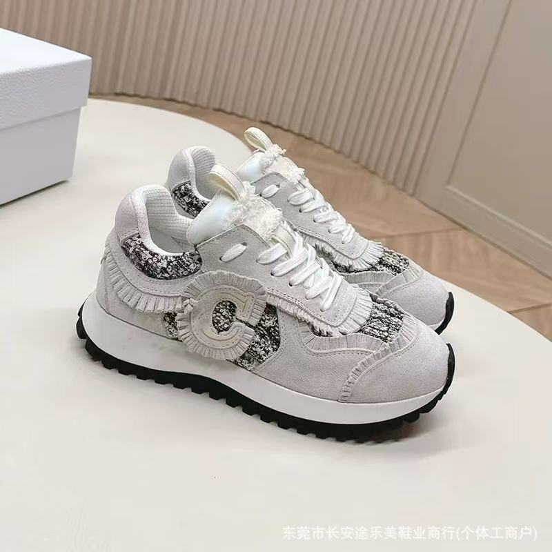 欧洲站D家浅口低帮时尚百搭休闲运动鞋女圆头系带平底流苏跑步鞋