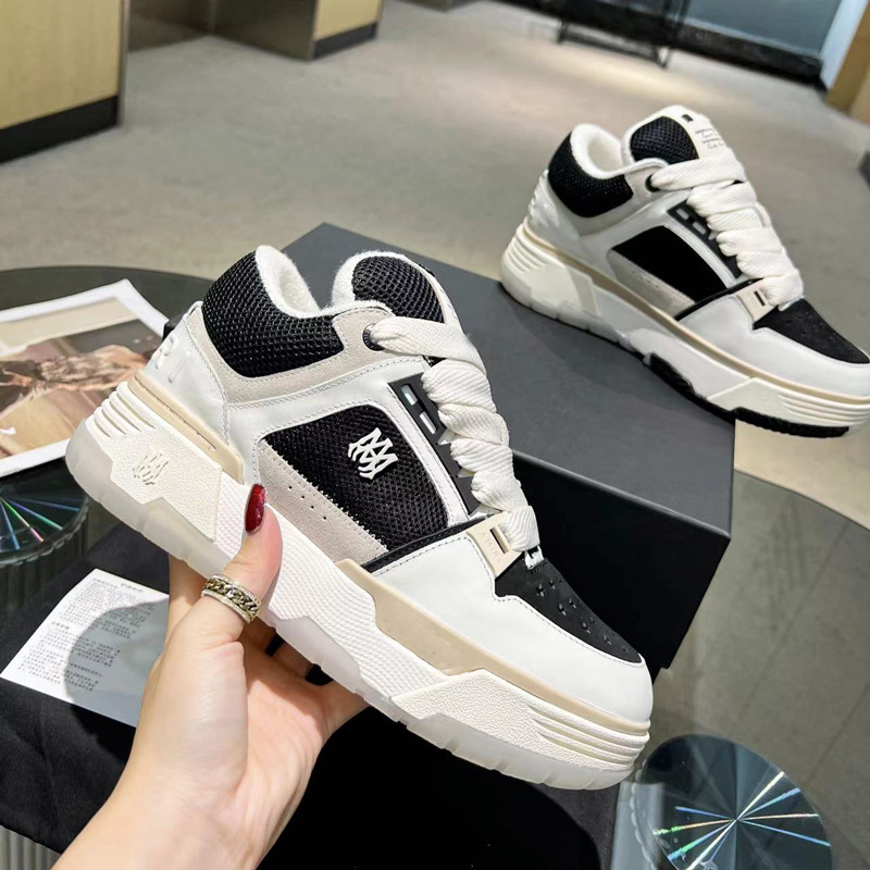 欧美时尚新款厚底滑板鞋圆头拼色系带舒适百搭男女蓝球休闲运动鞋