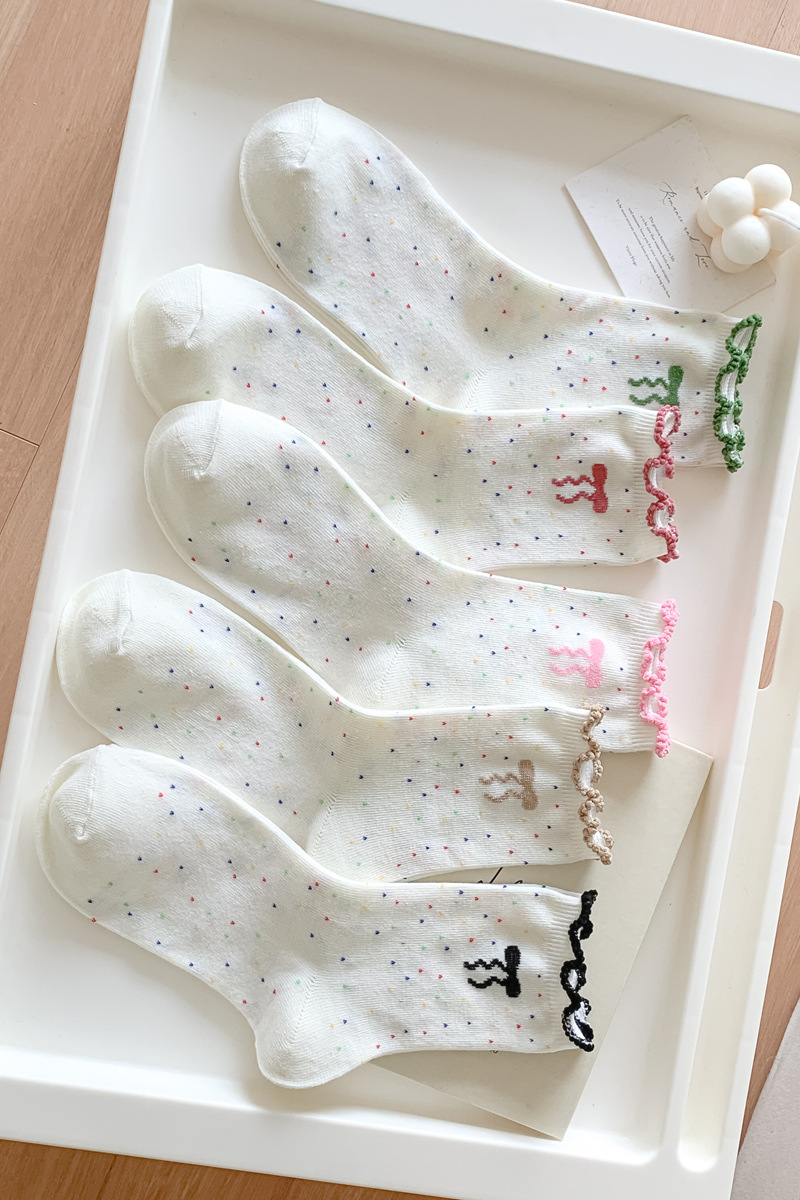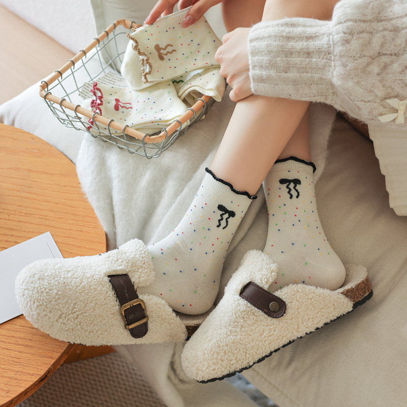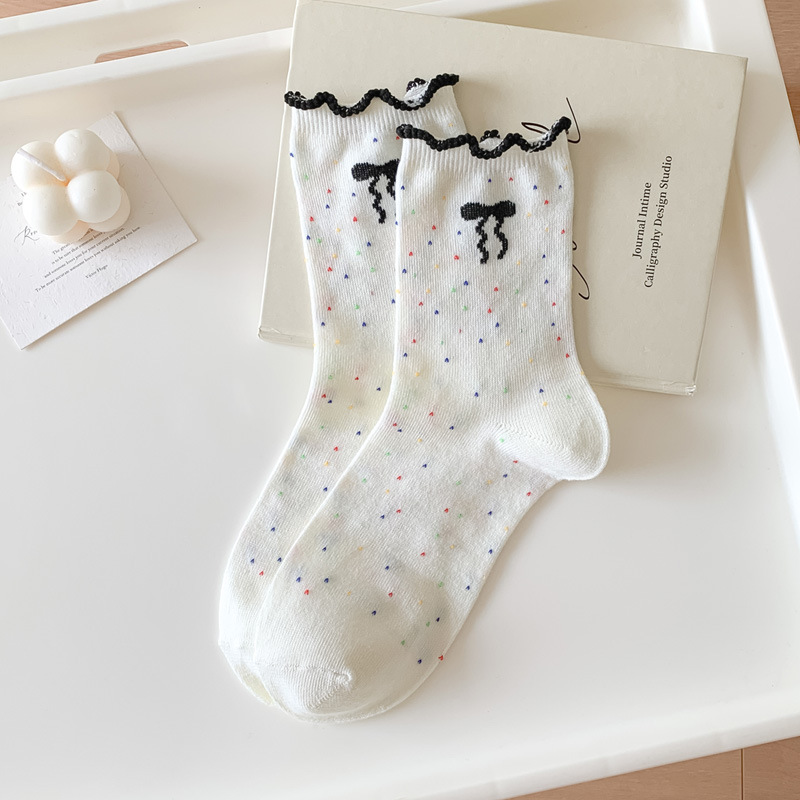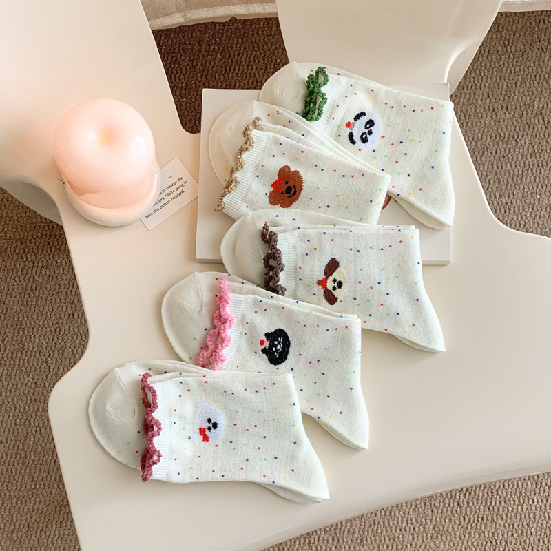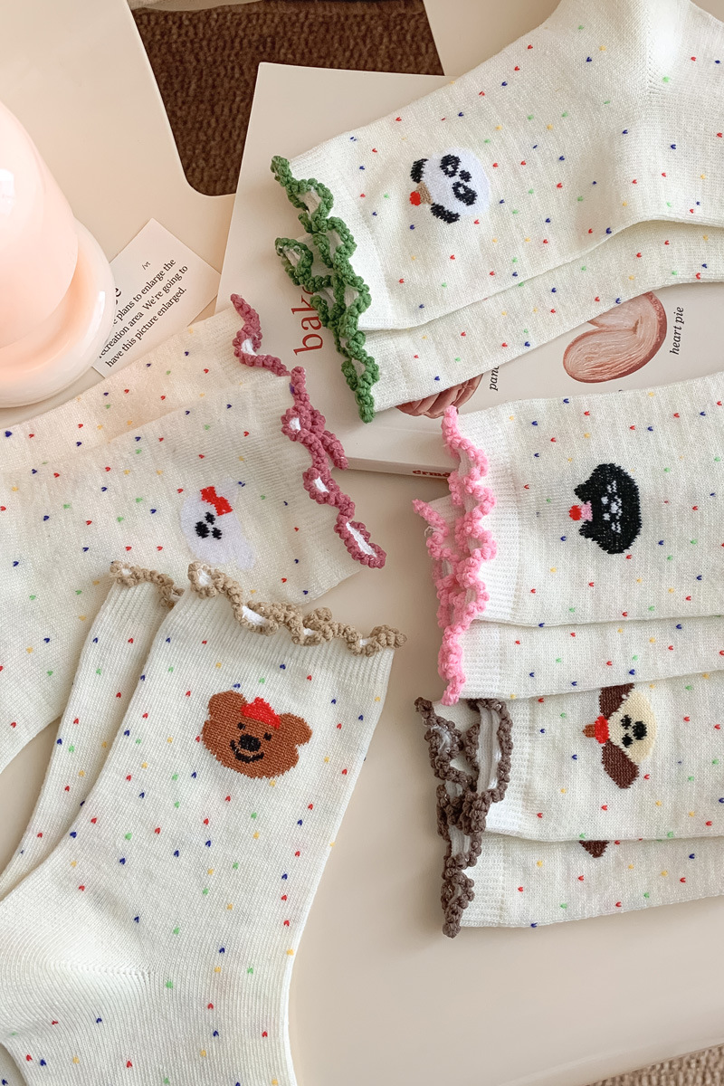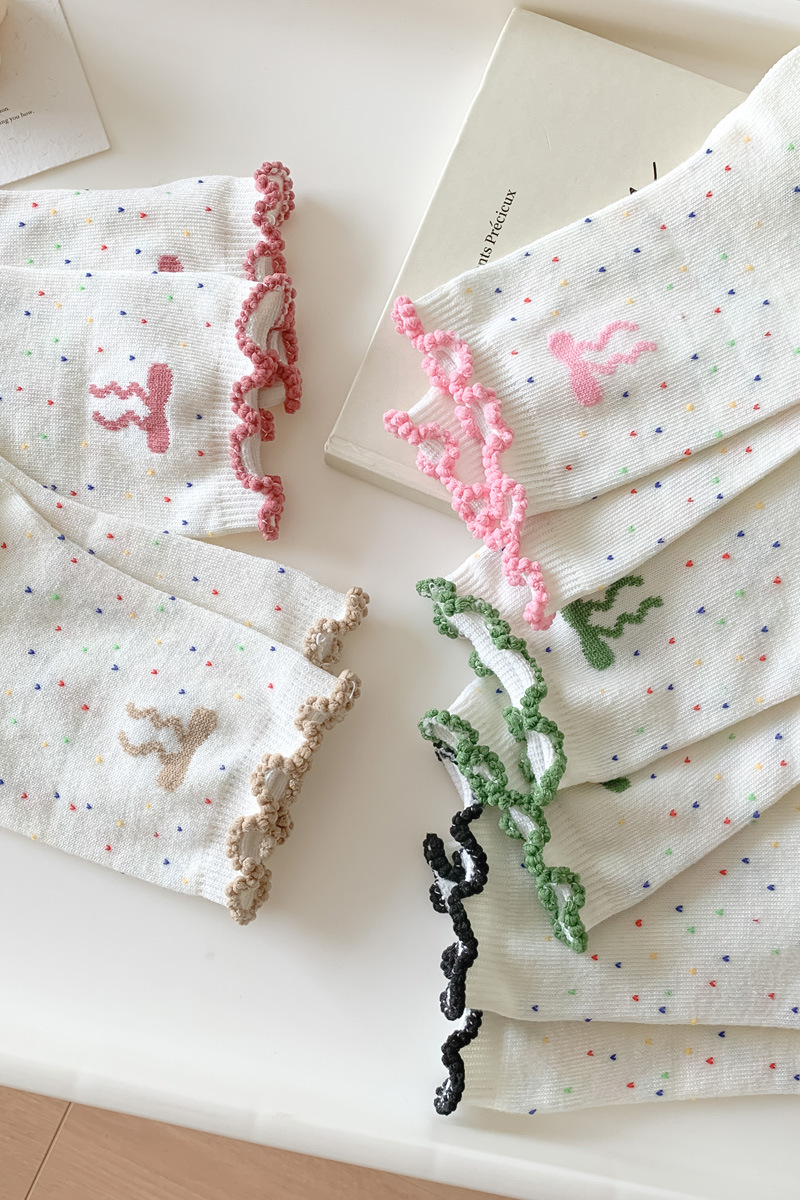 레이스 양말 어린이 봄과 가을 중반 튜브 양말 땀 흡수성 탈취제 가을 및 겨울 다재다능한 학생들이 양말을 쌓습니다.