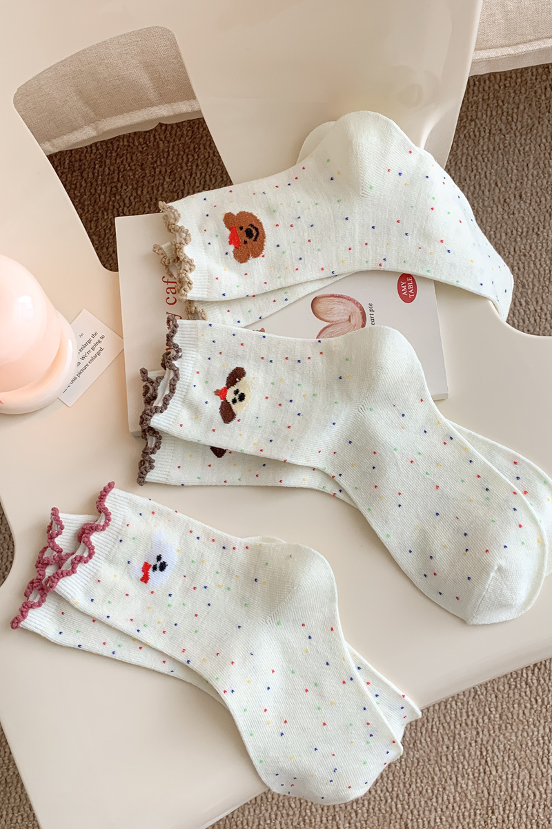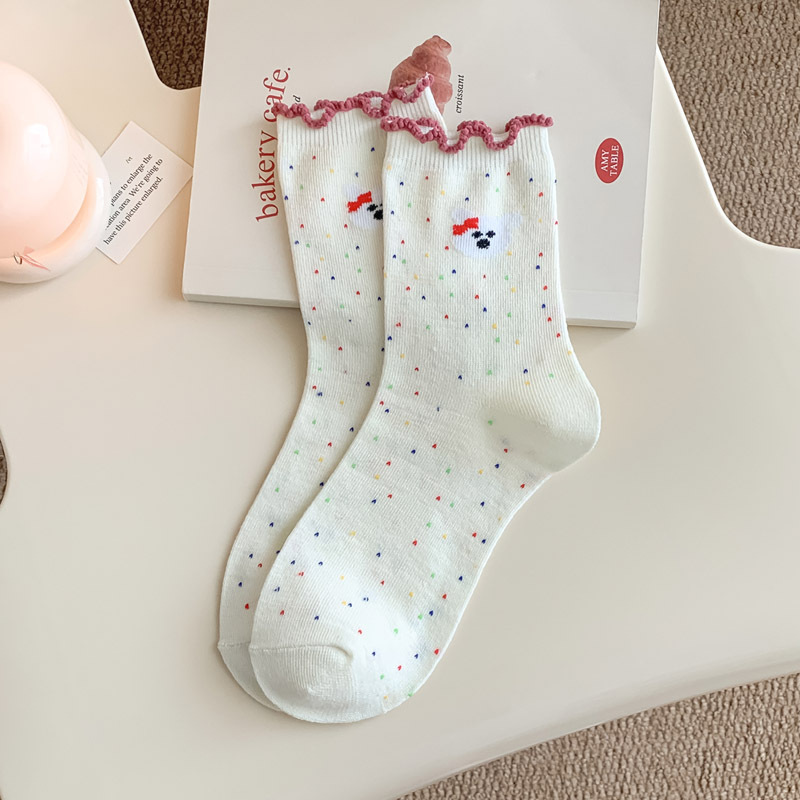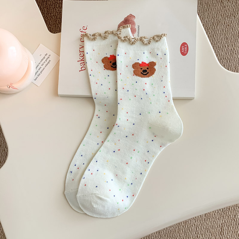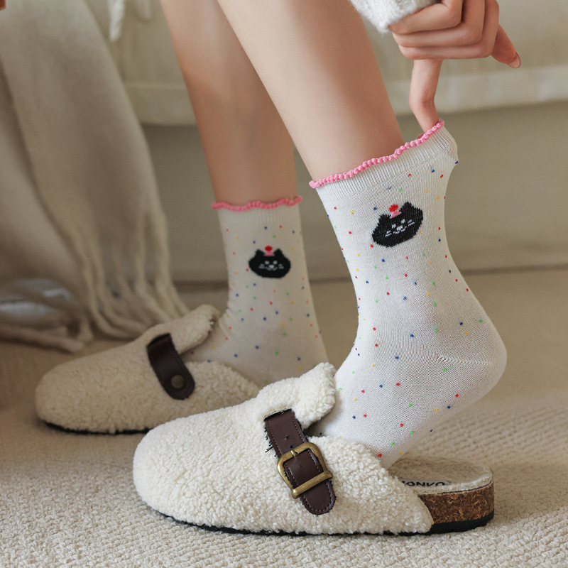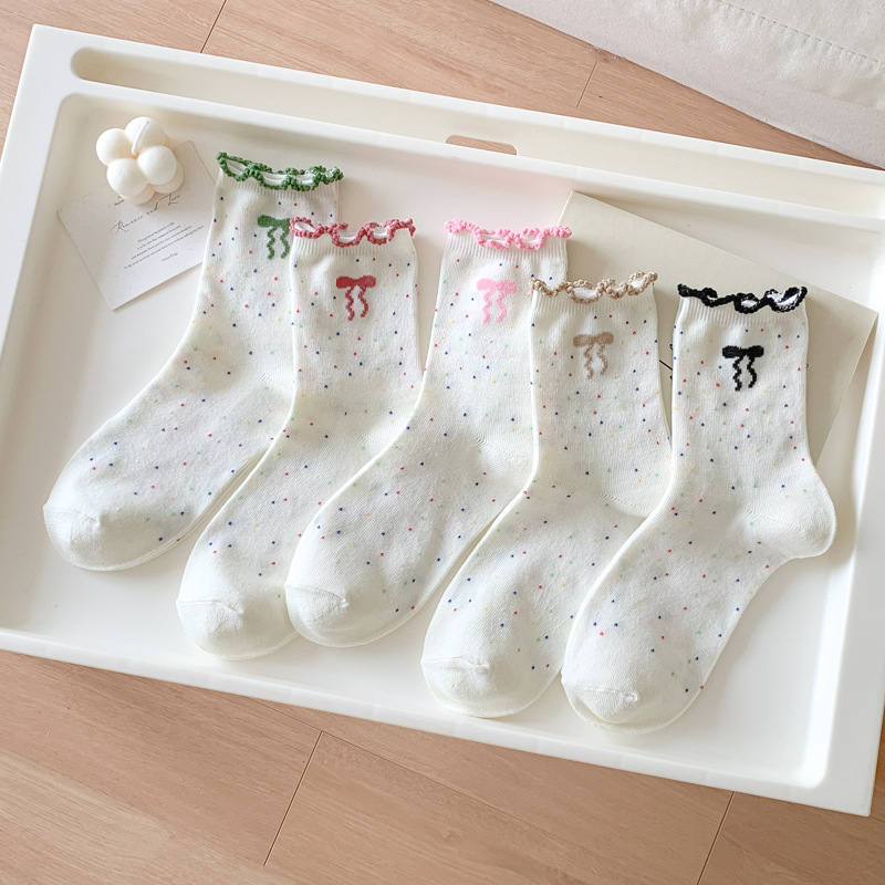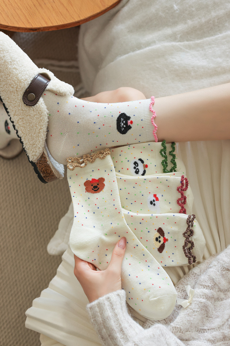 레이스 양말 어린이 봄과 가을 중반 튜브 양말 땀 흡수성 탈취제 가을 및 겨울 다재다능한 학생들이 양말을 쌓습니다.