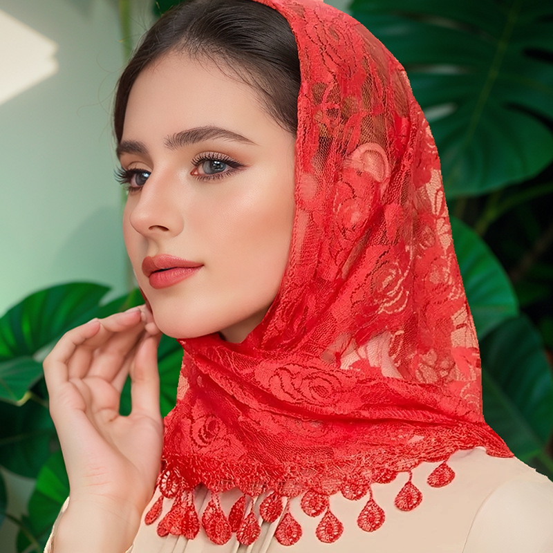 인기 레이스 단색 한국 삼각 스카프, 패셔너블한 속이 비치는 여성용 단색 큰 장미꽃 삼각 스카프스토어 가기