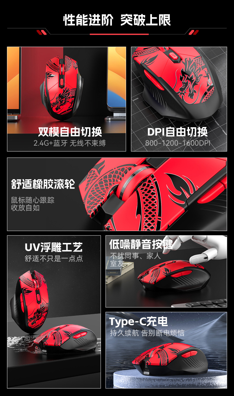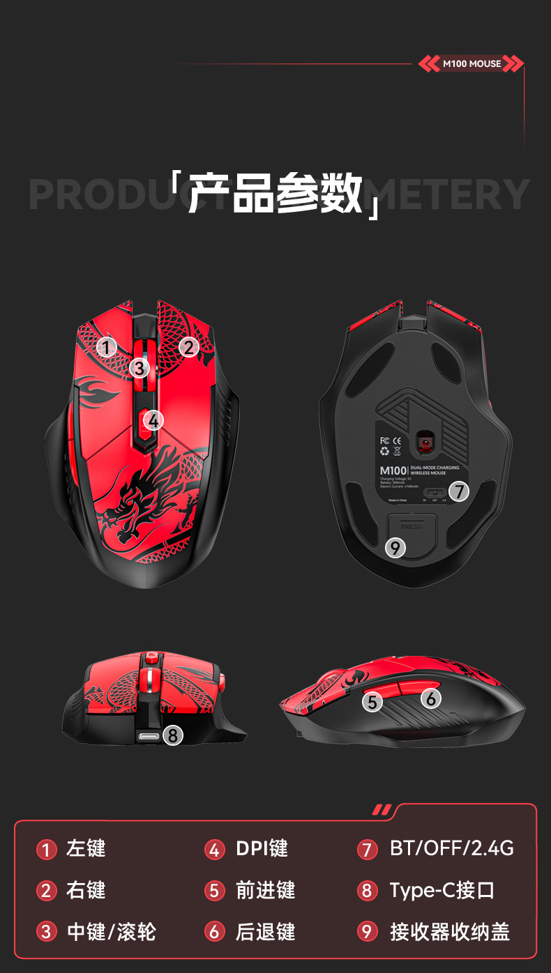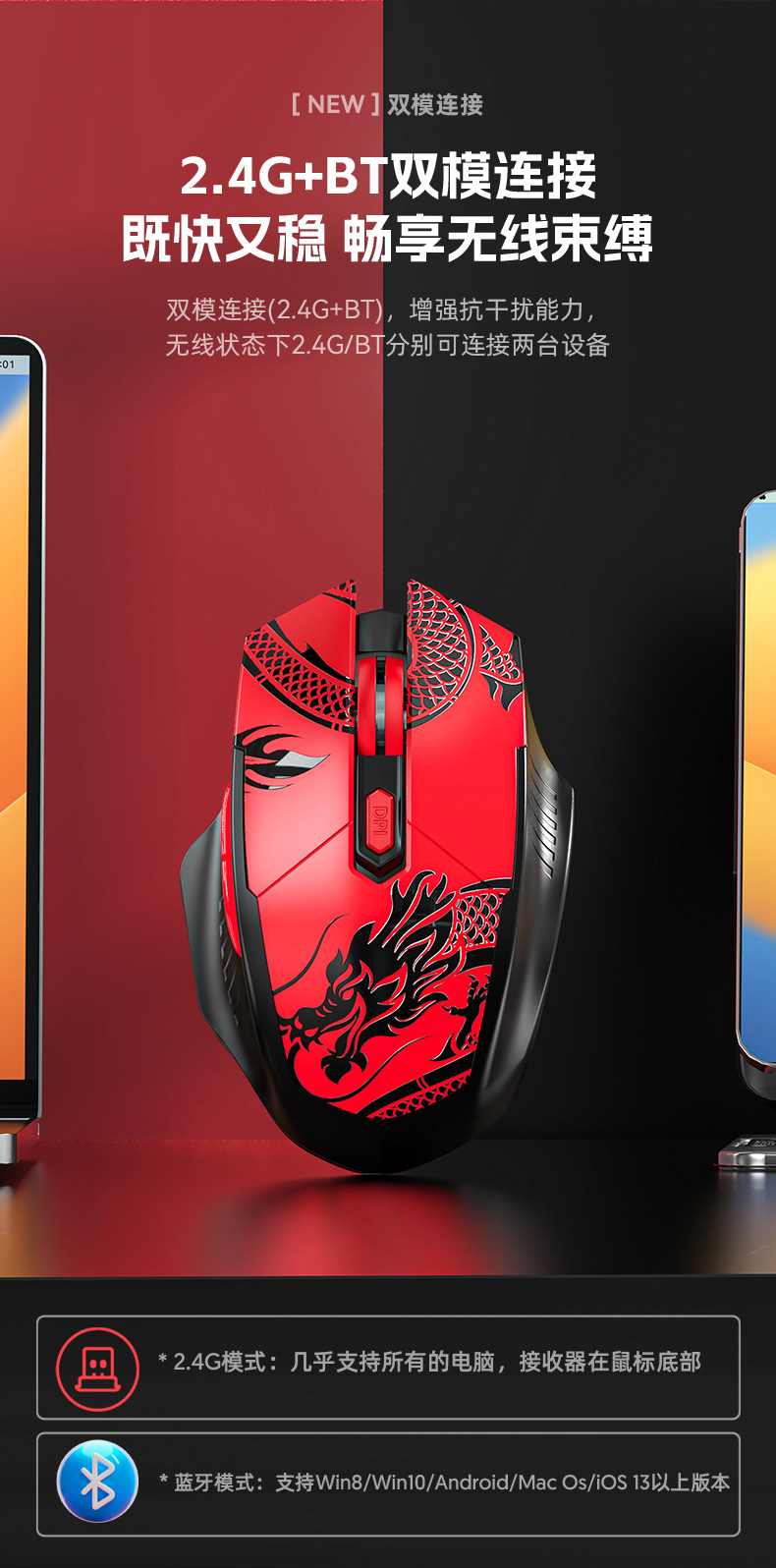 • 2.4G+블루투스 듀얼 모드 - 검정색과 빨간색